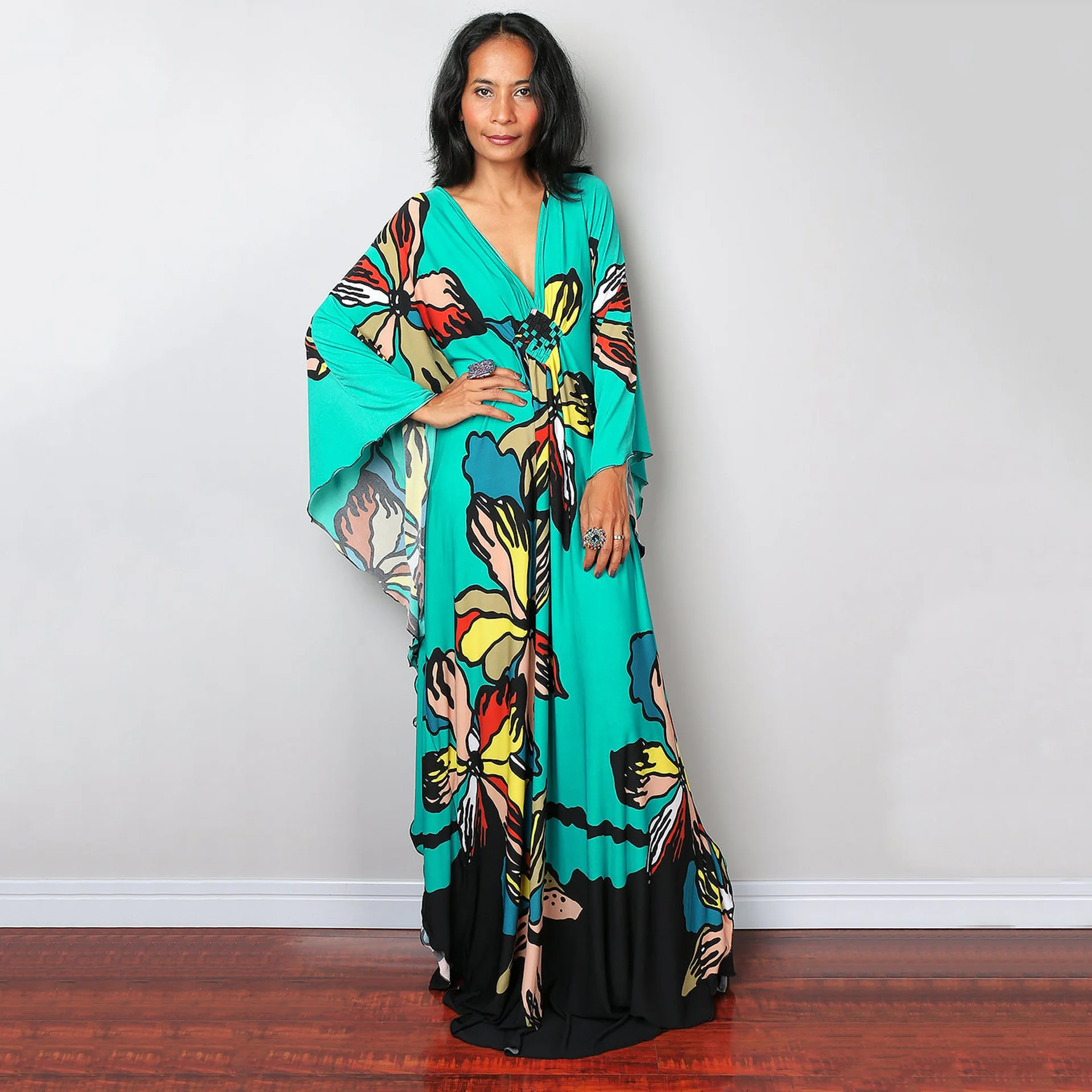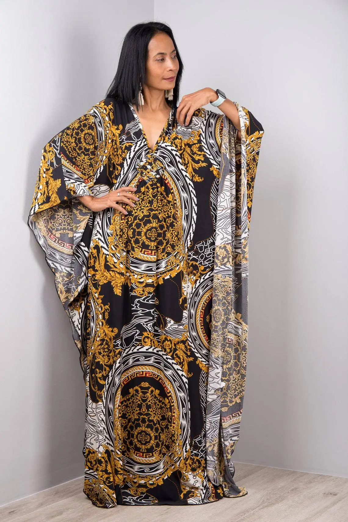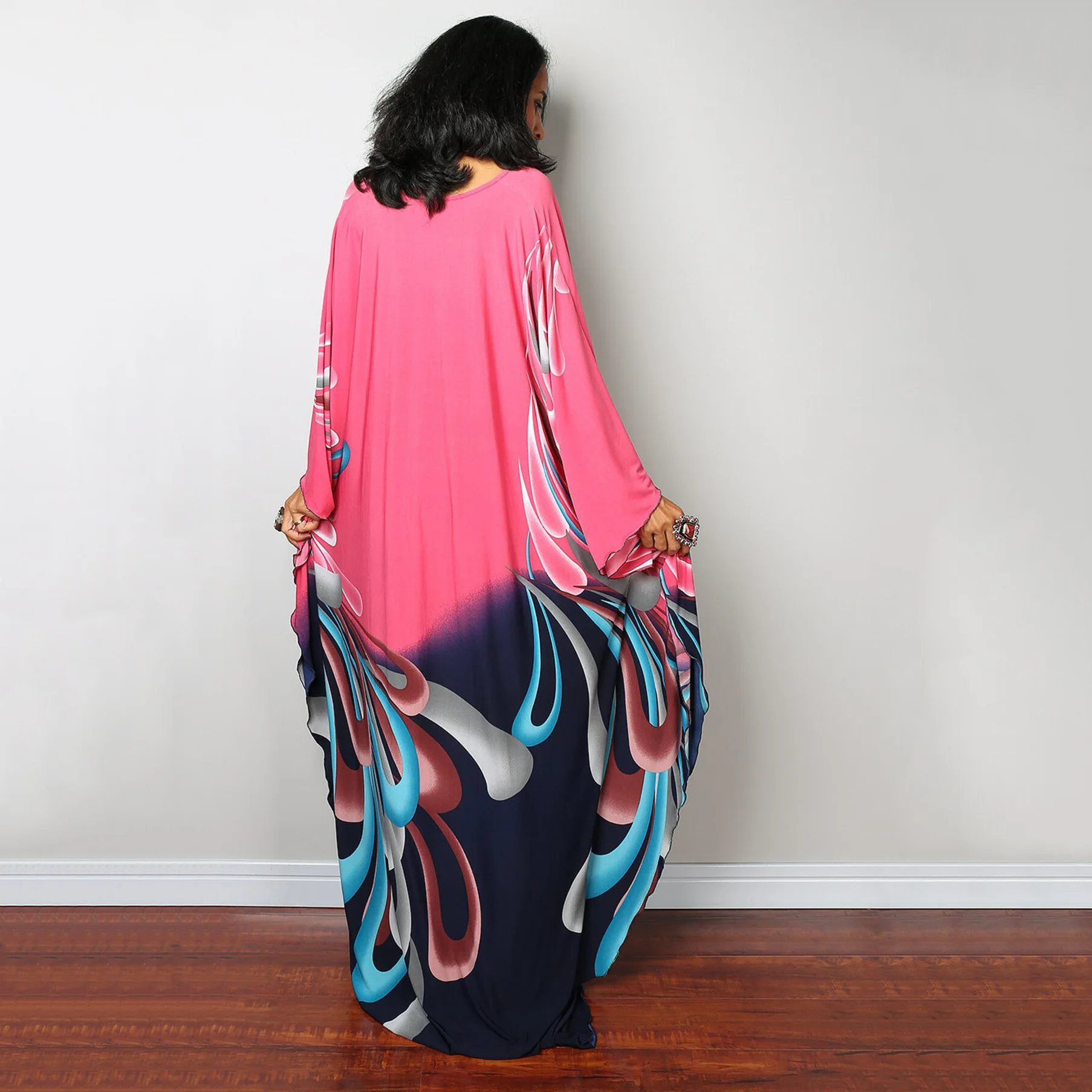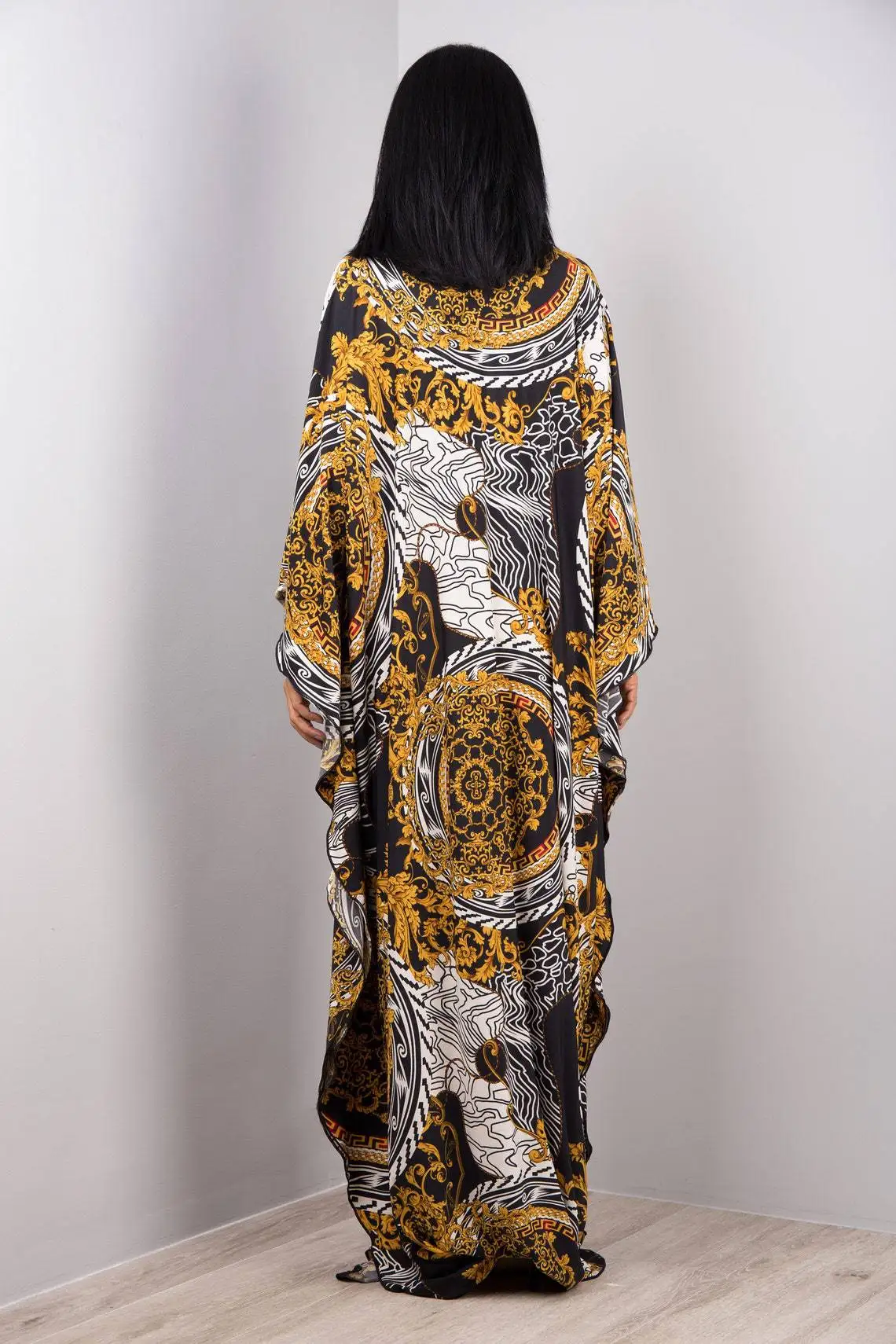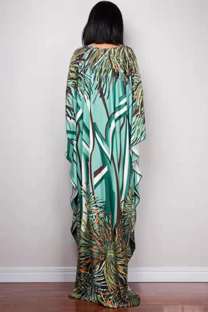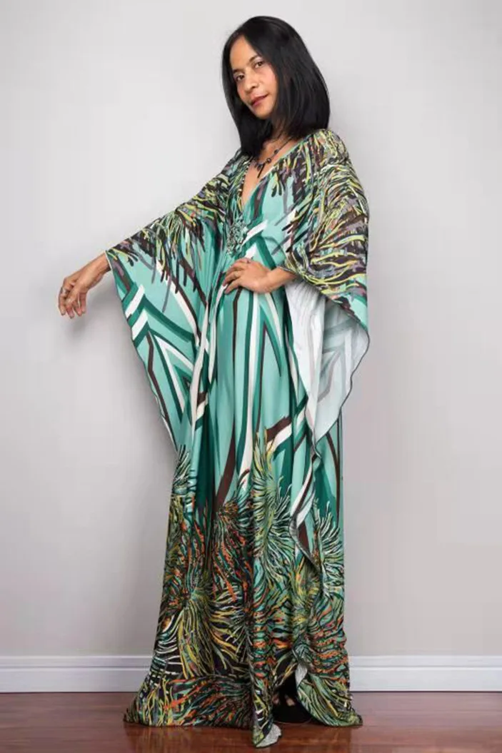 2023 Print Maxi Dress Batwing Sleeve Tunic Spring/Autumn Beach Dress Tunic Casual plus Size Women Beachwear Kaftan Sarongs