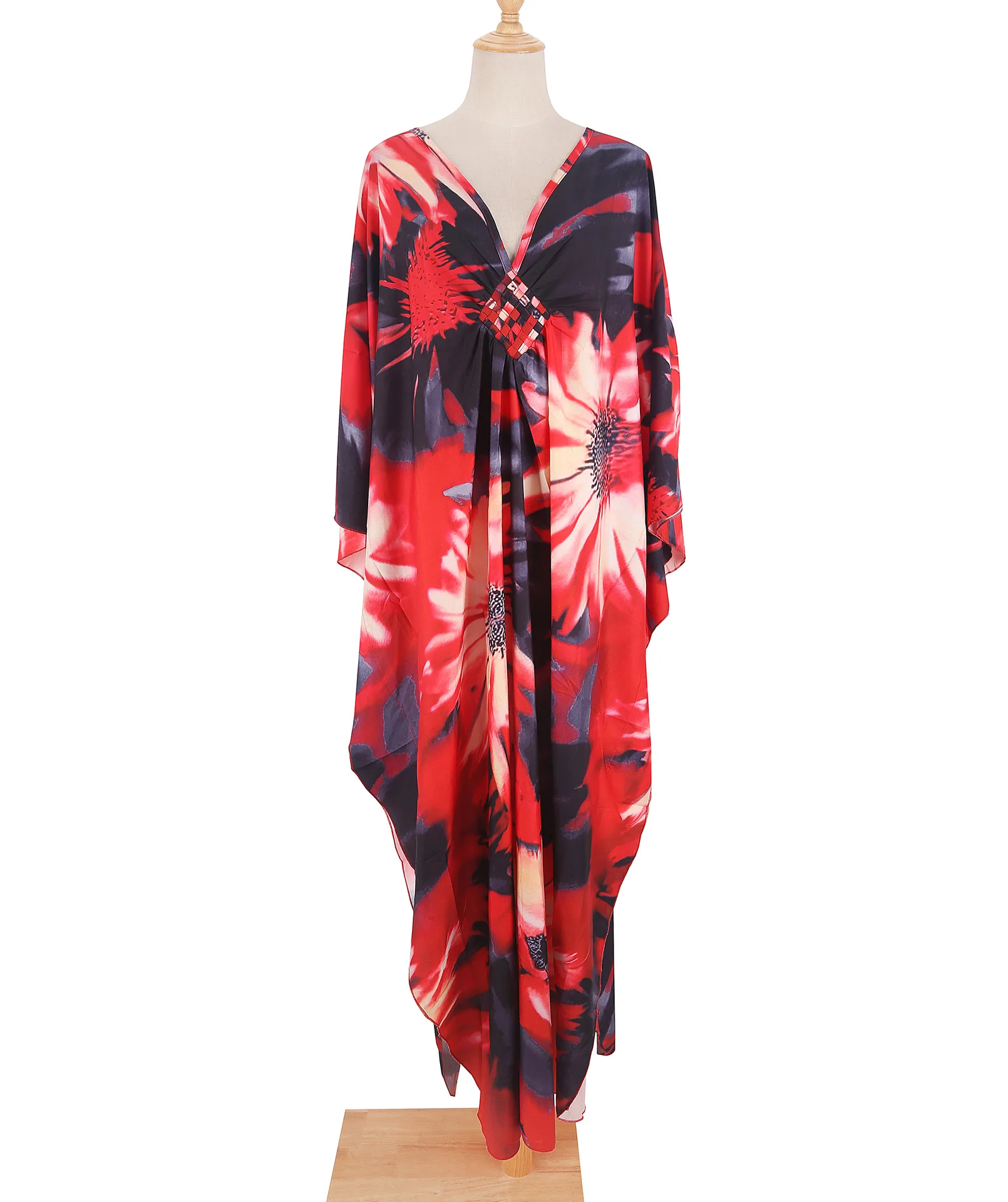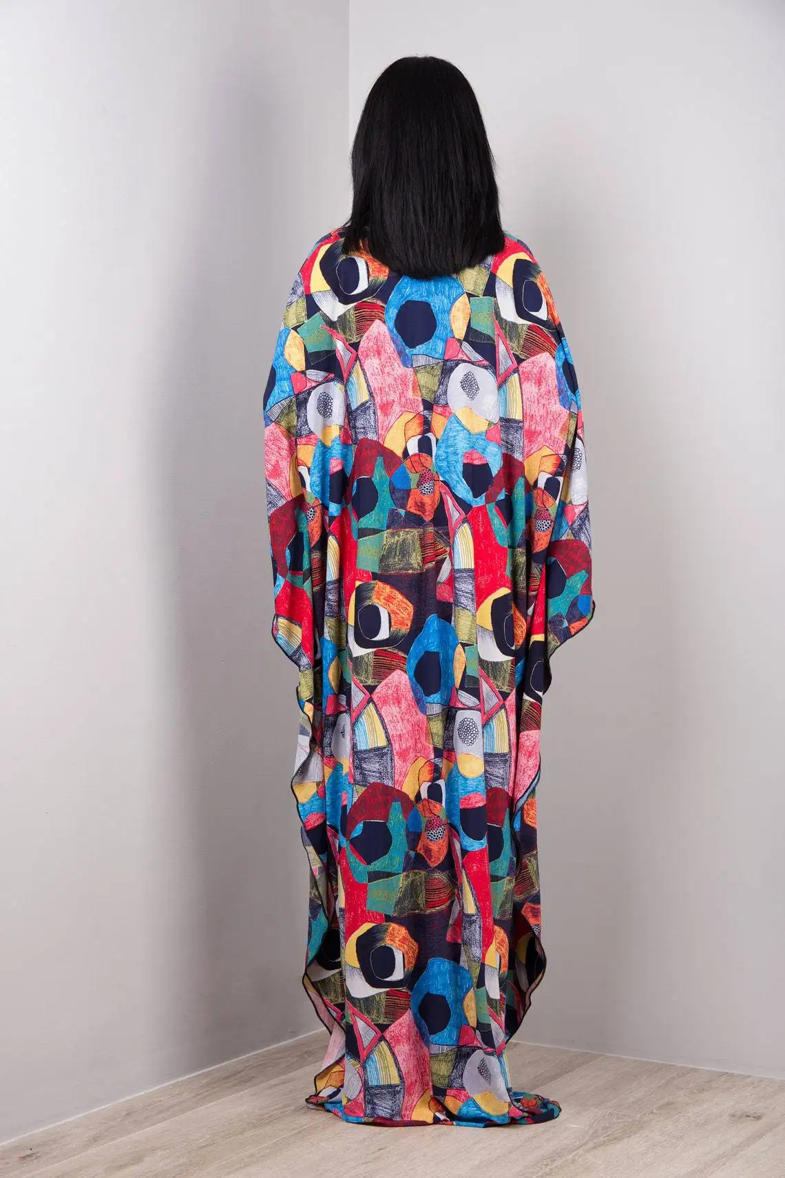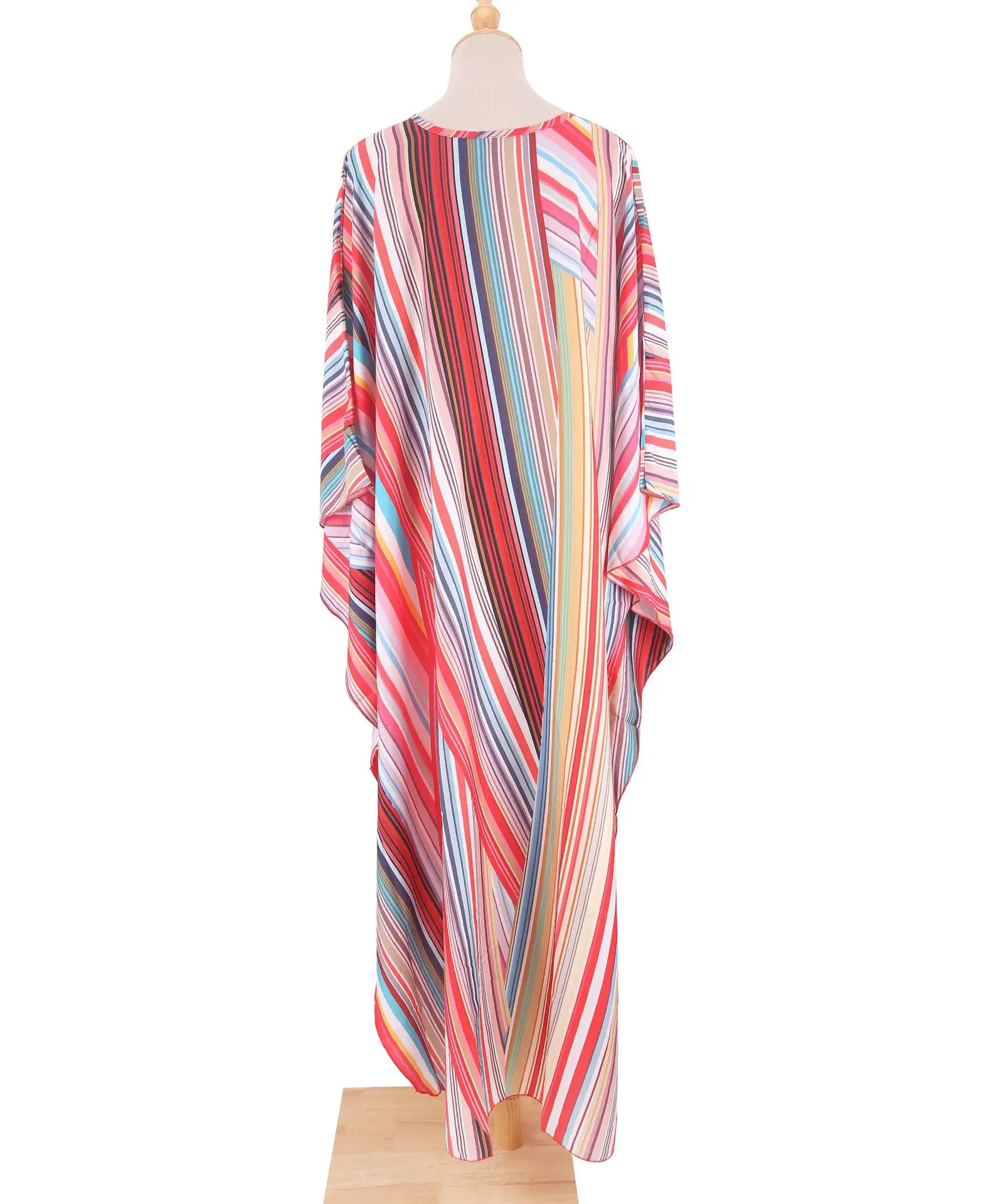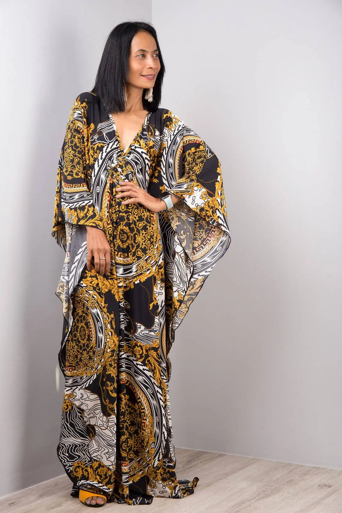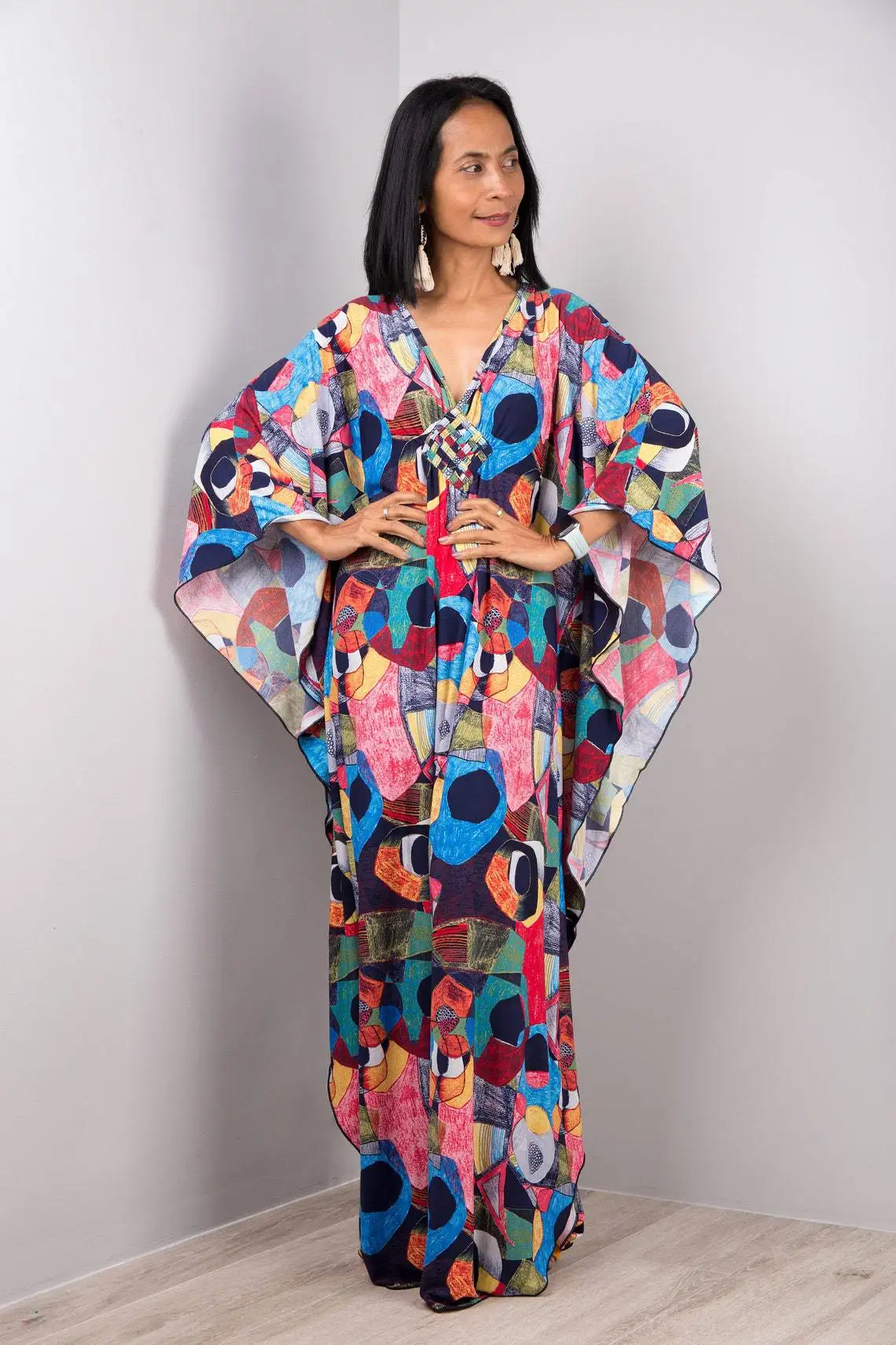 2023 Print Maxi Dress Batwing Sleeve Tunic Spring/Autumn Beach Dress Tunic Casual plus Size Women Beachwear Kaftan Sarongs
