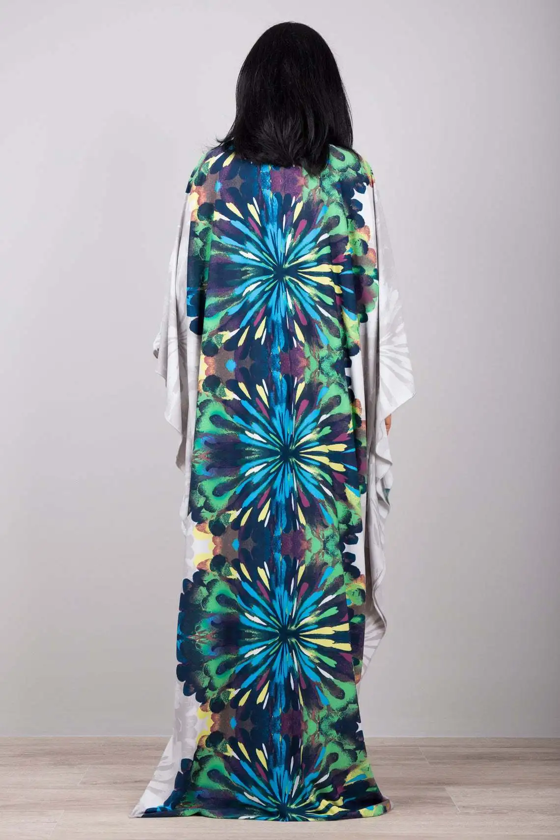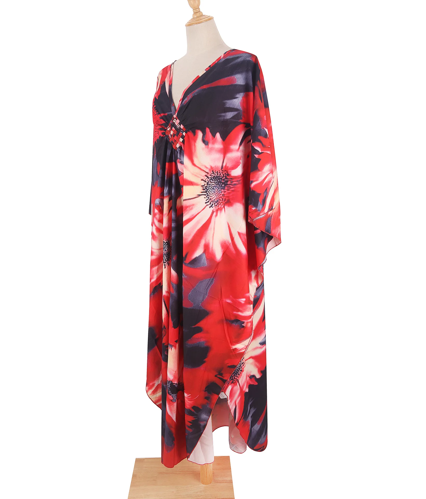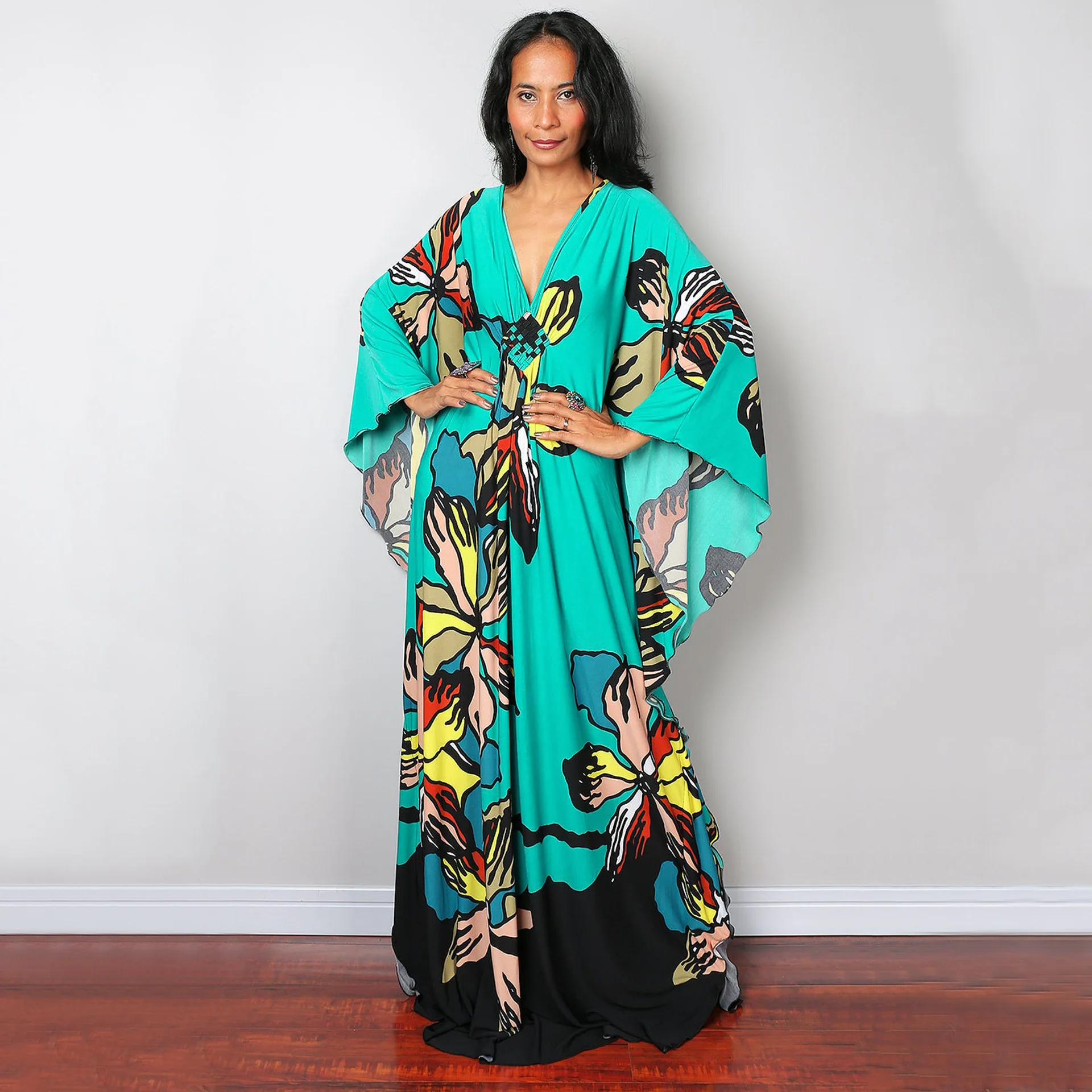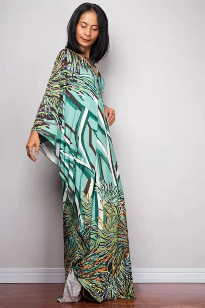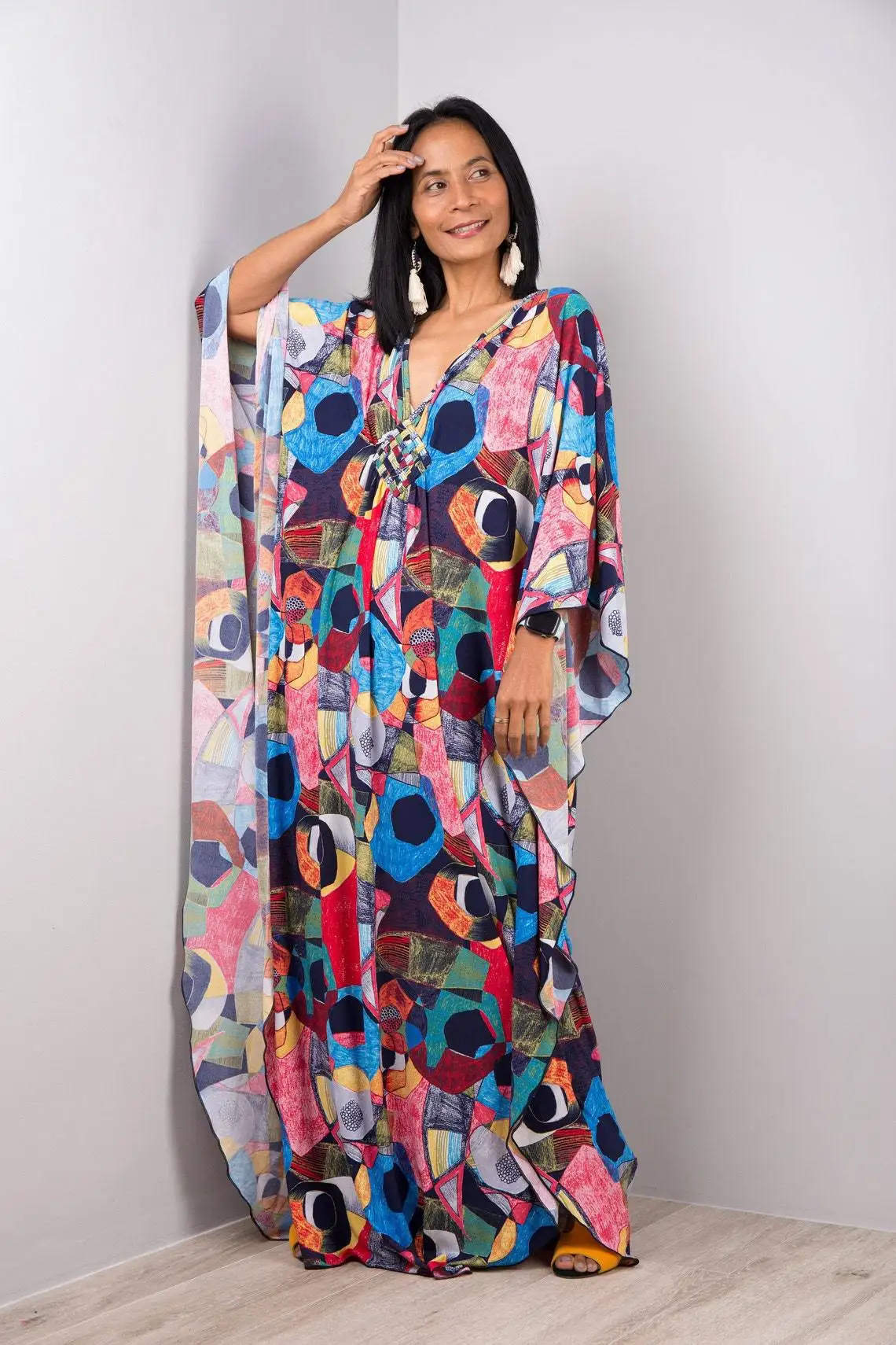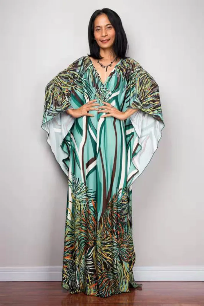 2023 Print Maxi Dress Batwing Sleeve Tunic Spring/Autumn Beach Dress Tunic Casual plus Size Women Beachwear Kaftan Sarongs