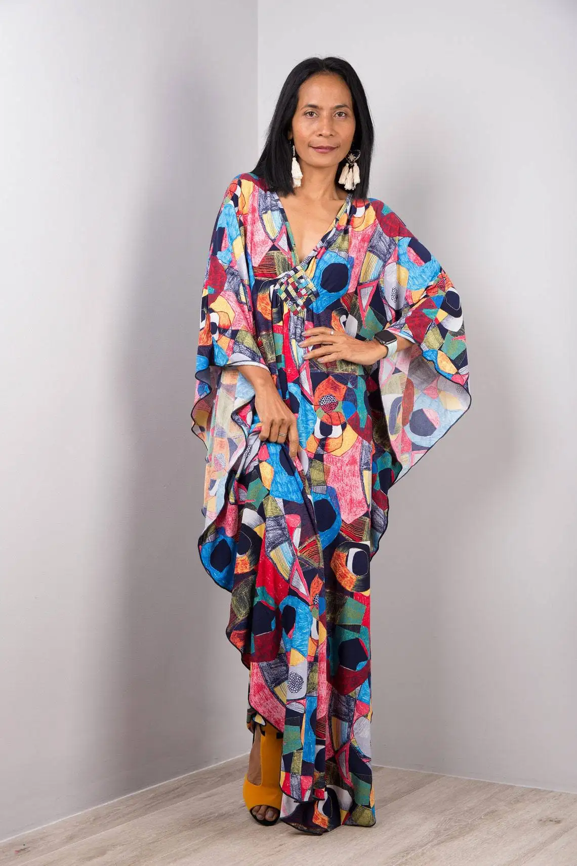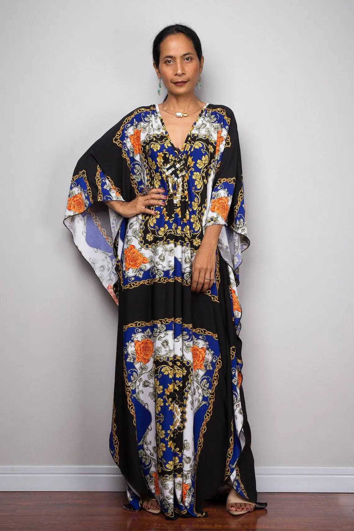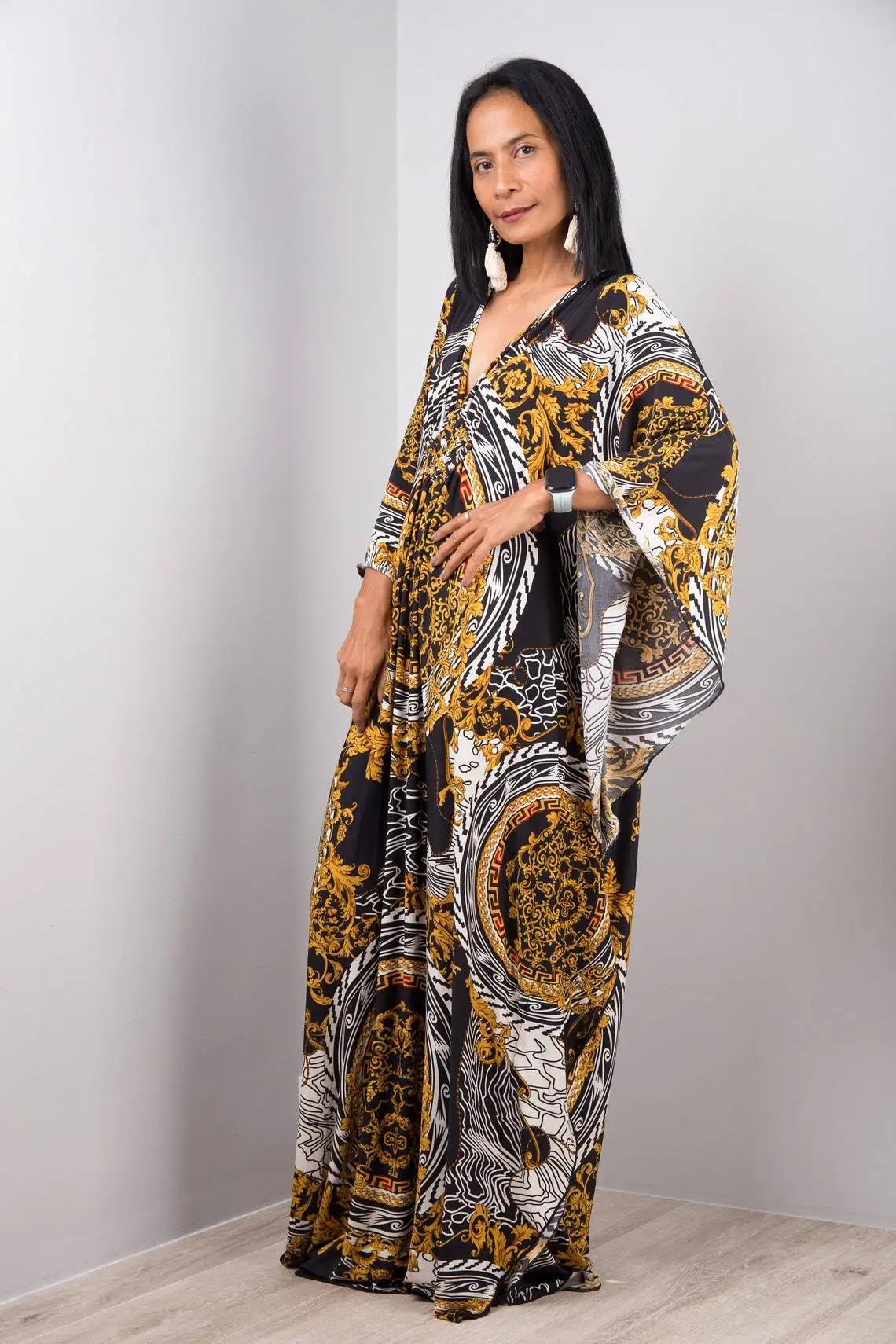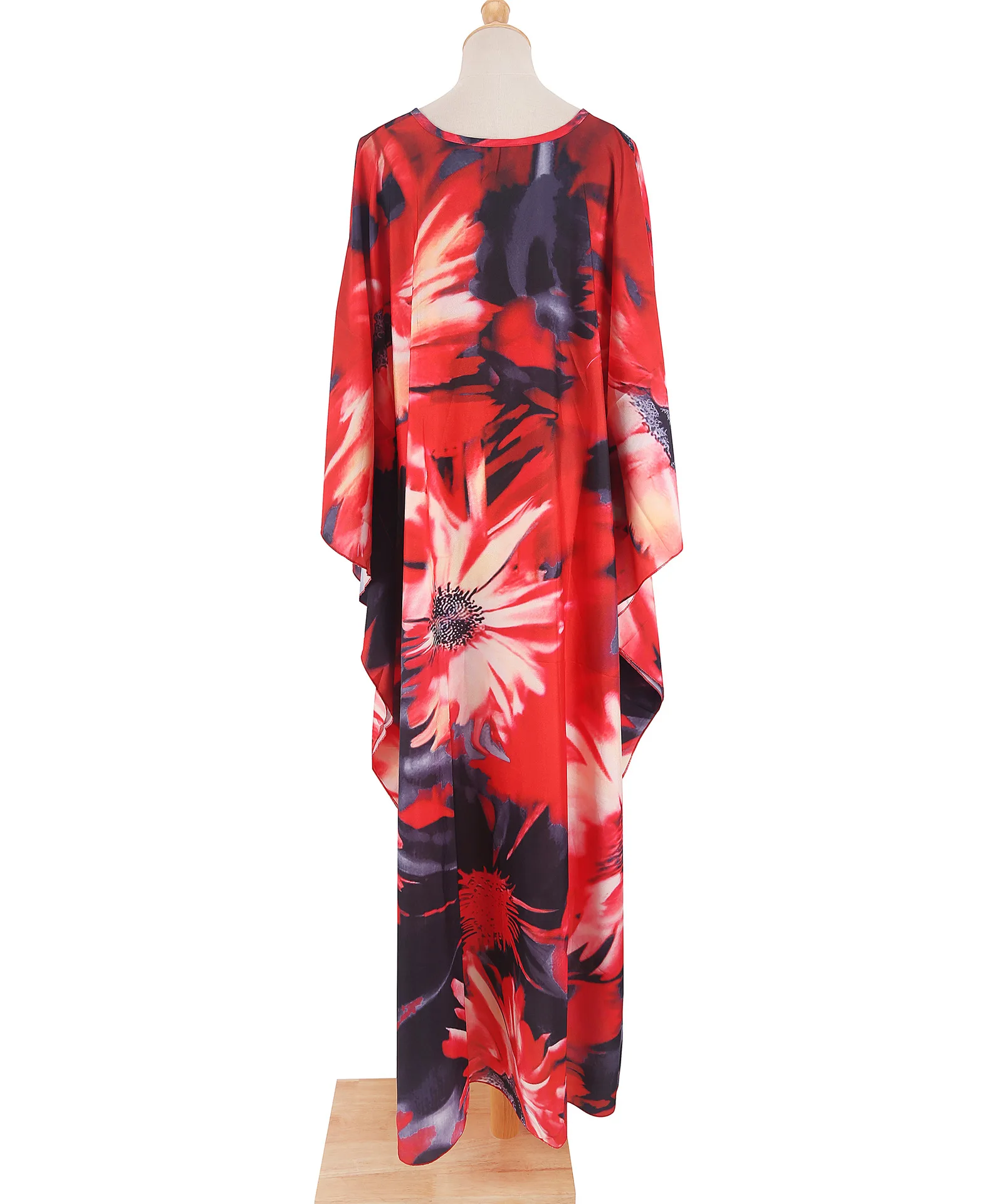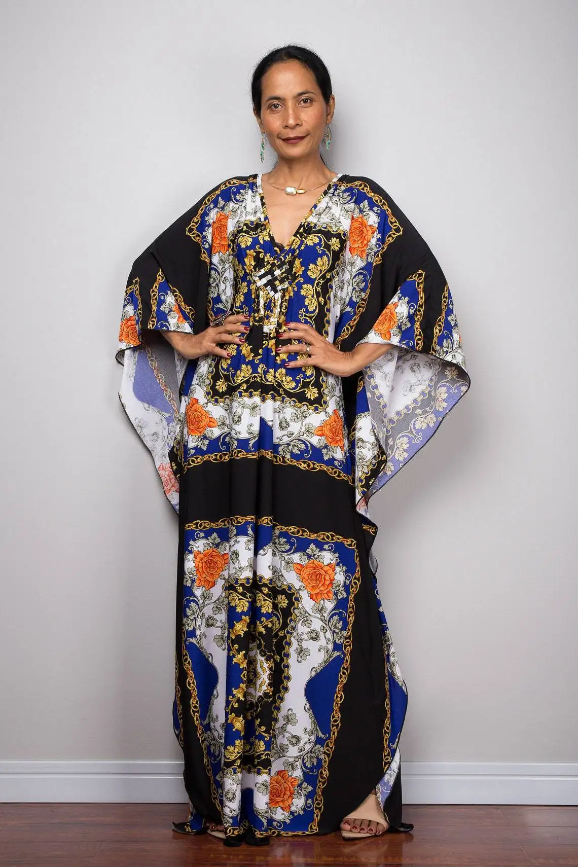 2023 Print Maxi Dress Batwing Sleeve Tunic Spring/Autumn Beach Dress Tunic Casual plus Size Women Beachwear Kaftan Sarongs