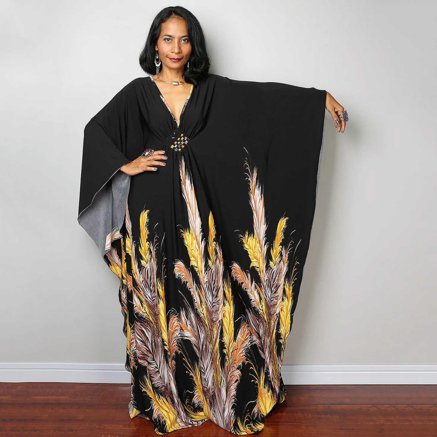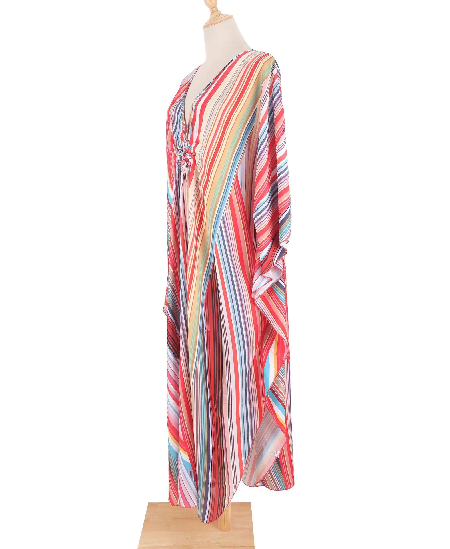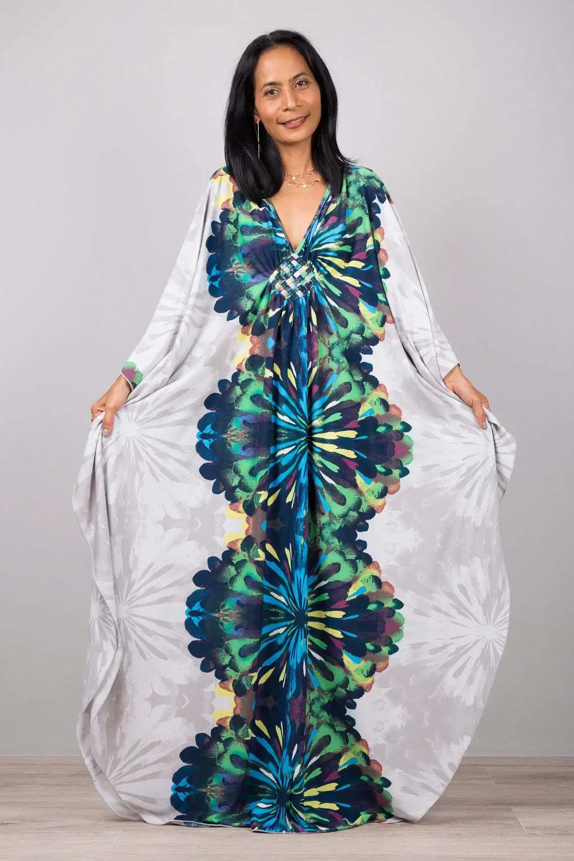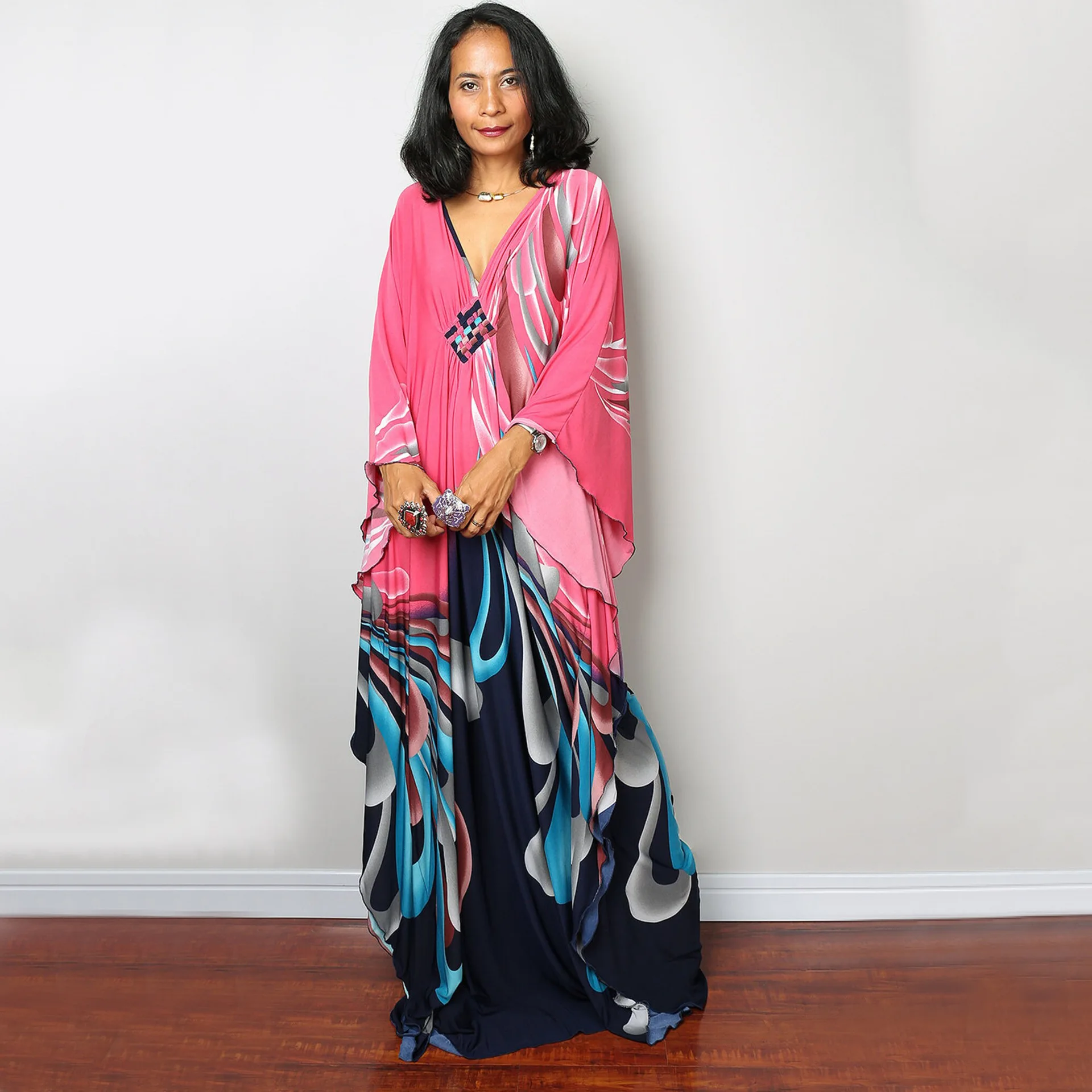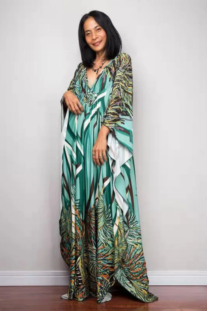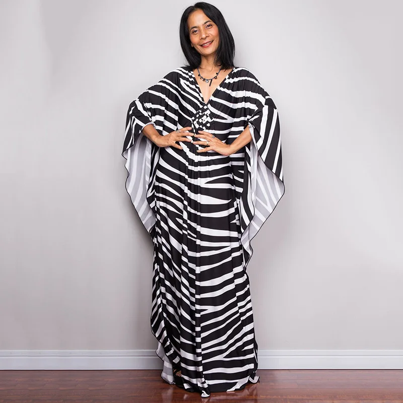 2023 Print Maxi Dress Batwing Sleeve Tunic Spring/Autumn Beach Dress Tunic Casual plus Size Women Beachwear Kaftan Sarongs