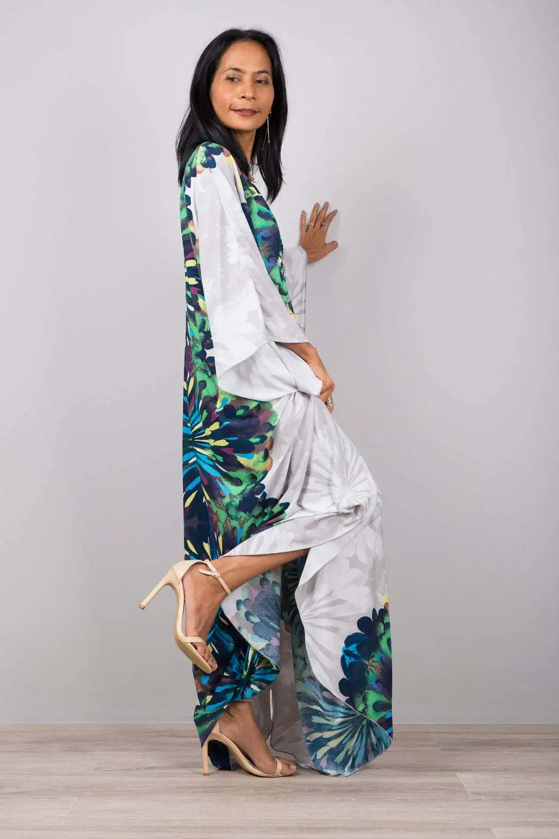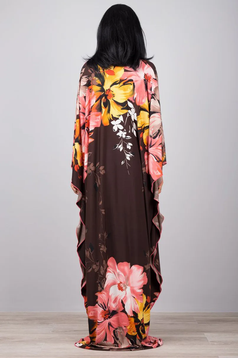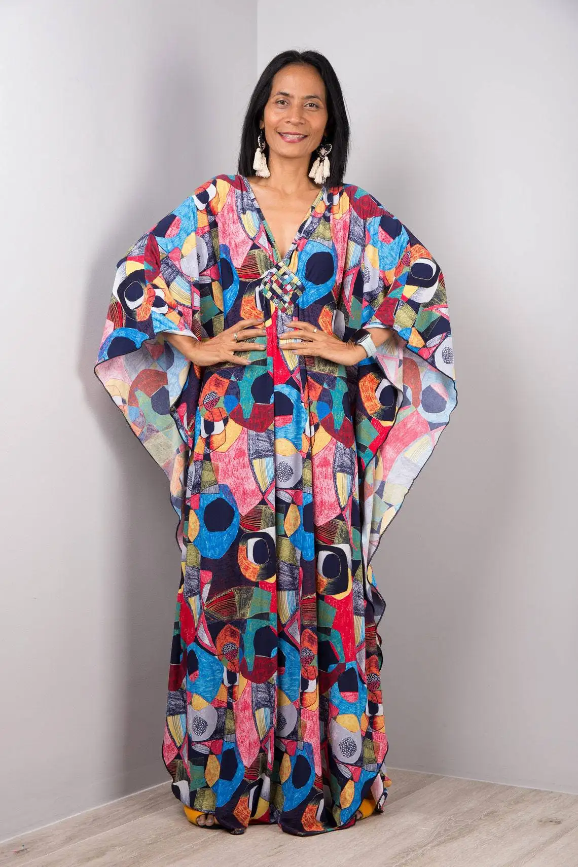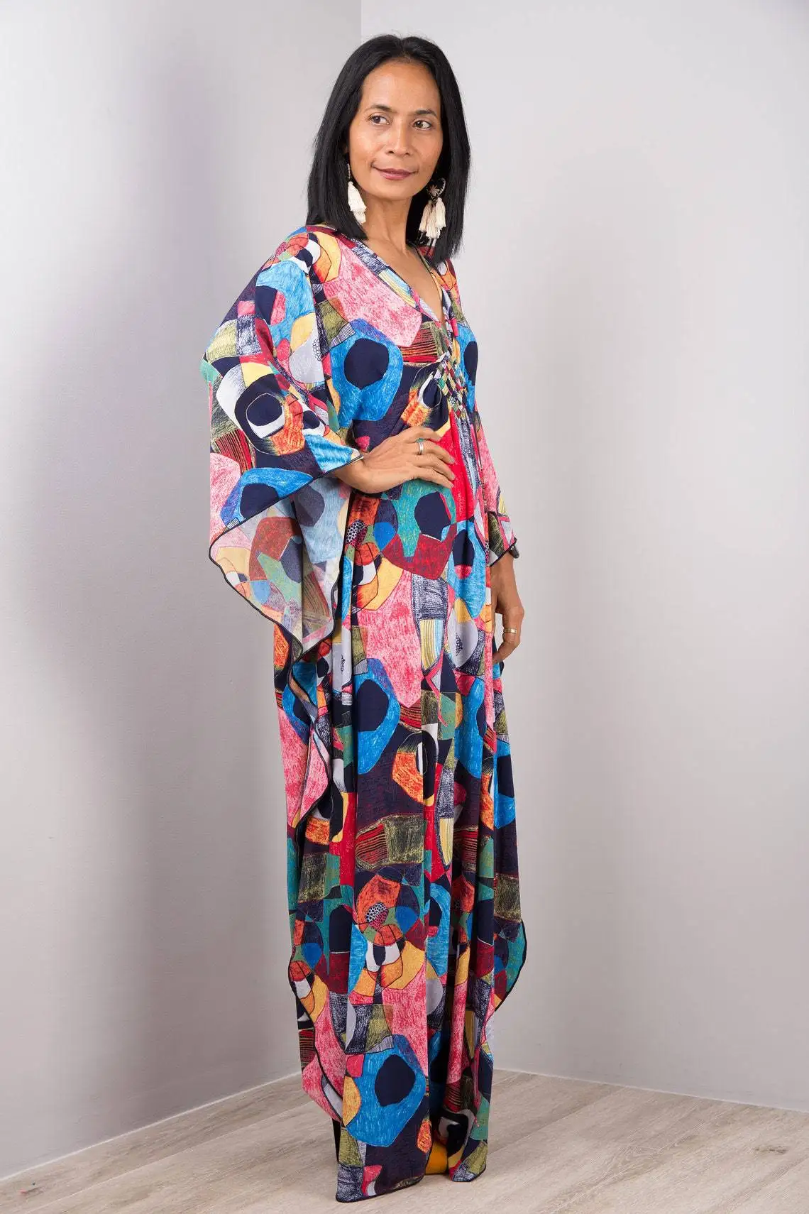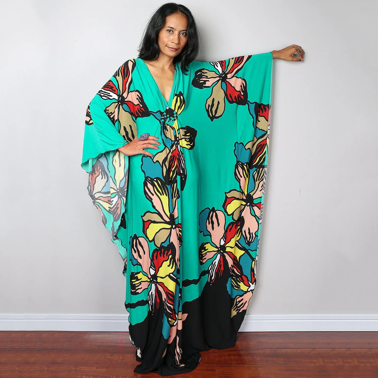 2023 Print Maxi Dress Batwing Sleeve Tunic Spring/Autumn Beach Dress Tunic Casual plus Size Women Beachwear Kaftan Sarongs