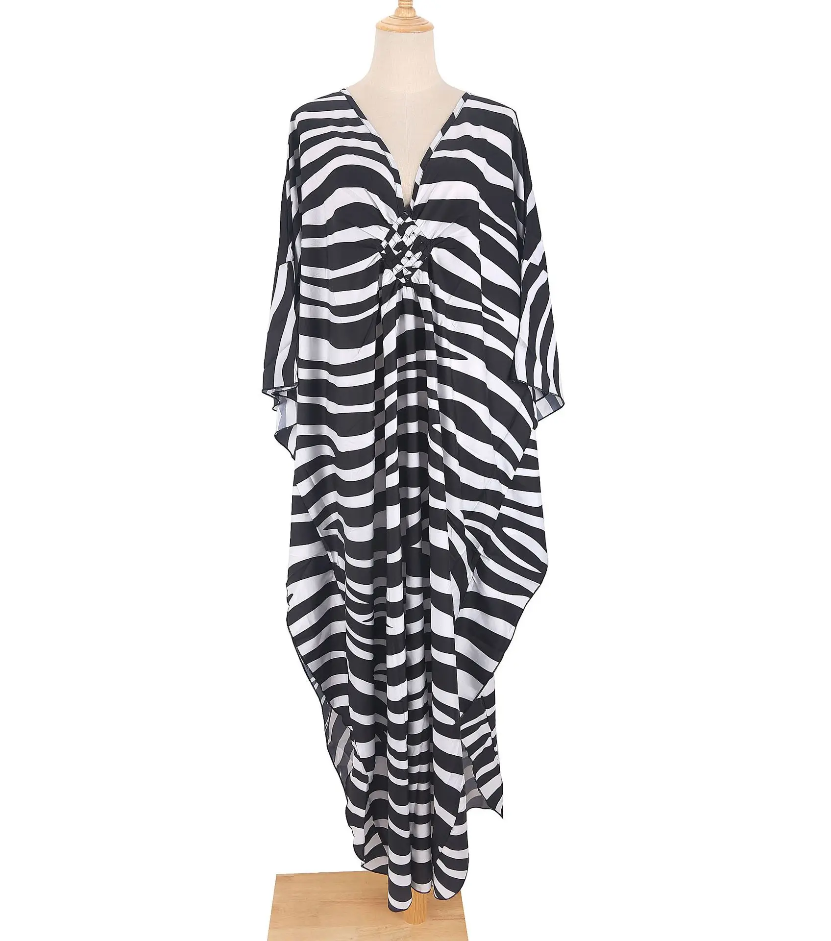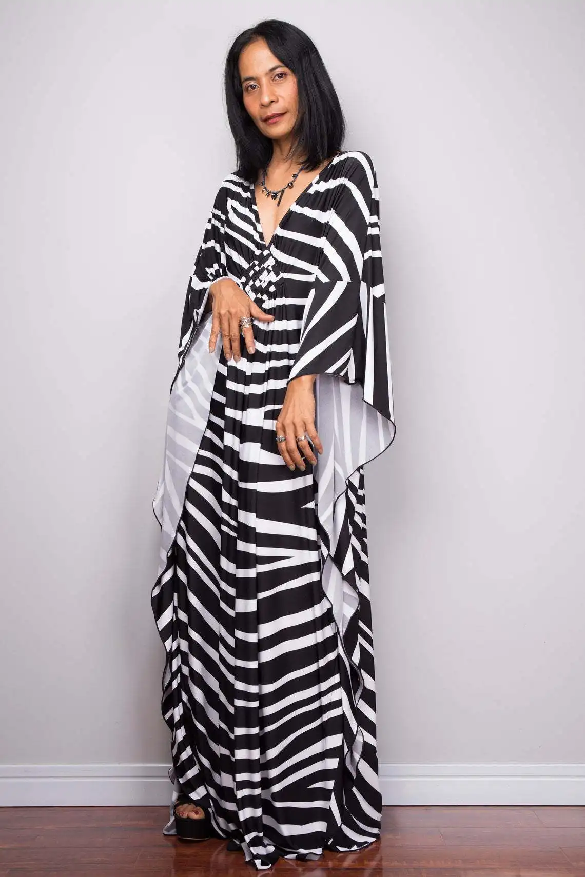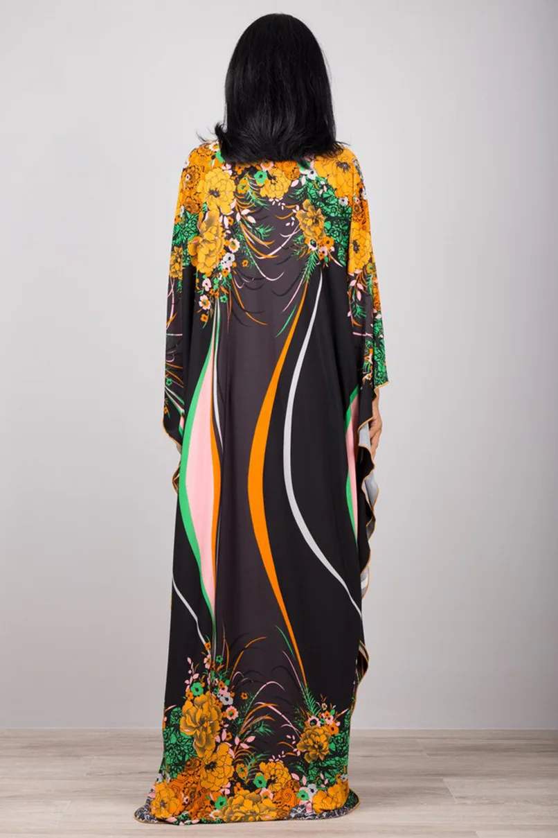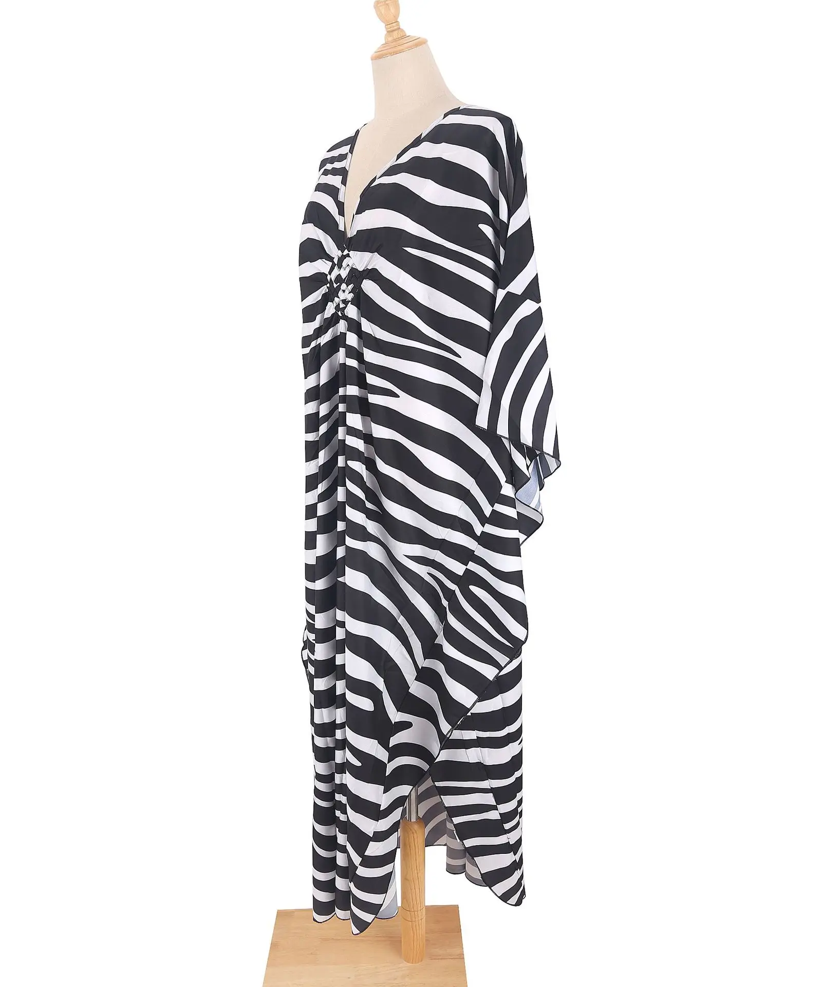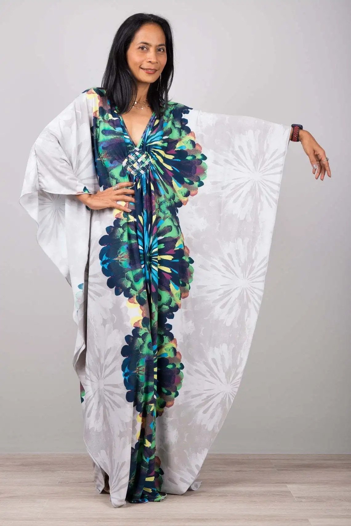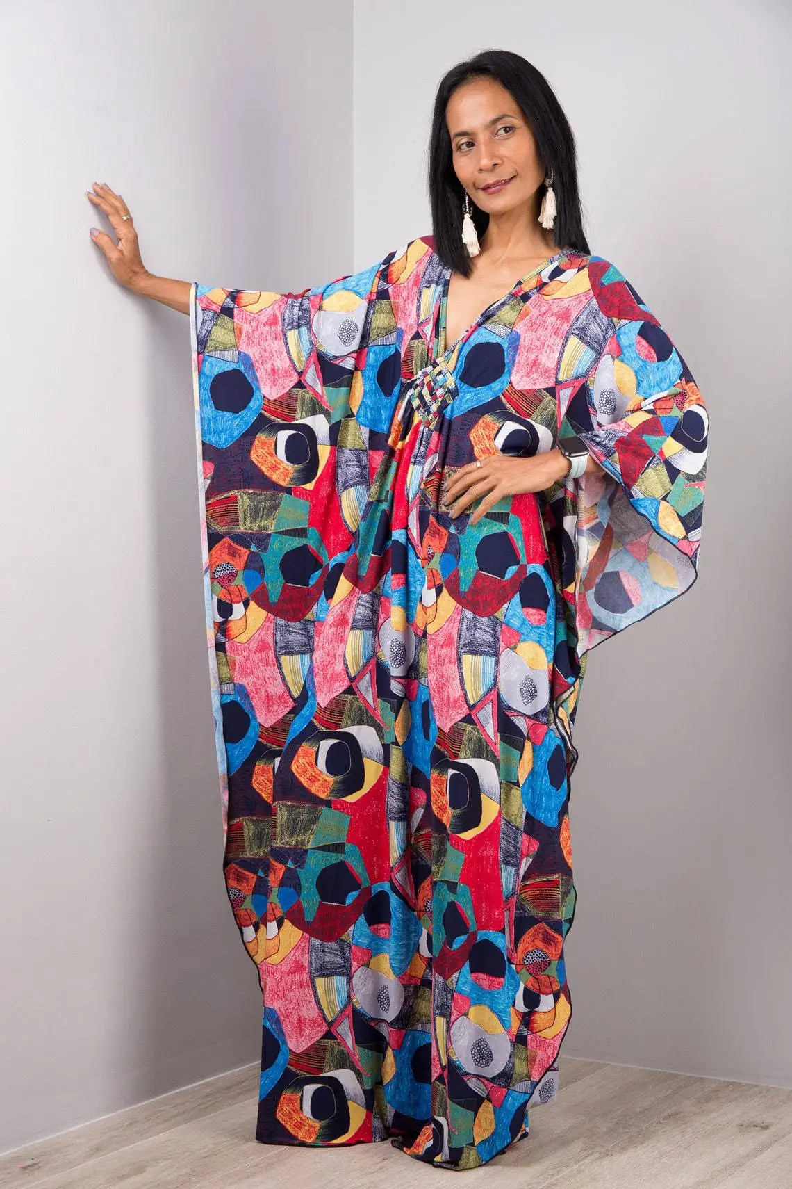 2023 Print Maxi Dress Batwing Sleeve Tunic Spring/Autumn Beach Dress Tunic Casual plus Size Women Beachwear Kaftan Sarongs