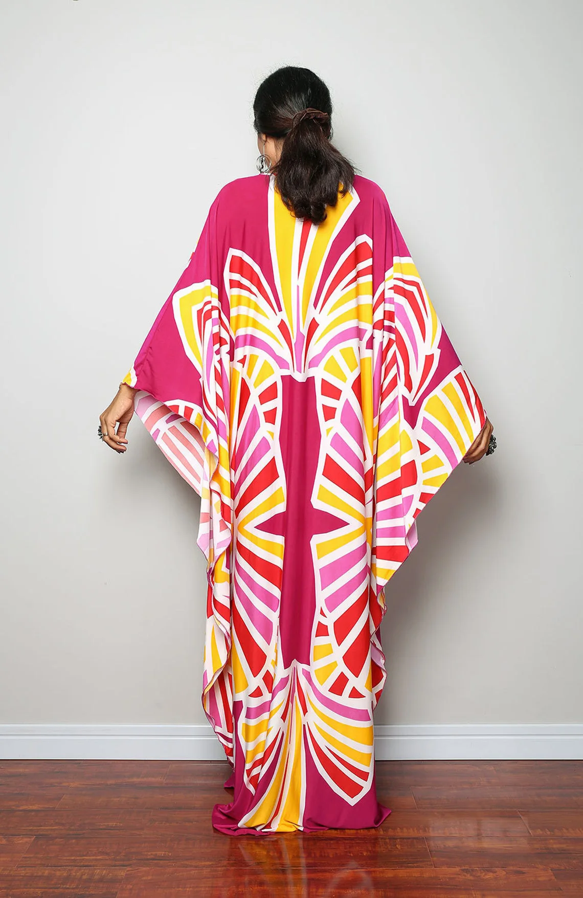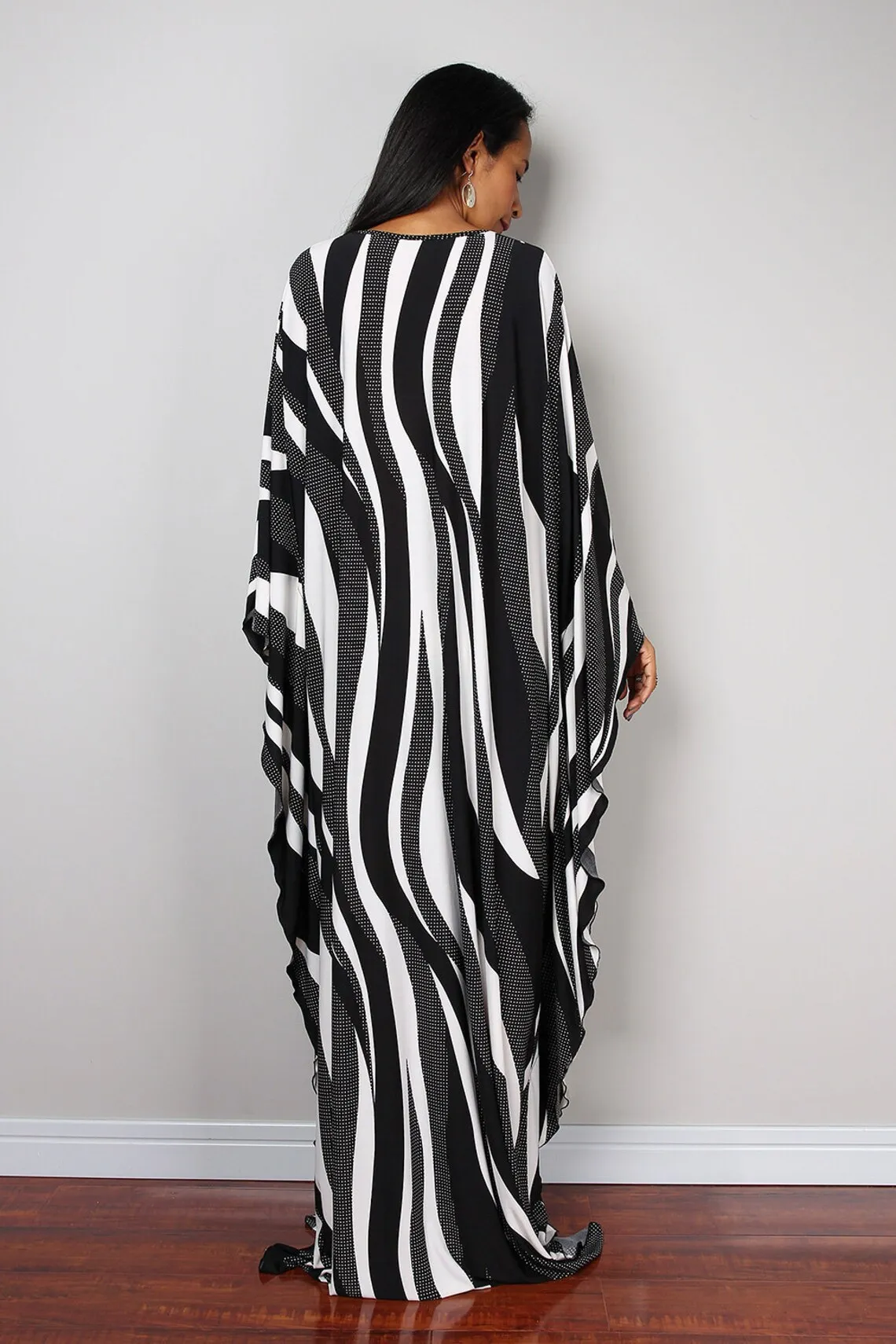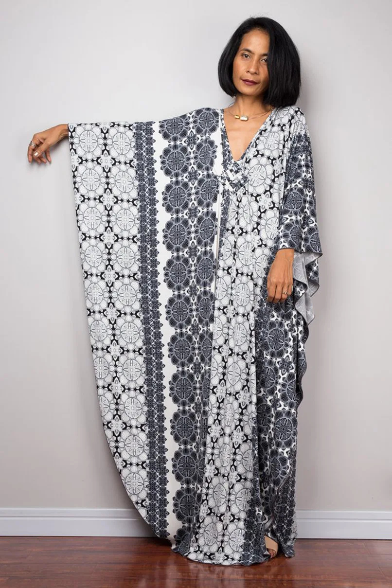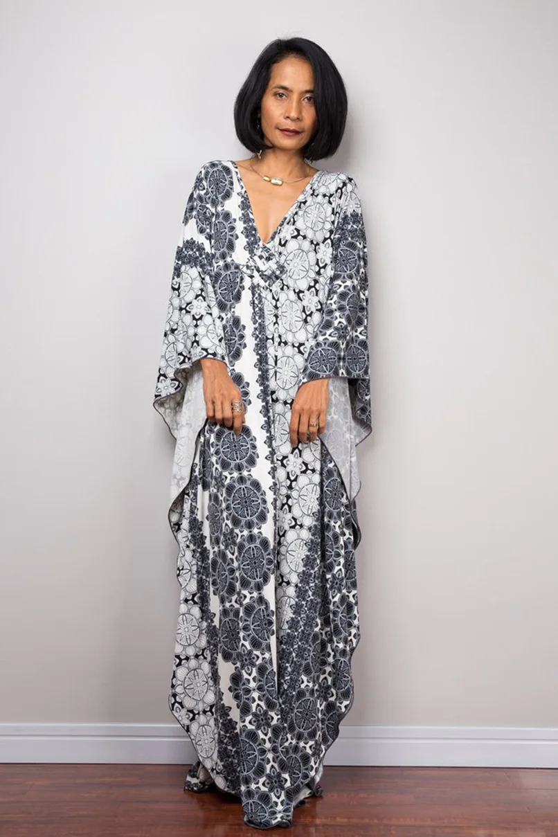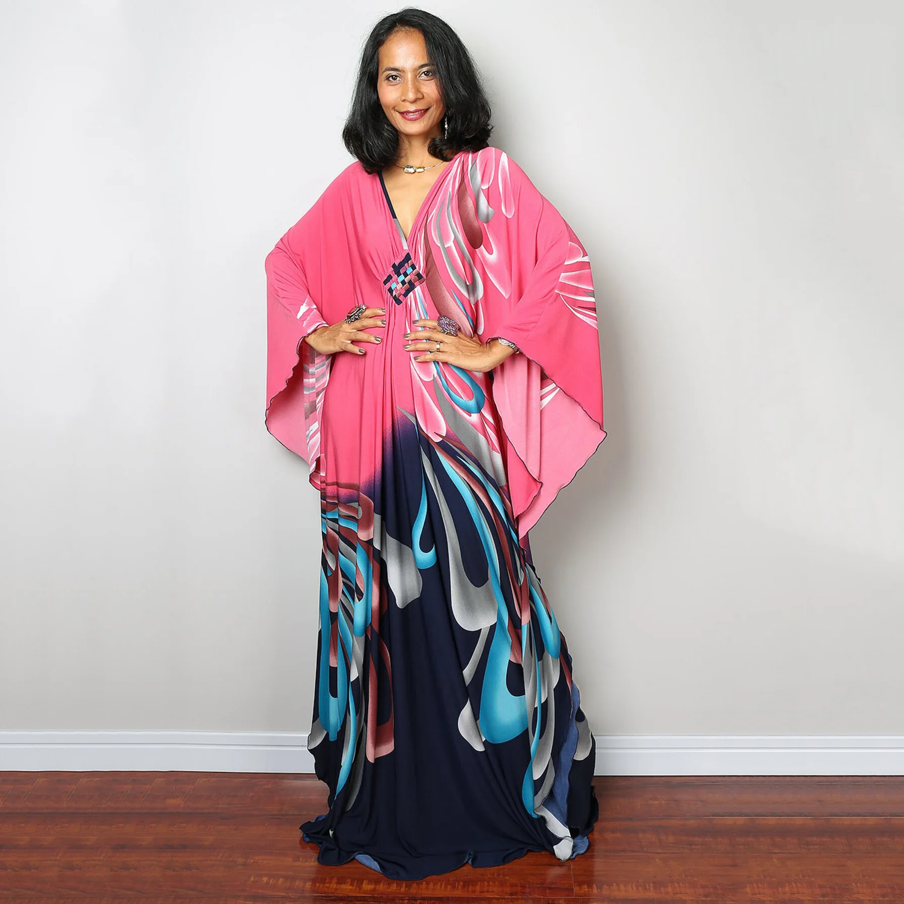 2023 Print Maxi Dress Batwing Sleeve Tunic Spring/Autumn Beach Dress Tunic Casual plus Size Women Beachwear Kaftan Sarongs