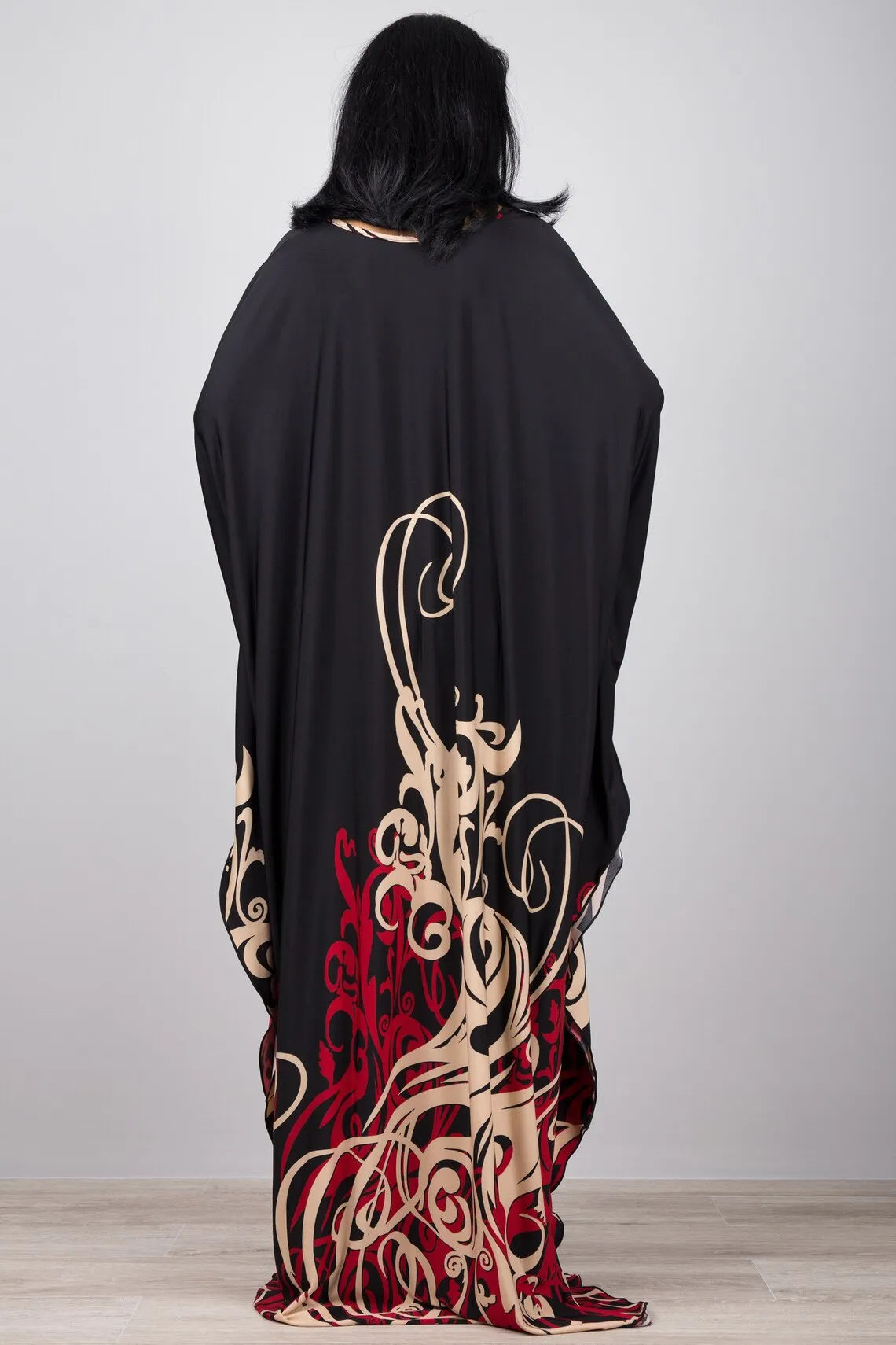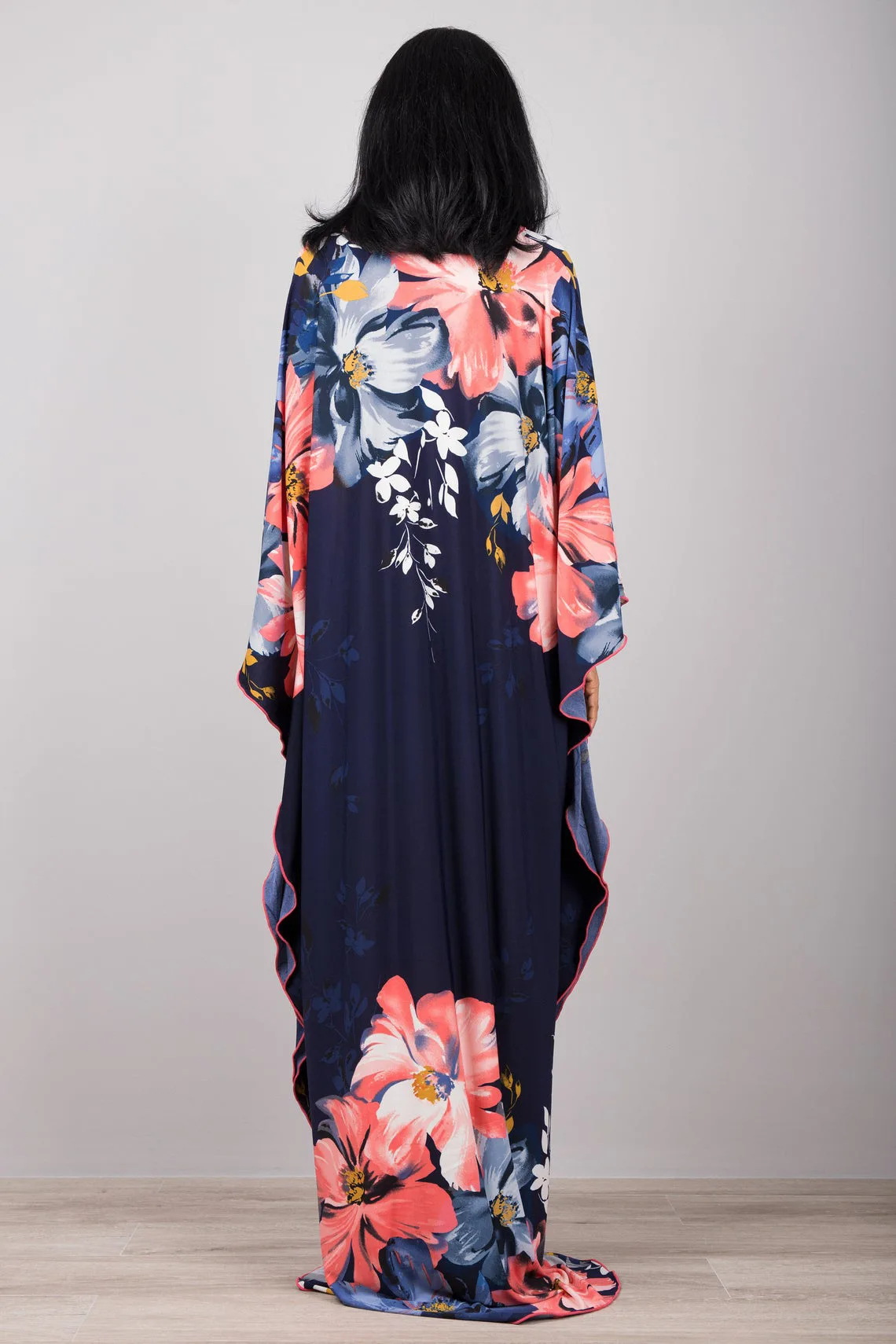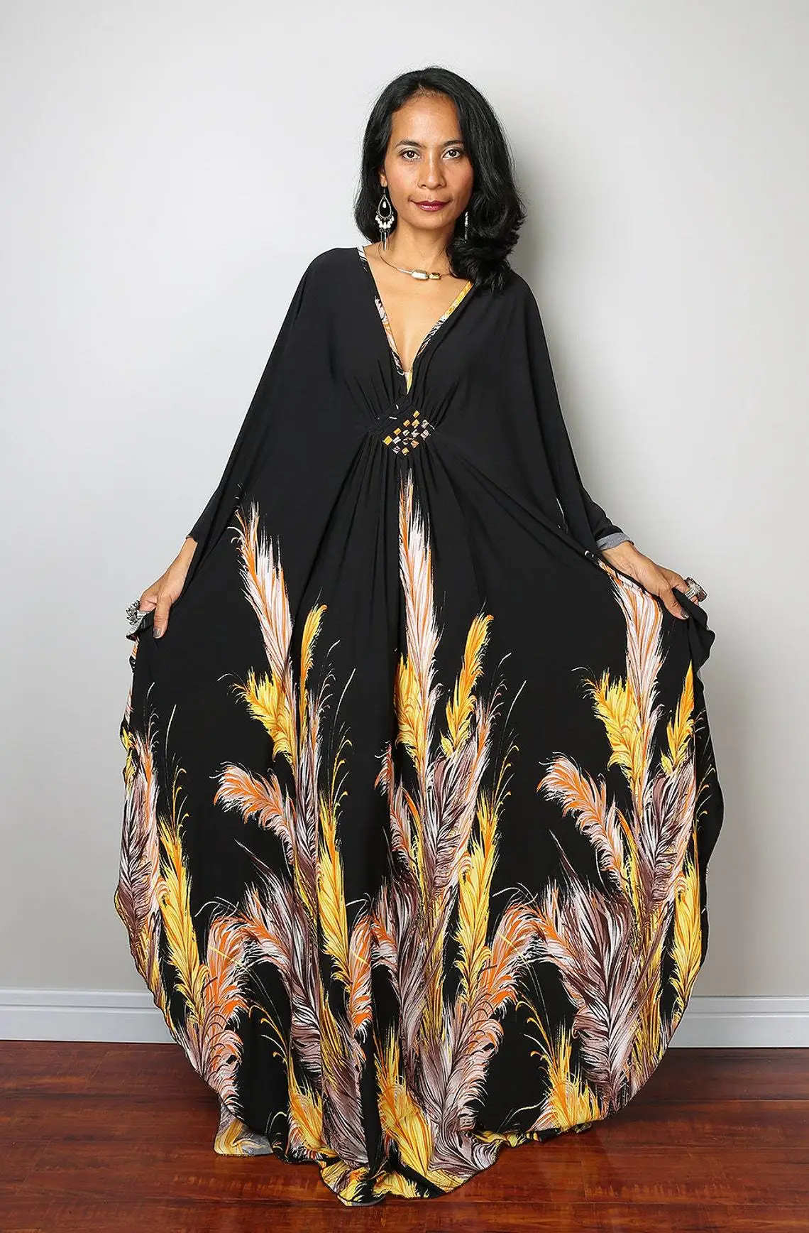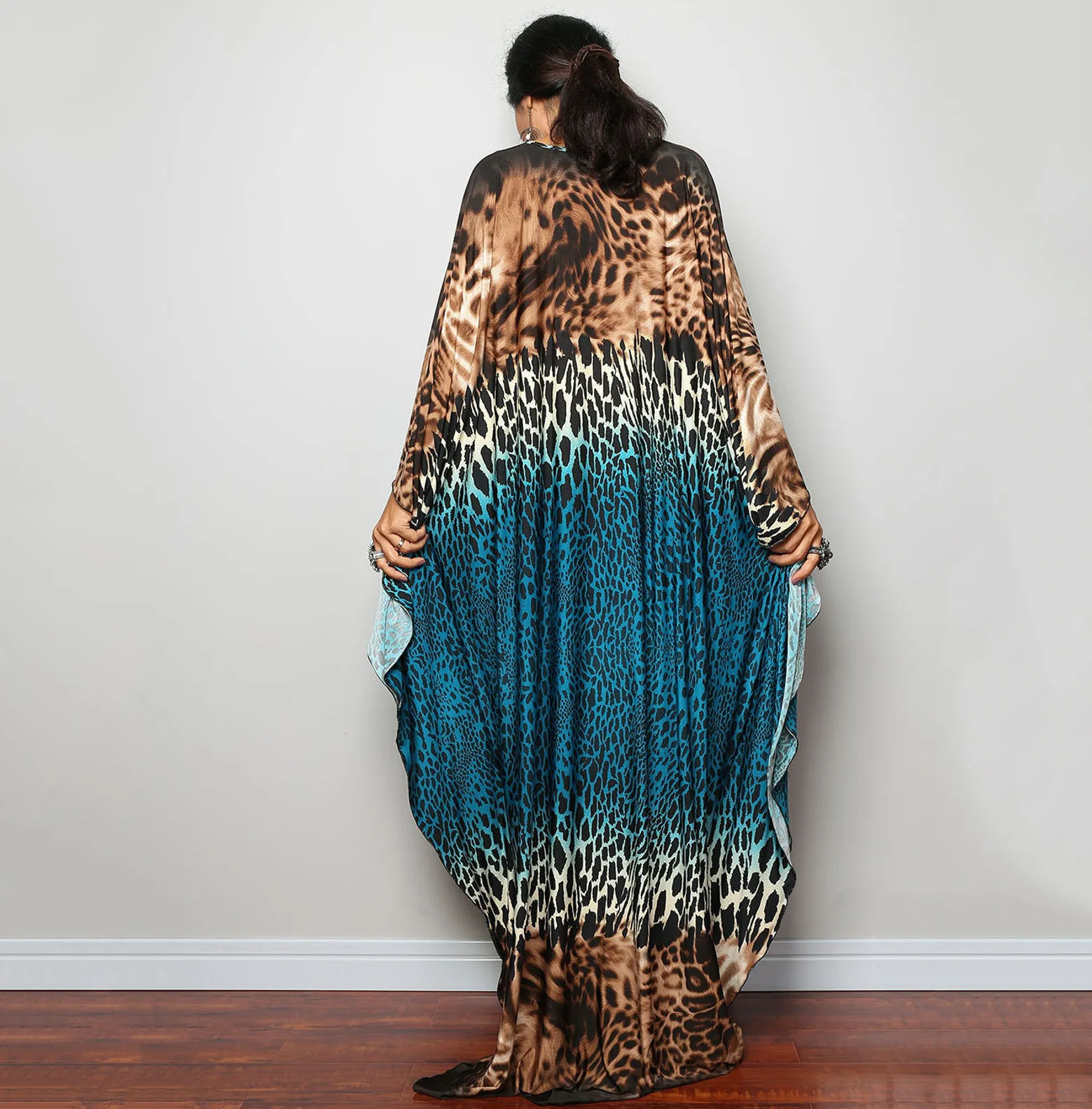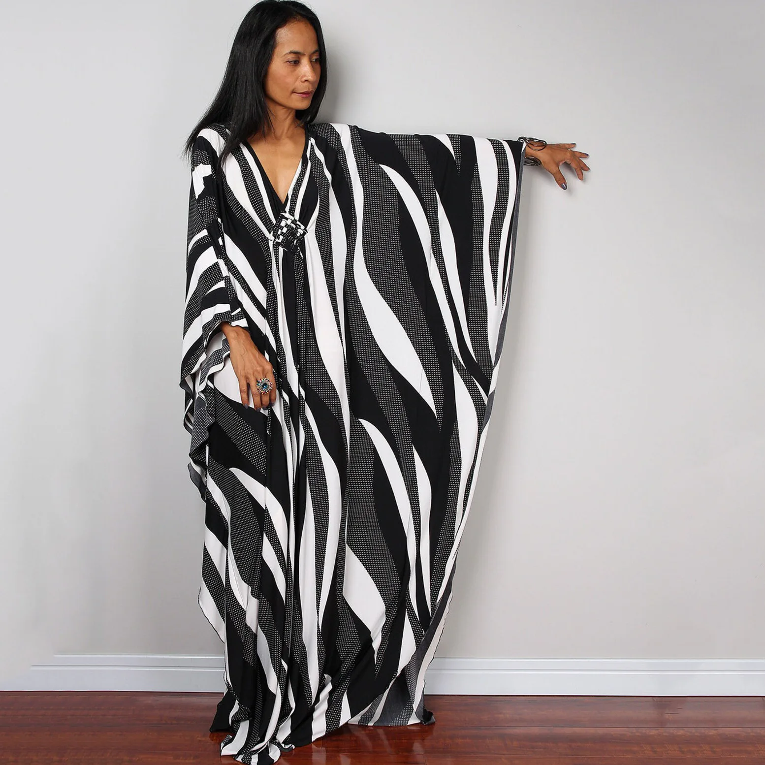 2023 Print Maxi Dress Batwing Sleeve Tunic Spring/Autumn Beach Dress Tunic Casual plus Size Women Beachwear Kaftan Sarongs