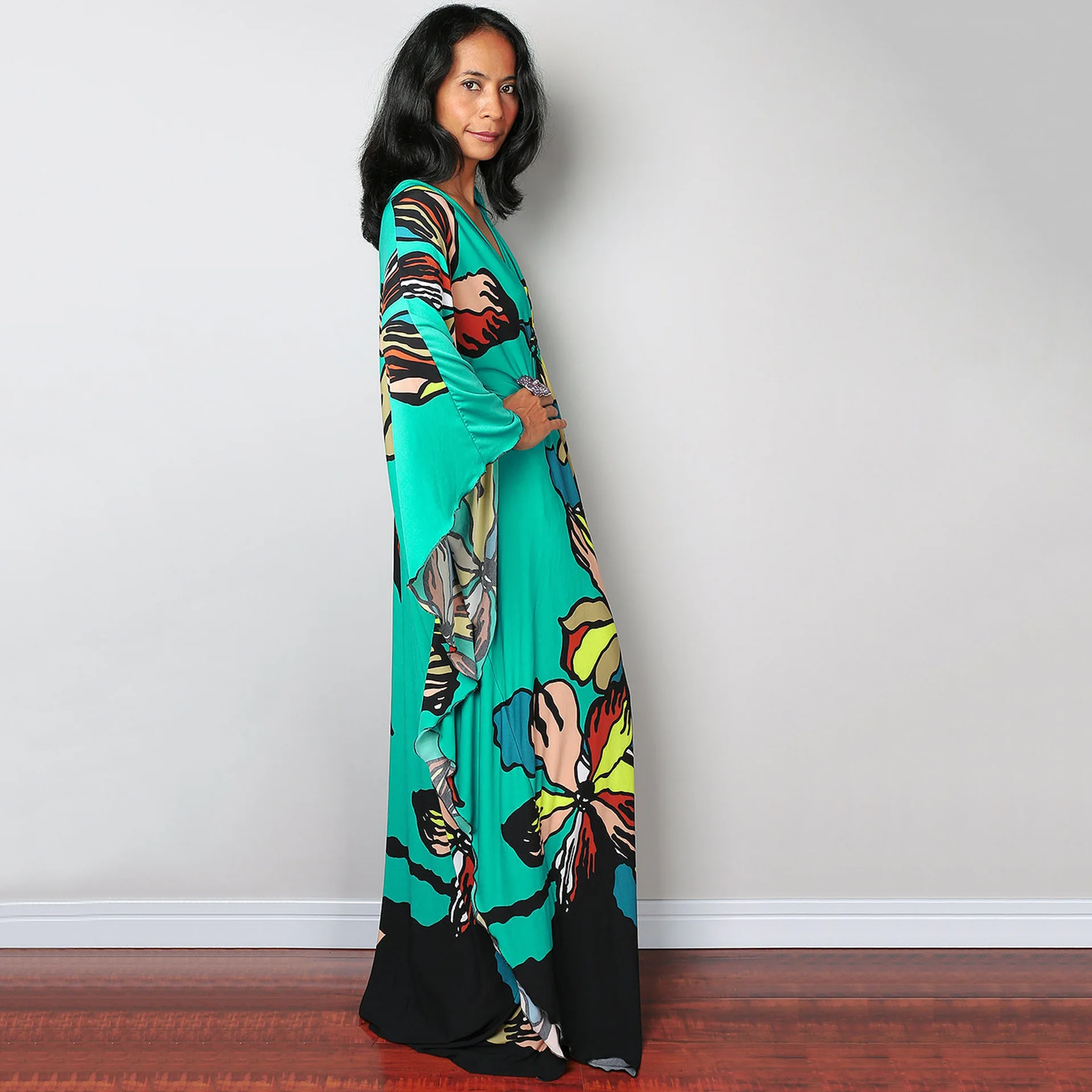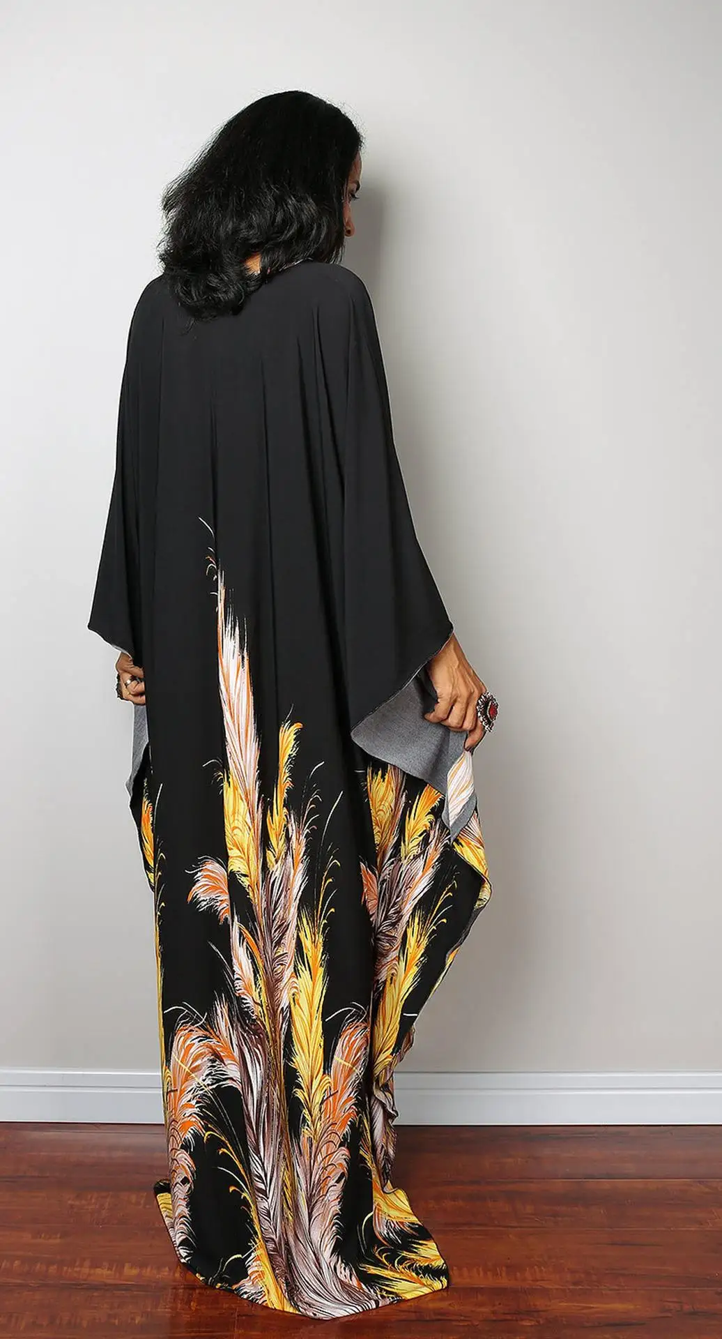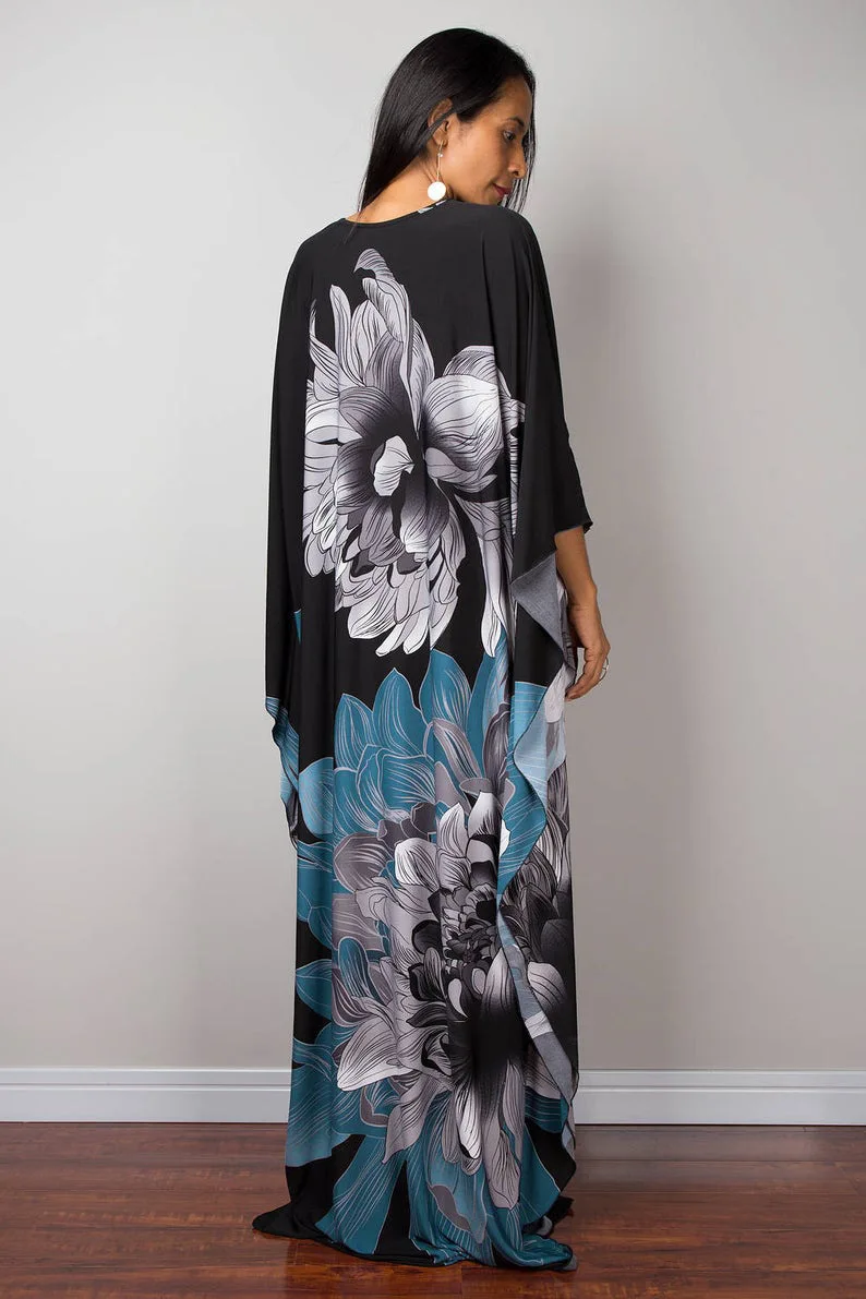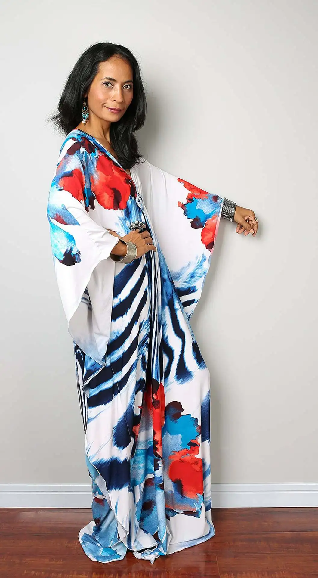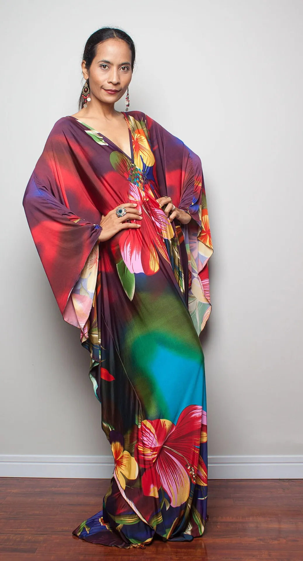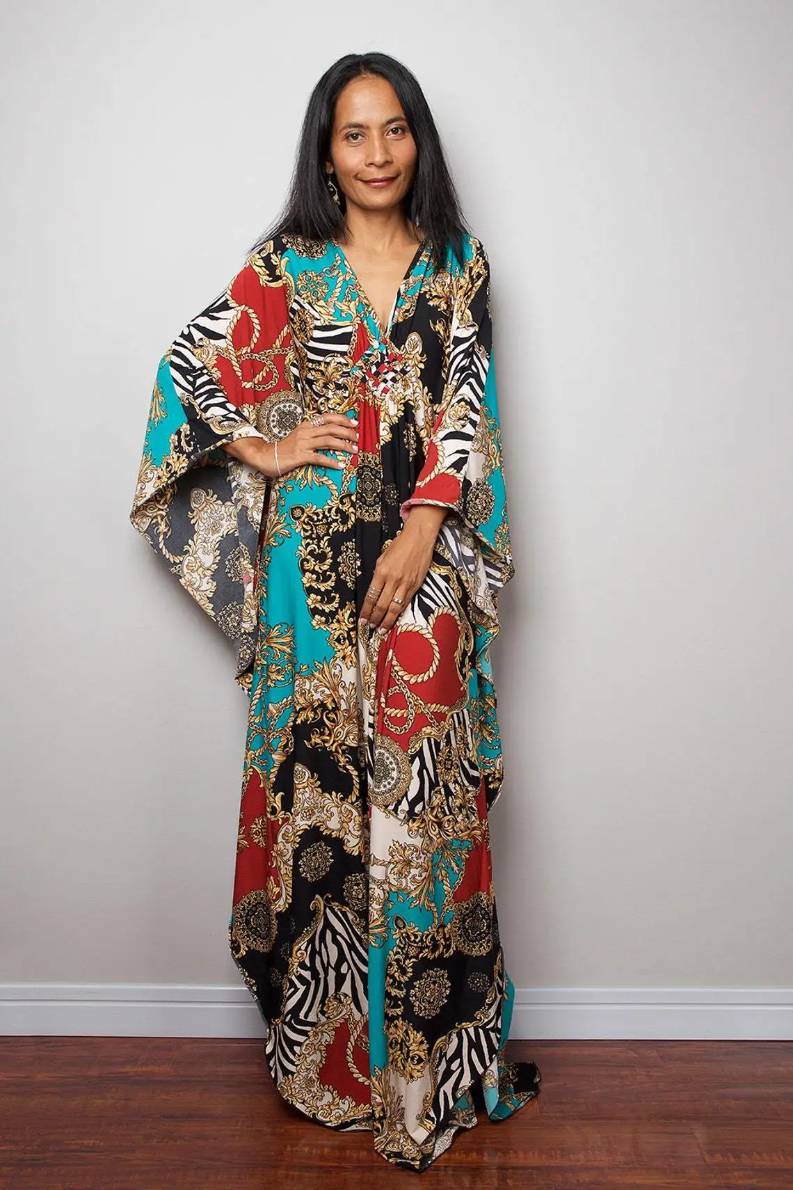 2023 Print Maxi Dress Batwing Sleeve Tunic Spring/Autumn Beach Dress Tunic Casual plus Size Women Beachwear Kaftan Sarongs