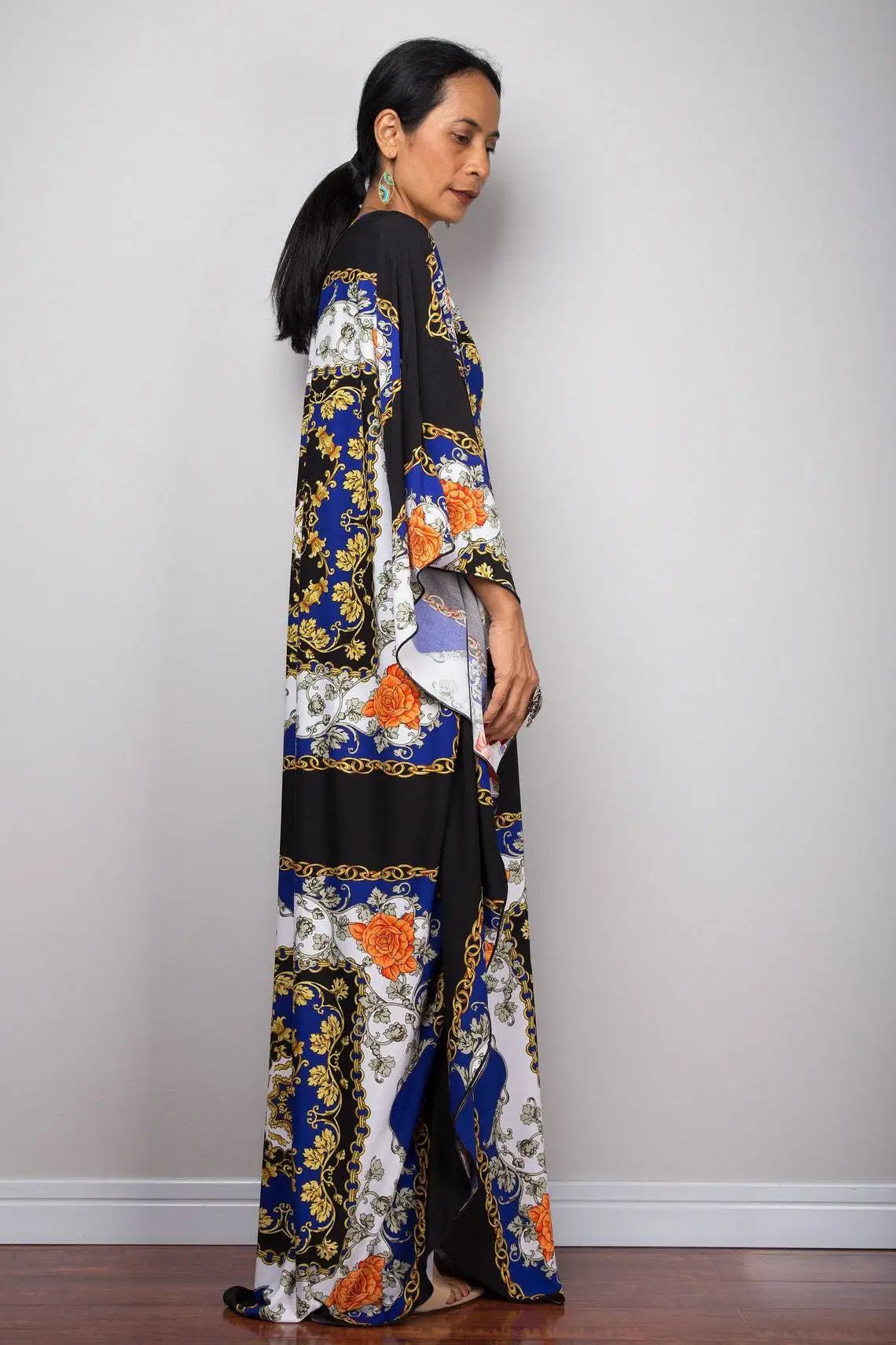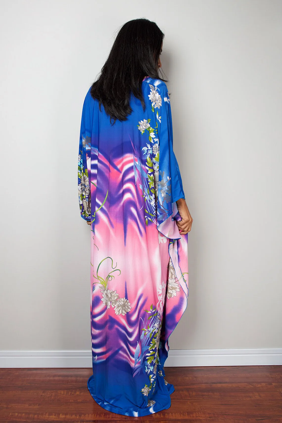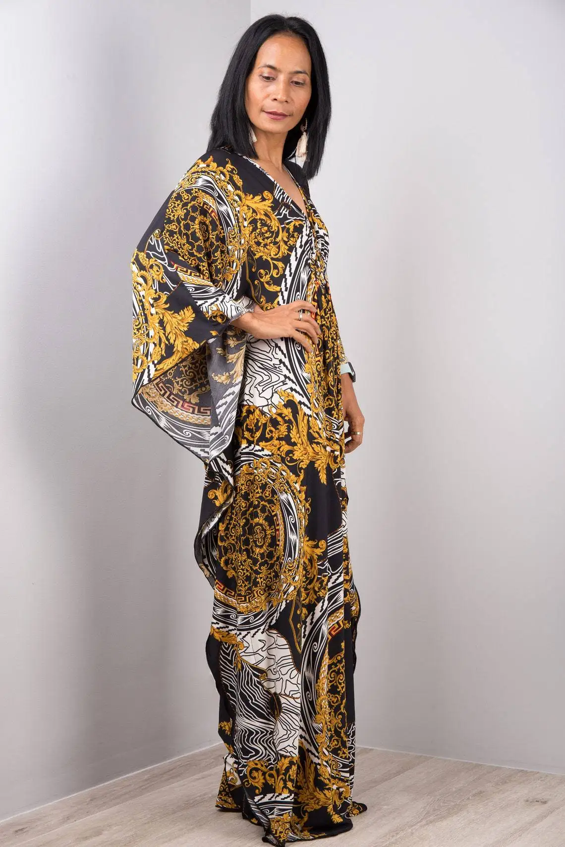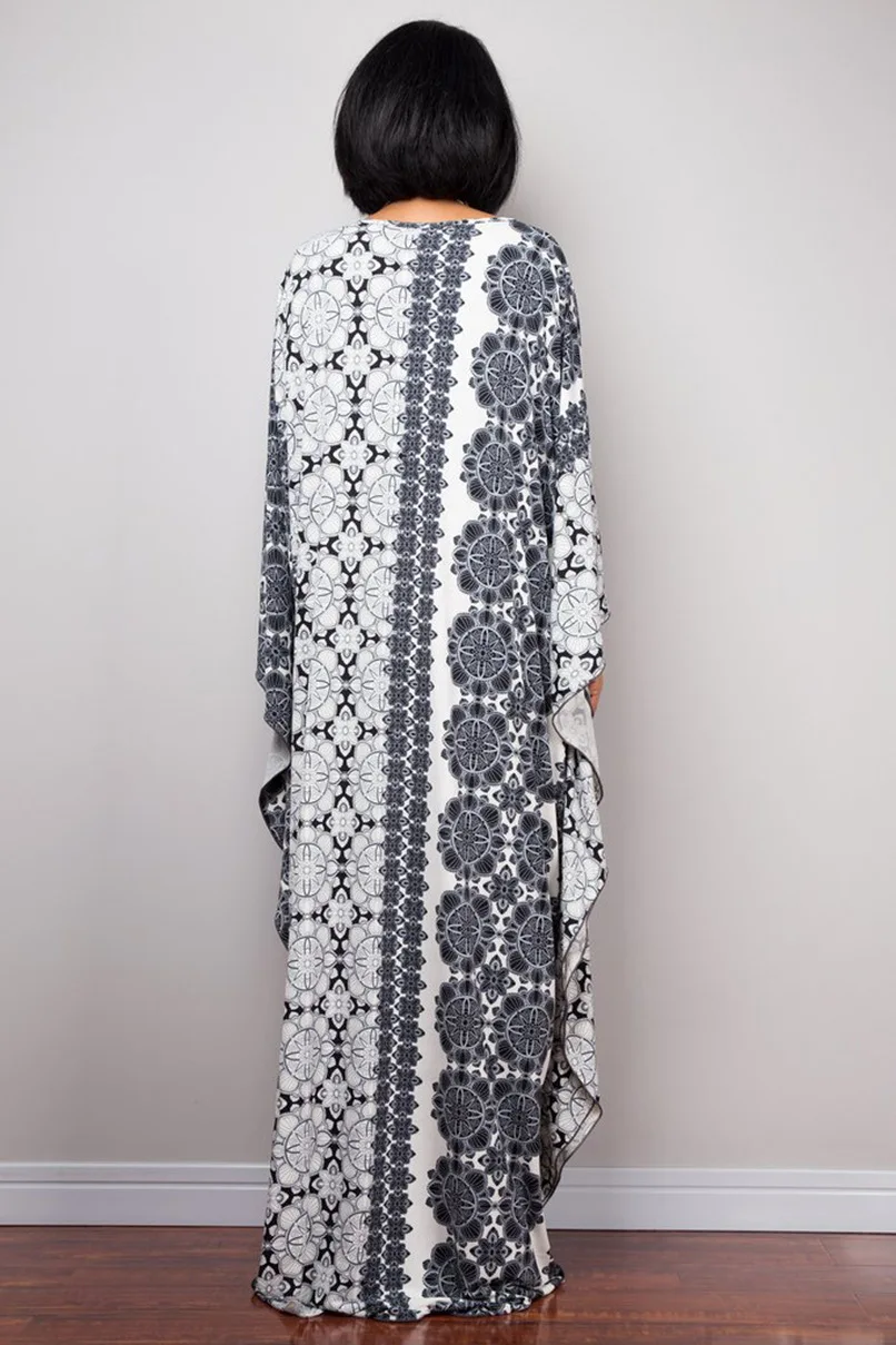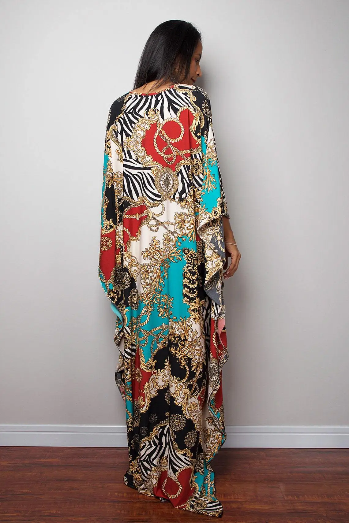 2023 Print Maxi Dress Batwing Sleeve Tunic Spring/Autumn Beach Dress Tunic Casual plus Size Women Beachwear Kaftan Sarongs