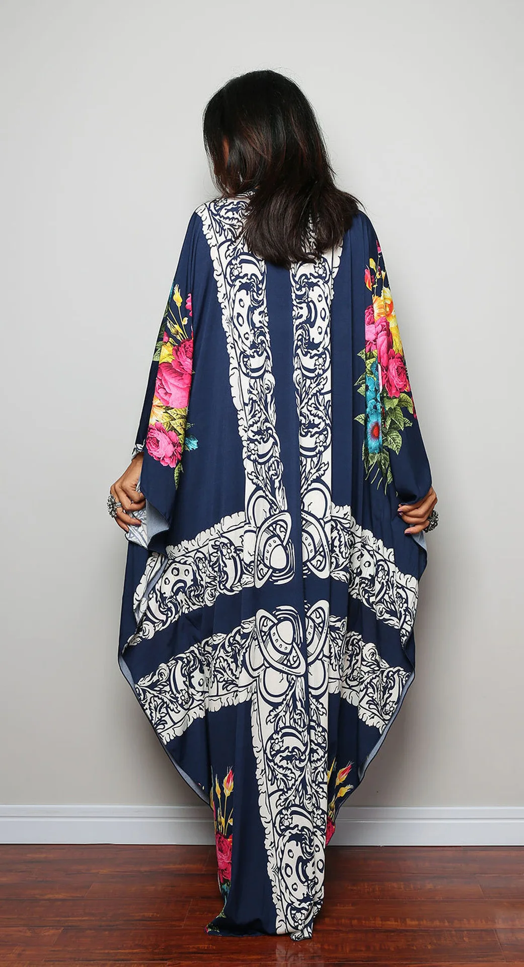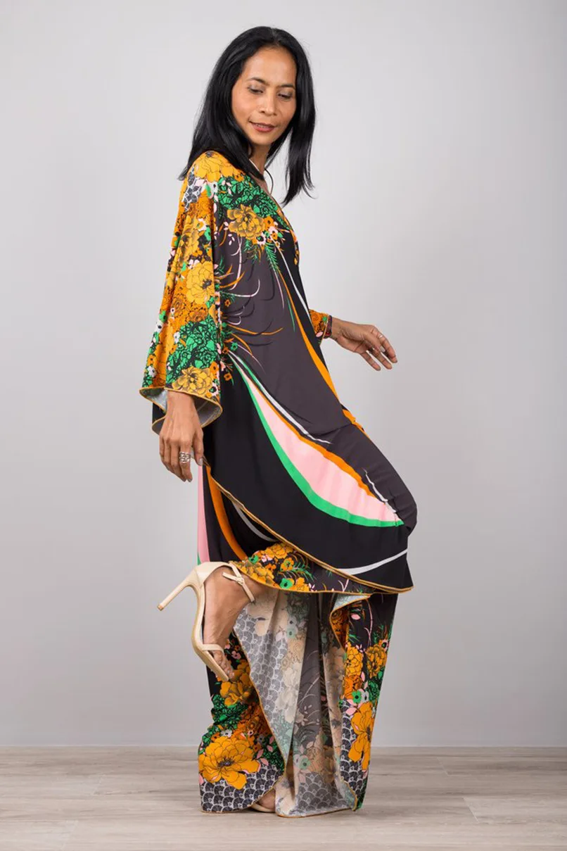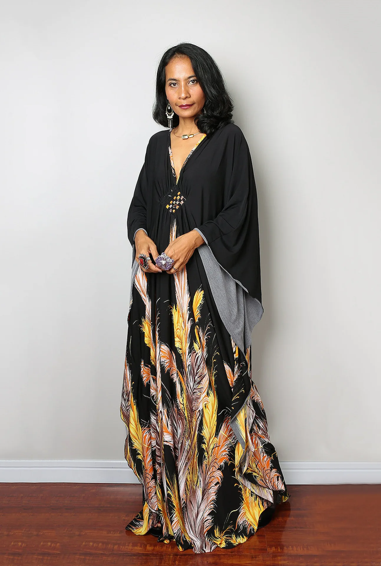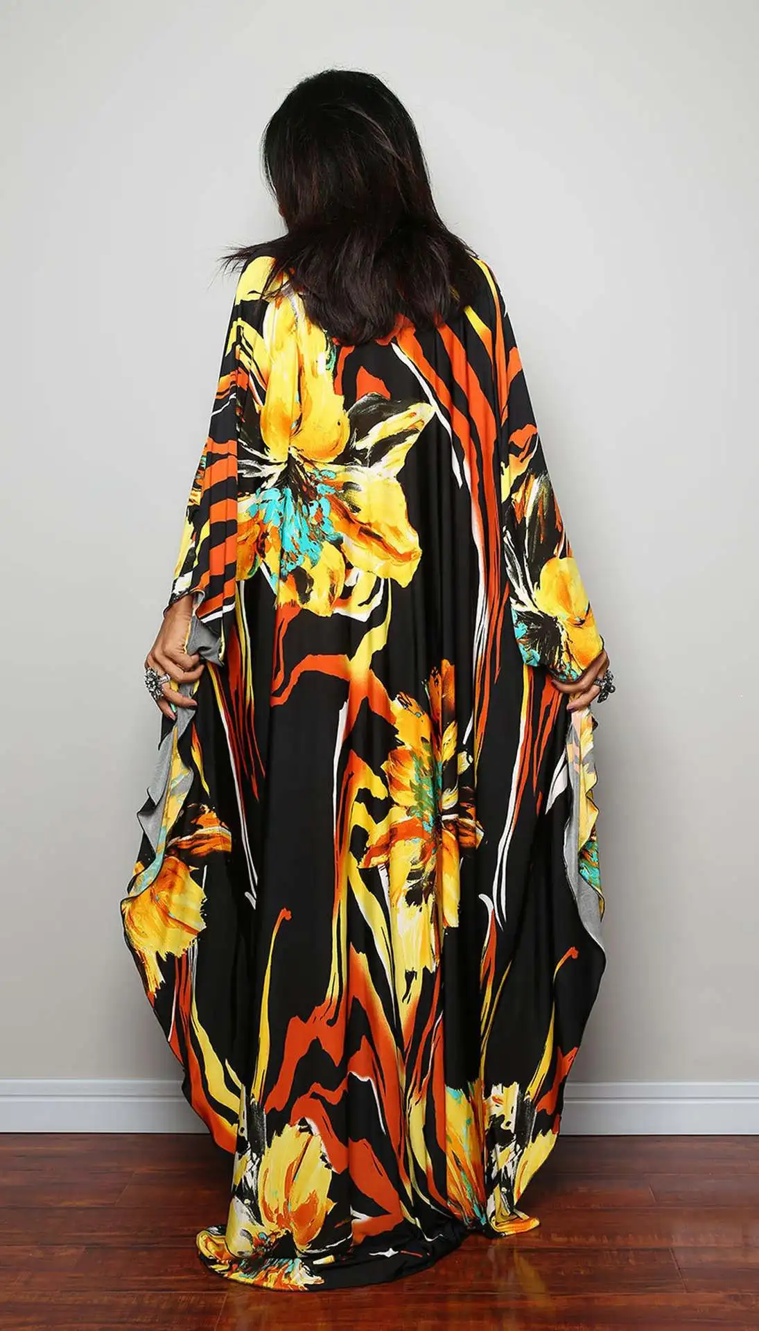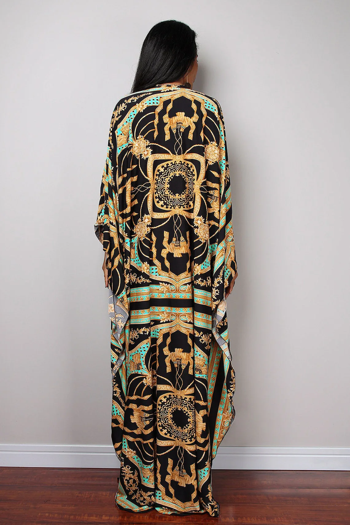 2023 Print Maxi Dress Batwing Sleeve Tunic Spring/Autumn Beach Dress Tunic Casual plus Size Women Beachwear Kaftan Sarongs