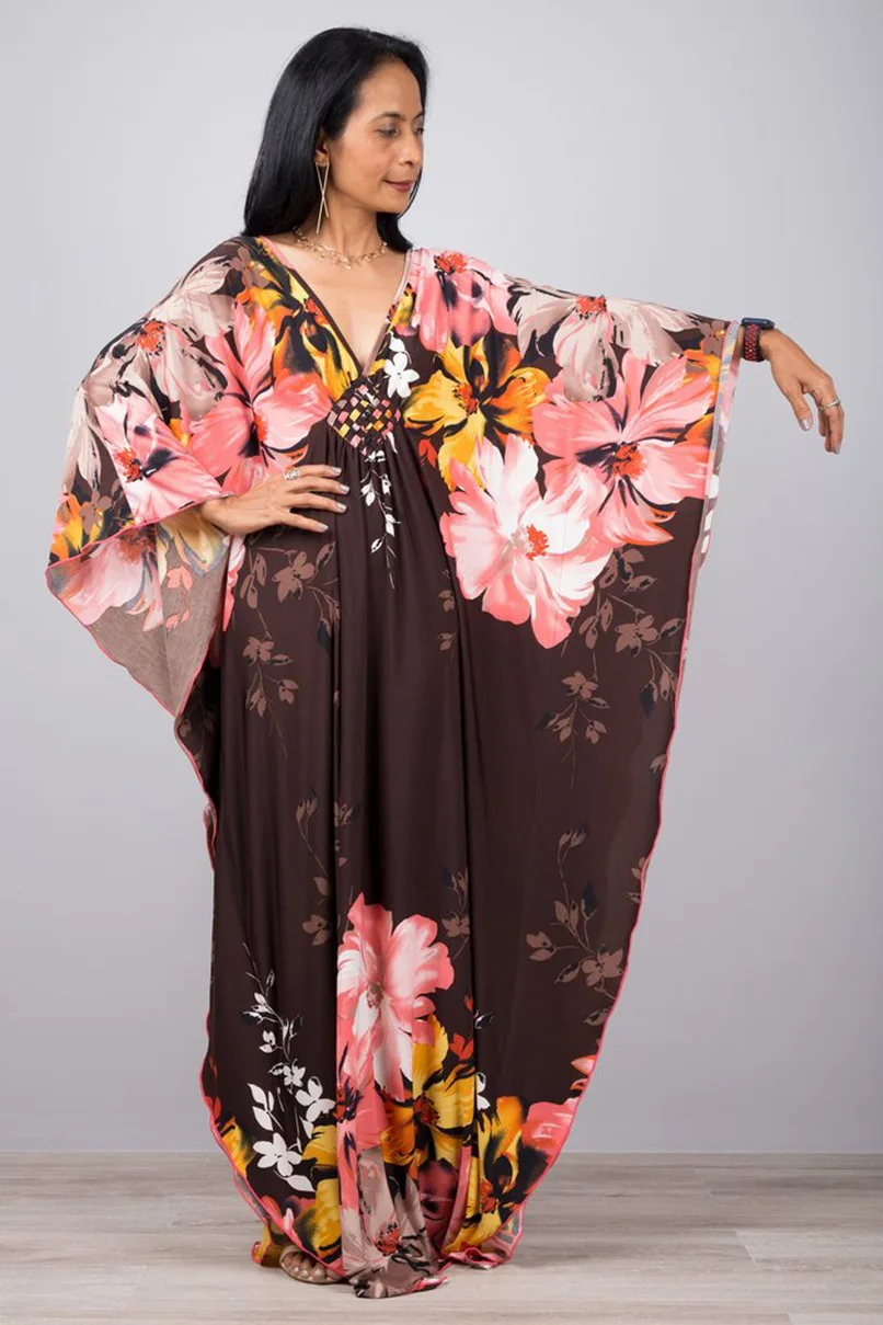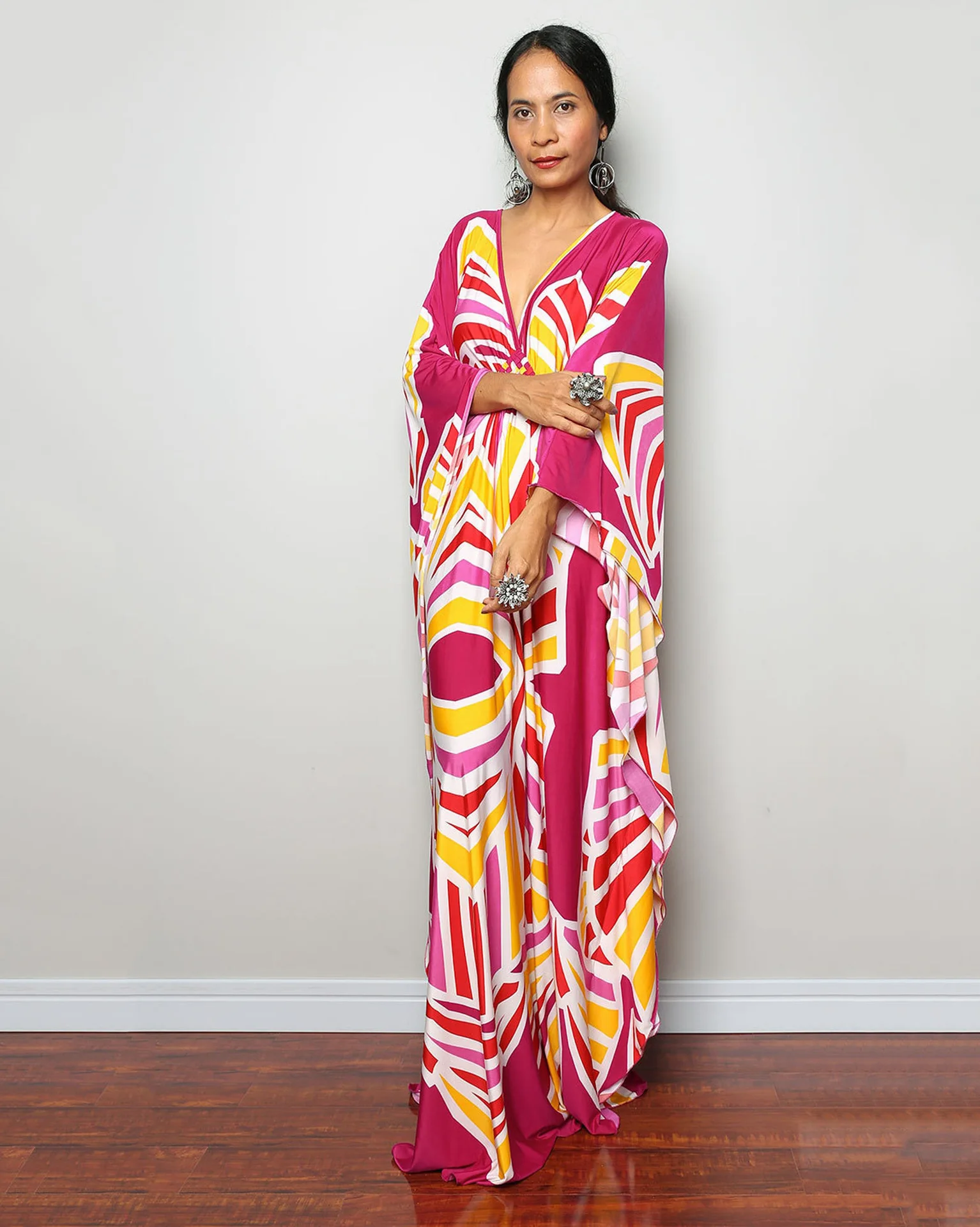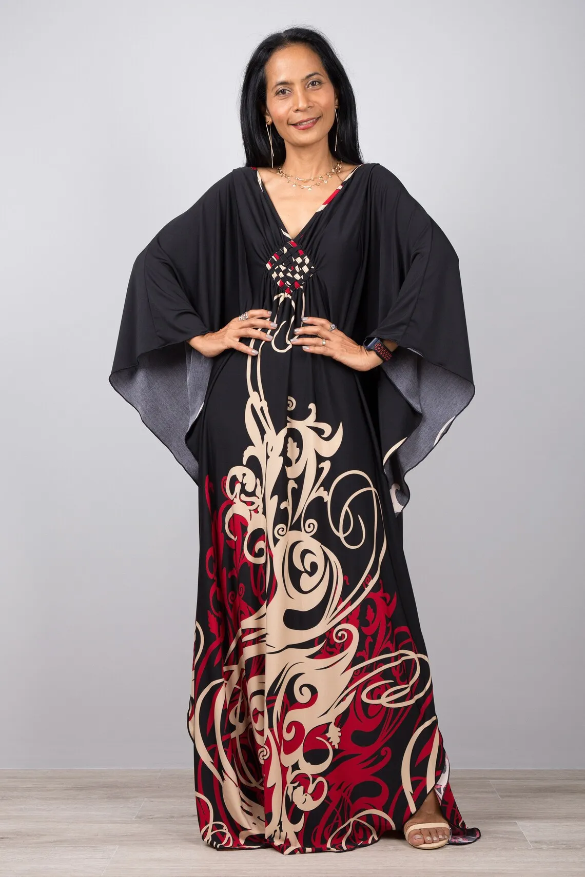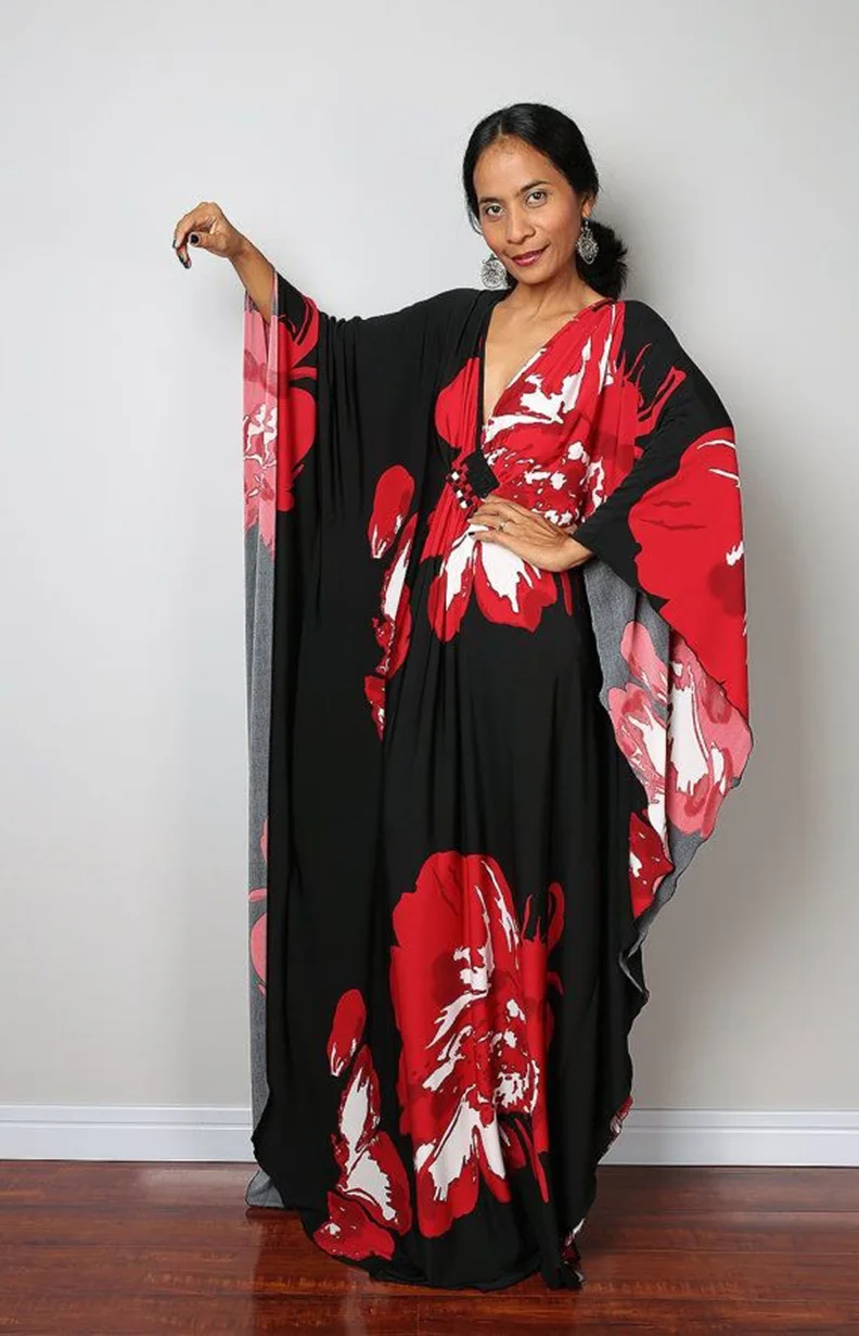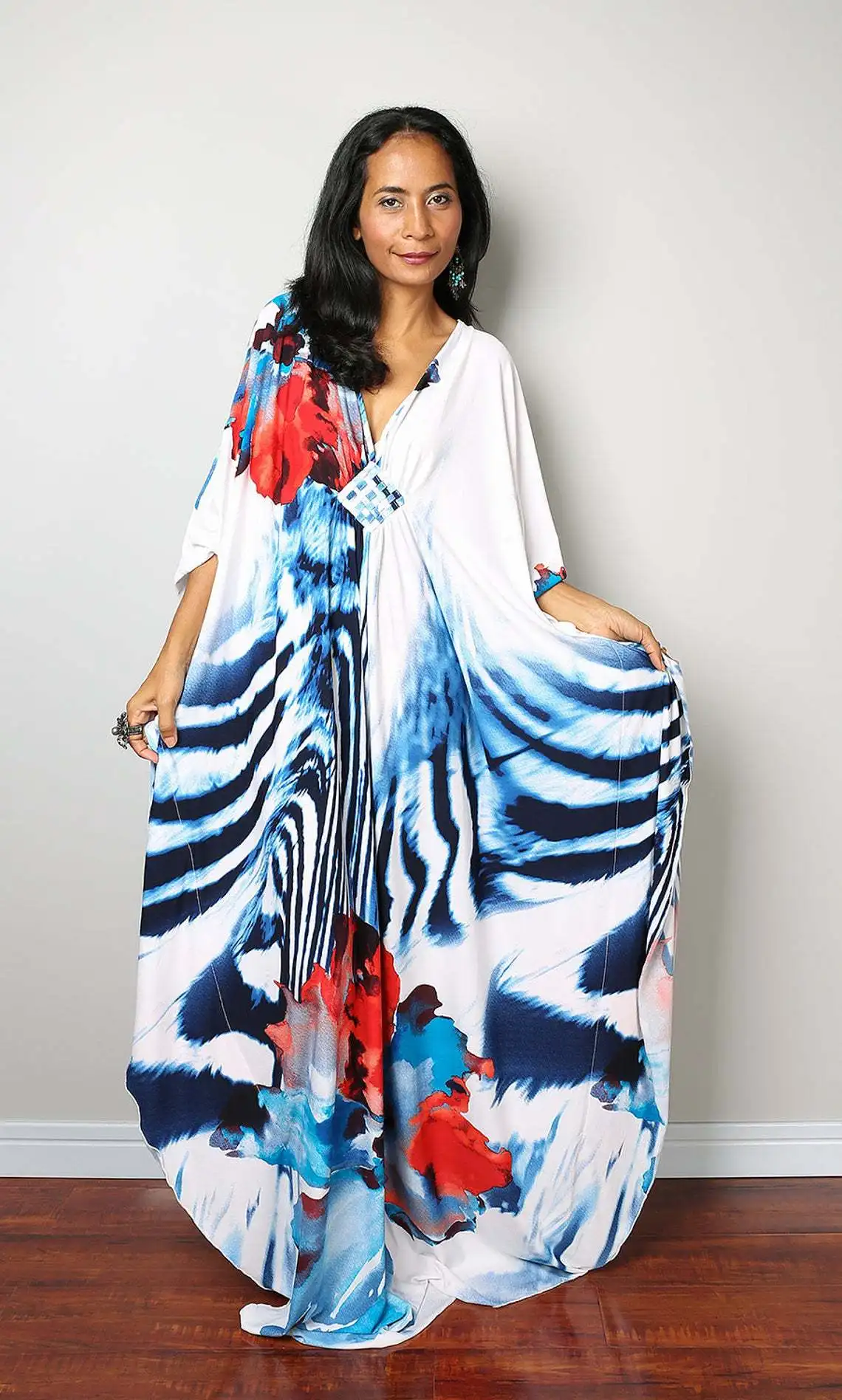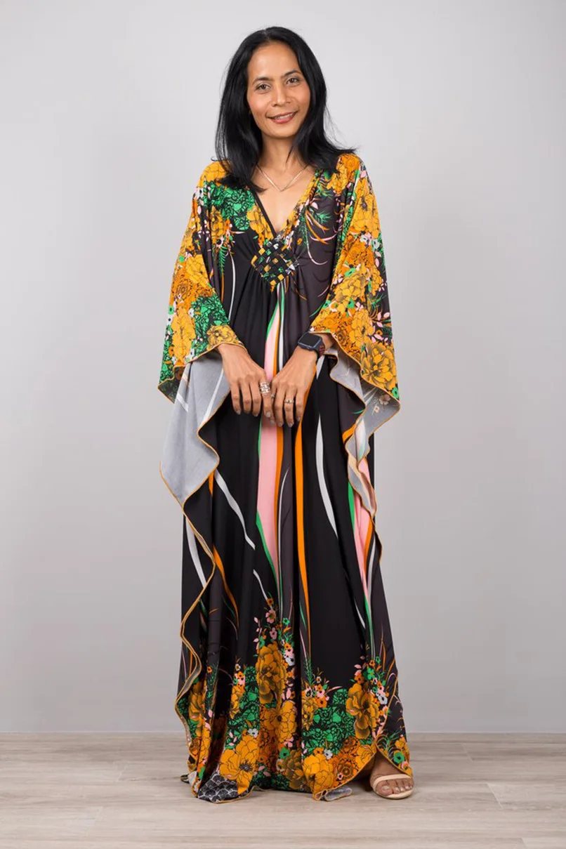 2023 Print Maxi Dress Batwing Sleeve Tunic Spring/Autumn Beach Dress Tunic Casual plus Size Women Beachwear Kaftan Sarongs