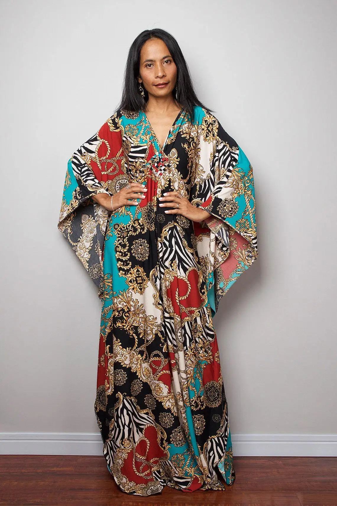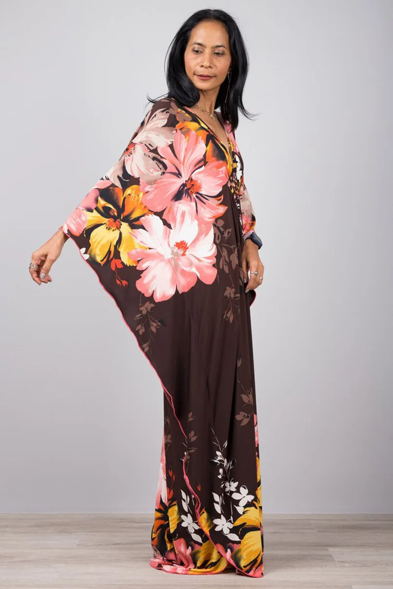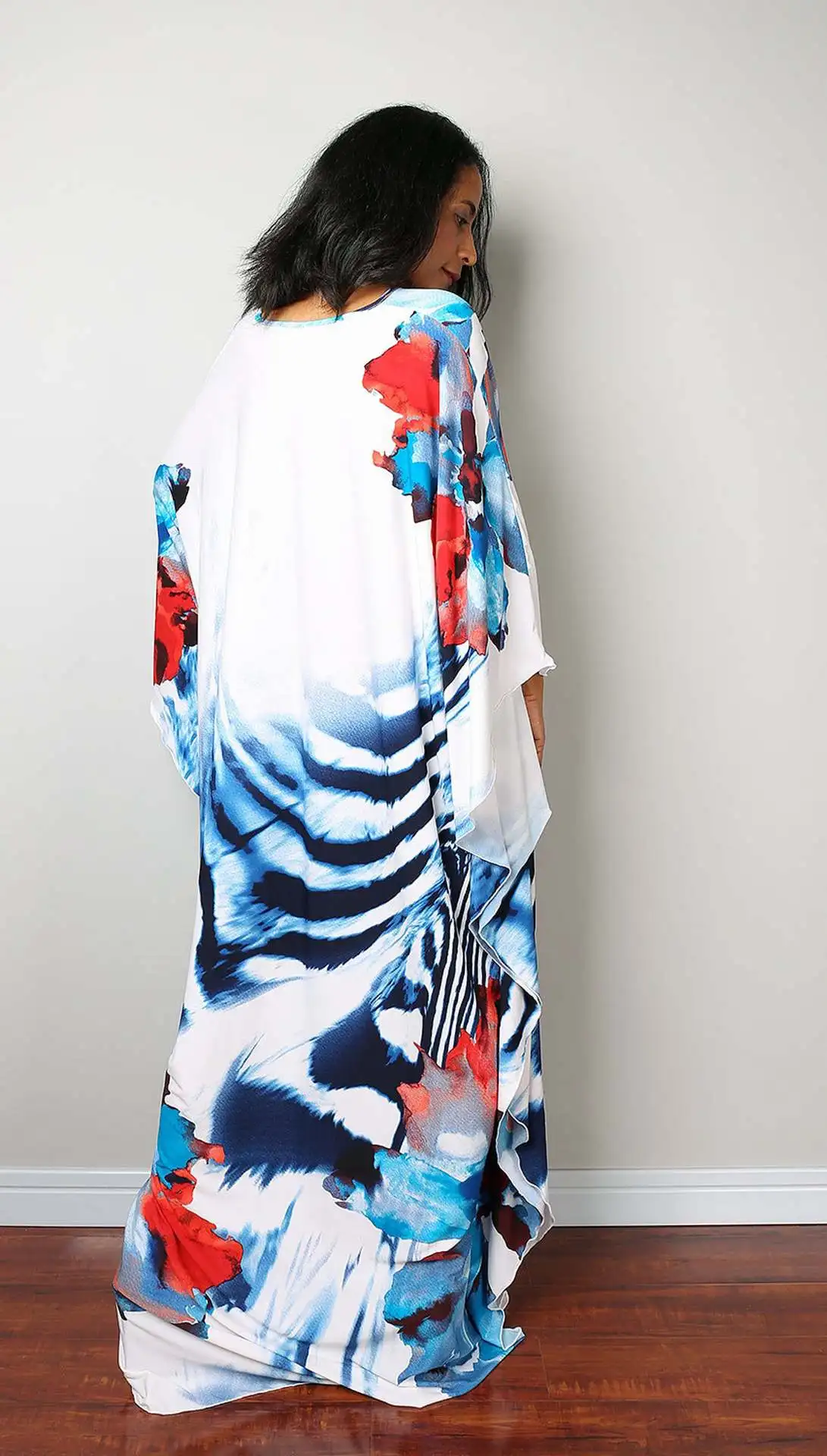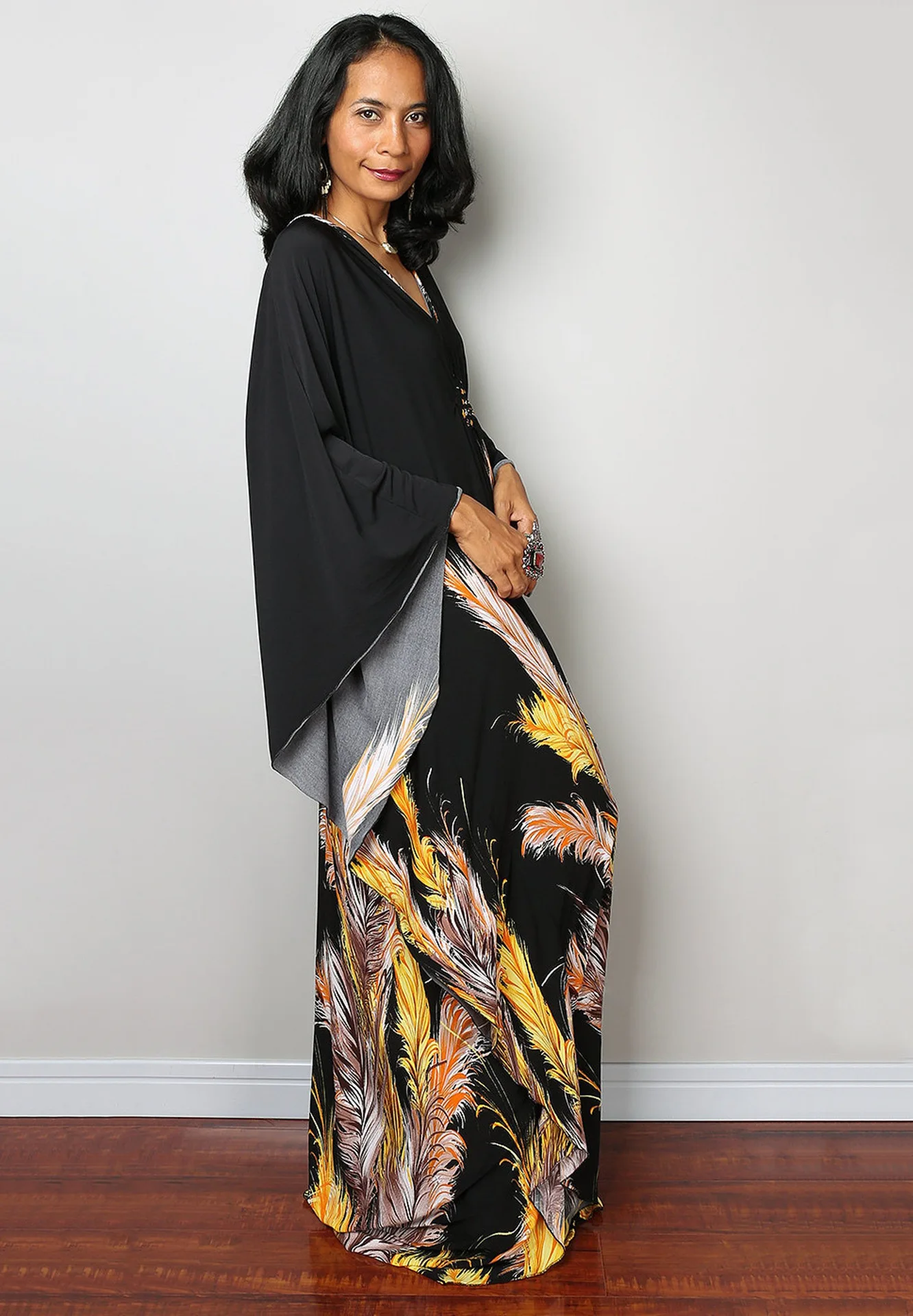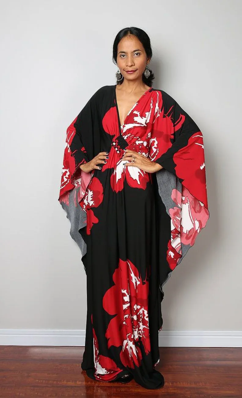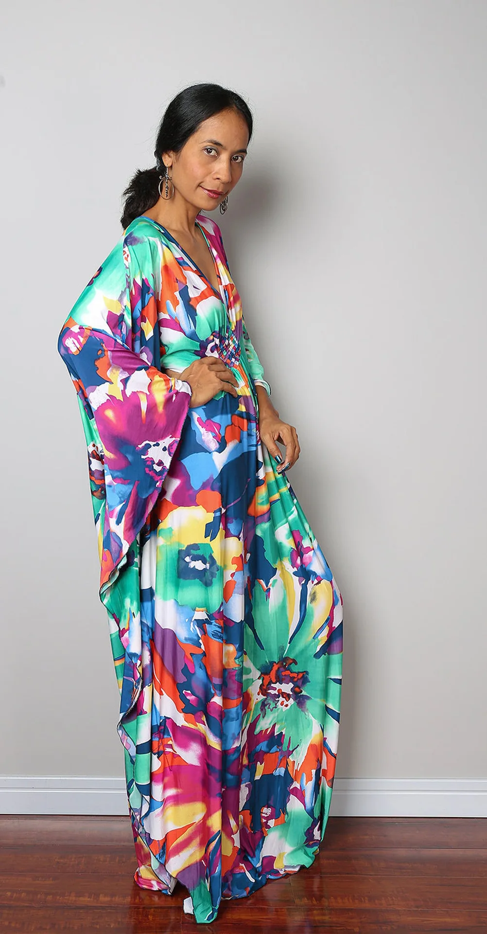 2023 Print Maxi Dress Batwing Sleeve Tunic Spring/Autumn Beach Dress Tunic Casual plus Size Women Beachwear Kaftan Sarongs