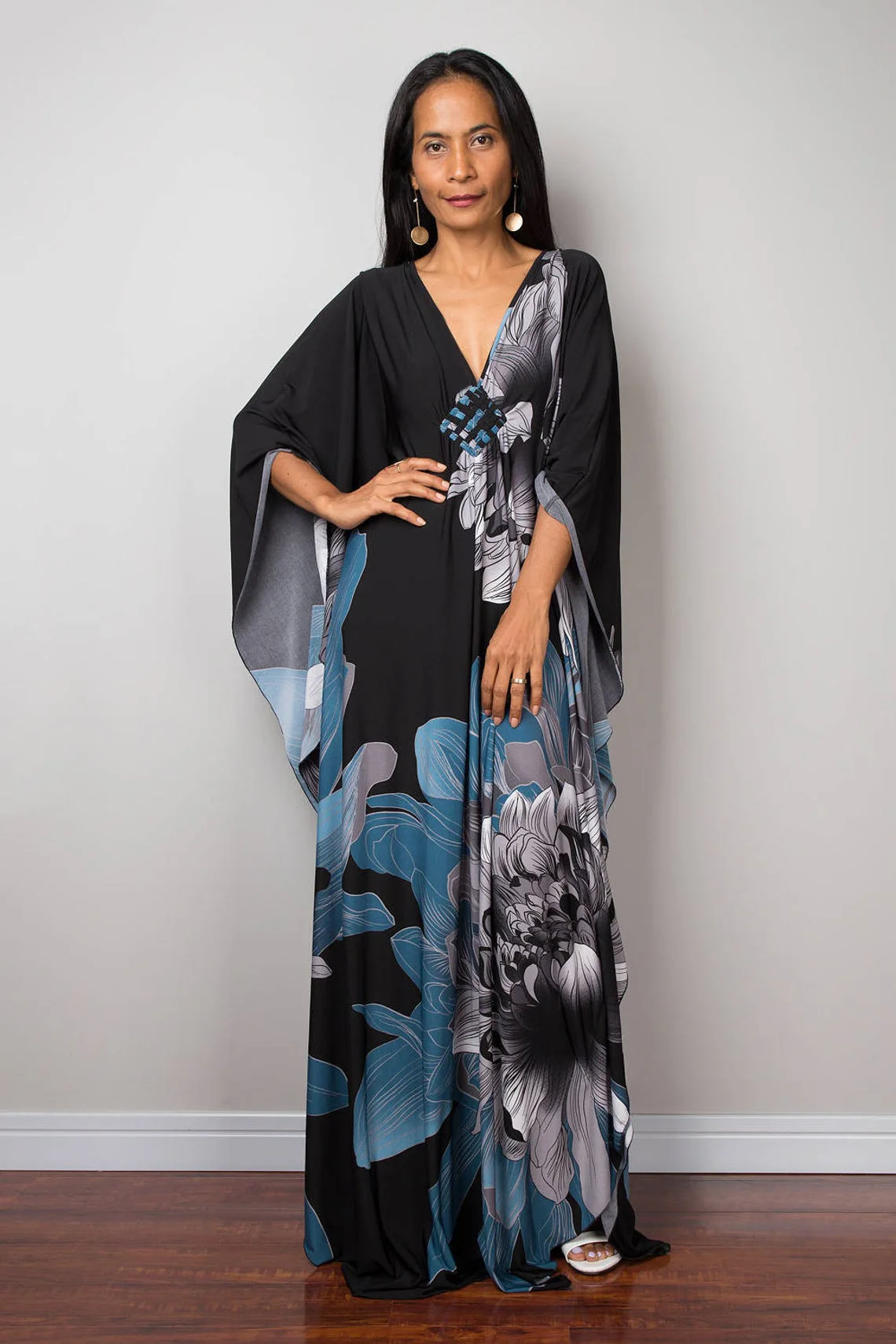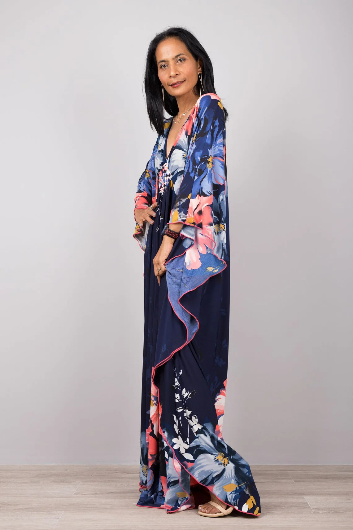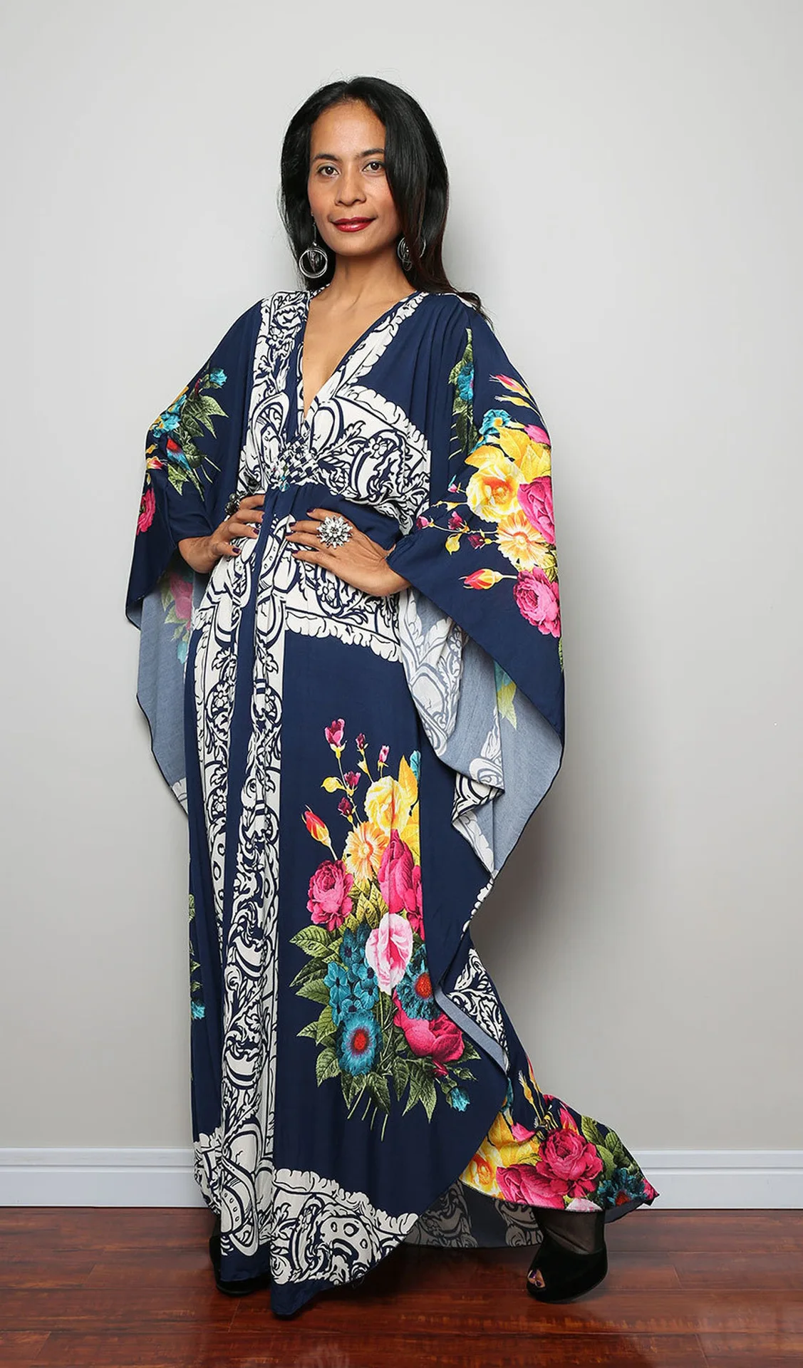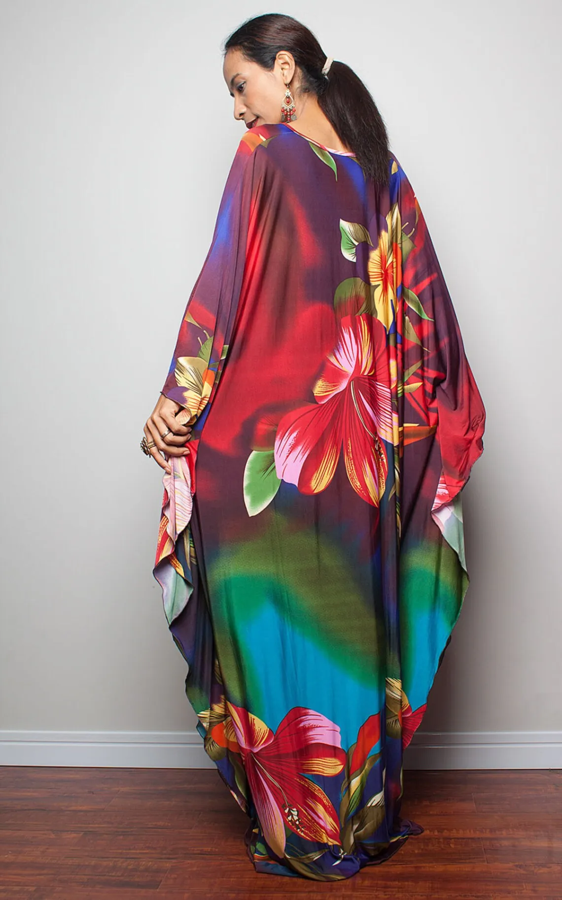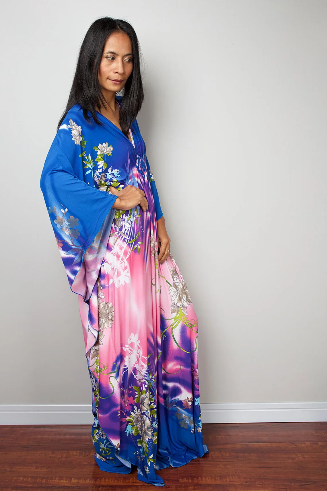 2023 Print Maxi Dress Batwing Sleeve Tunic Spring/Autumn Beach Dress Tunic Casual plus Size Women Beachwear Kaftan Sarongs