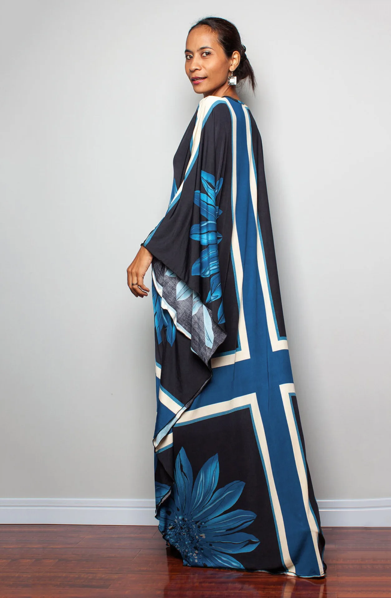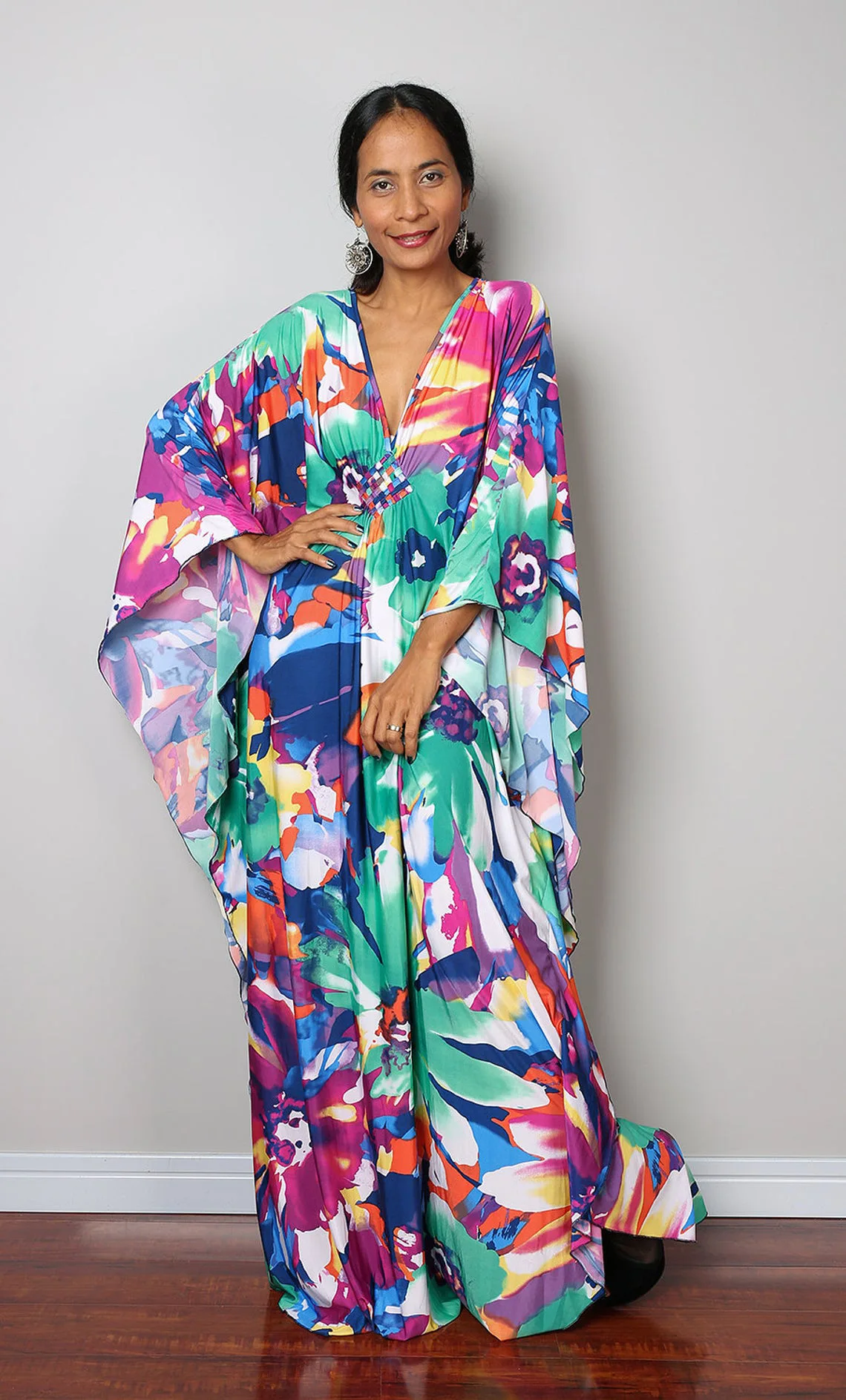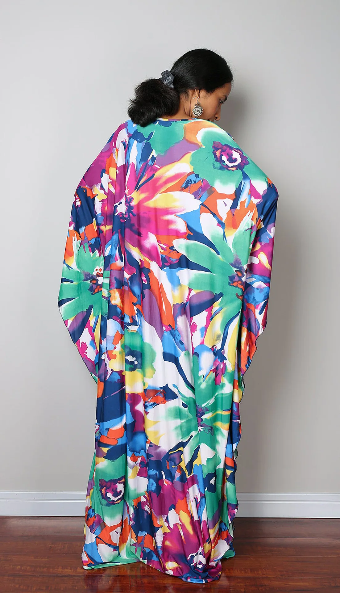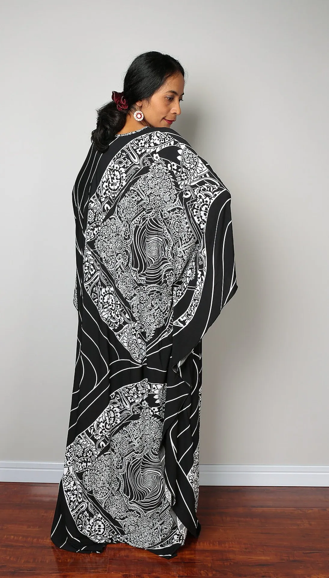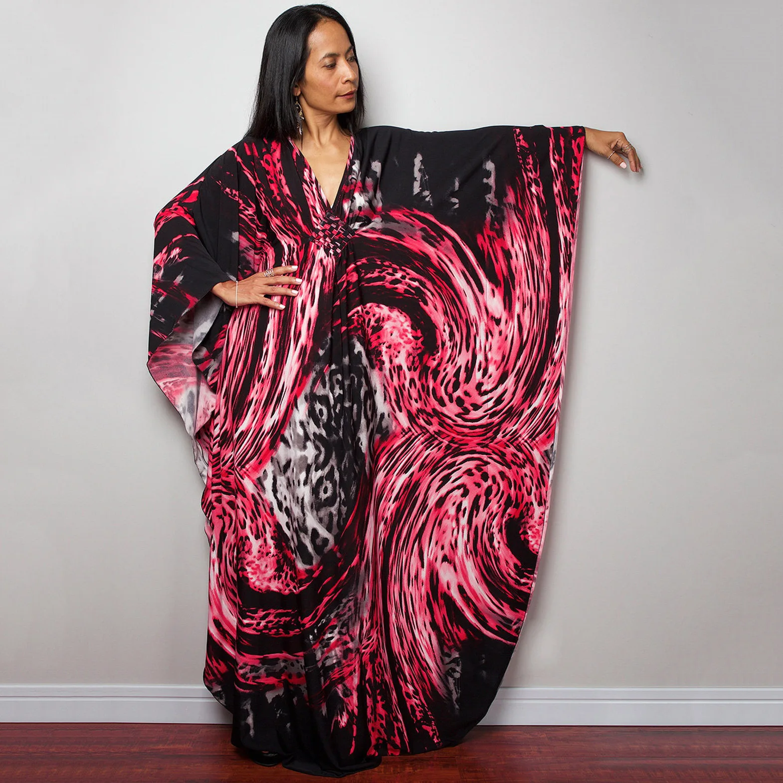 2023 Print Maxi Dress Batwing Sleeve Tunic Spring/Autumn Beach Dress Tunic Casual plus Size Women Beachwear Kaftan Sarongs