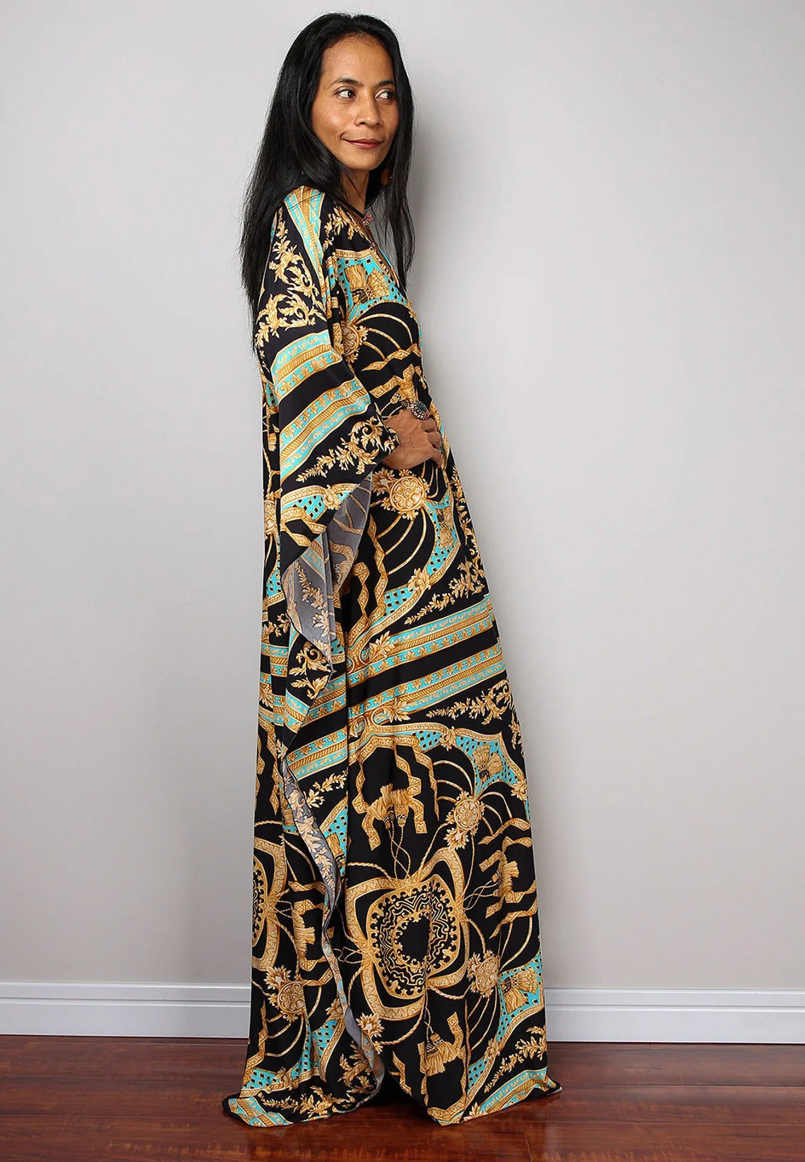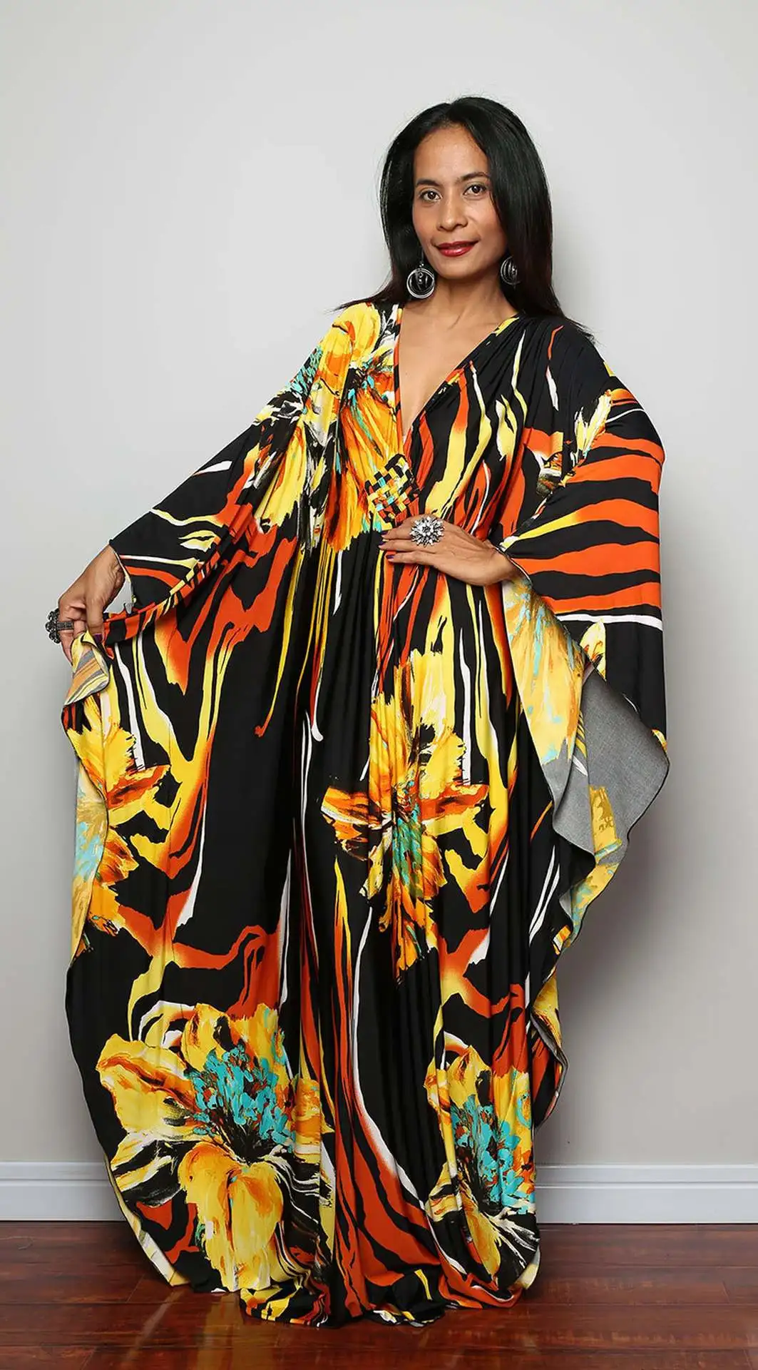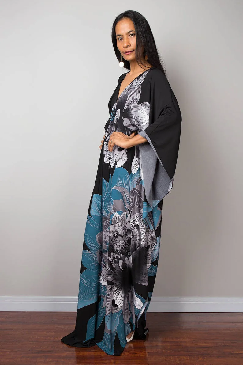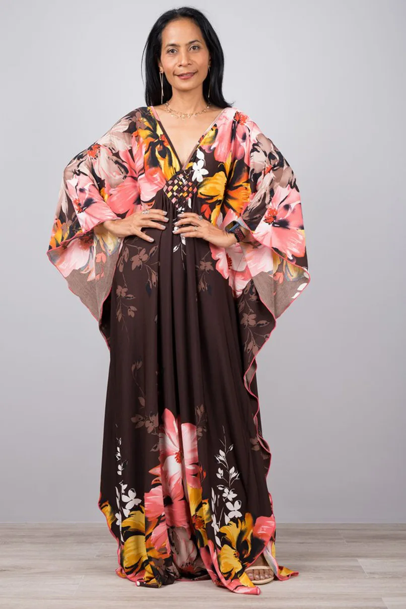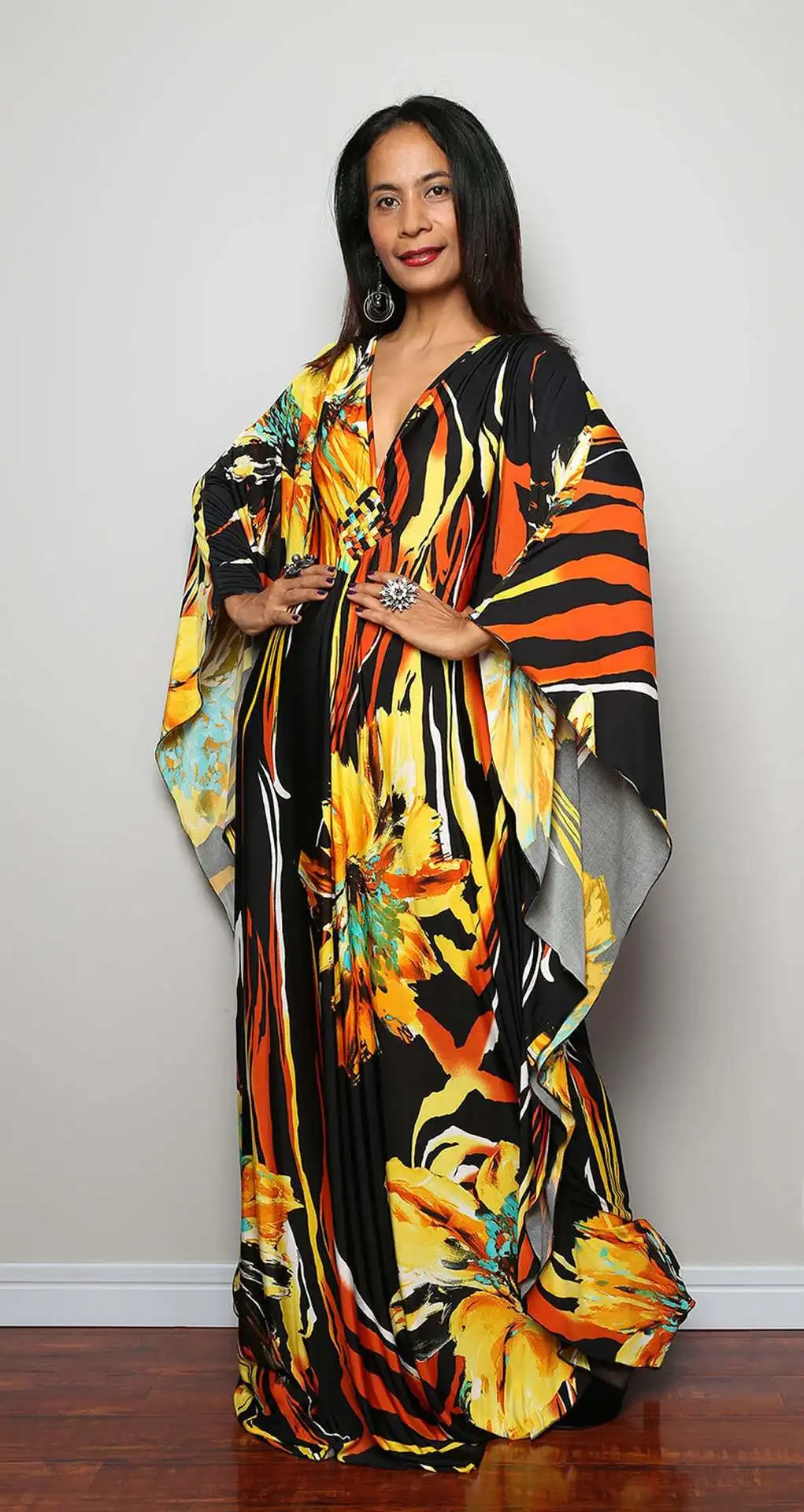 2023 Print Maxi Dress Batwing Sleeve Tunic Spring/Autumn Beach Dress Tunic Casual plus Size Women Beachwear Kaftan Sarongs