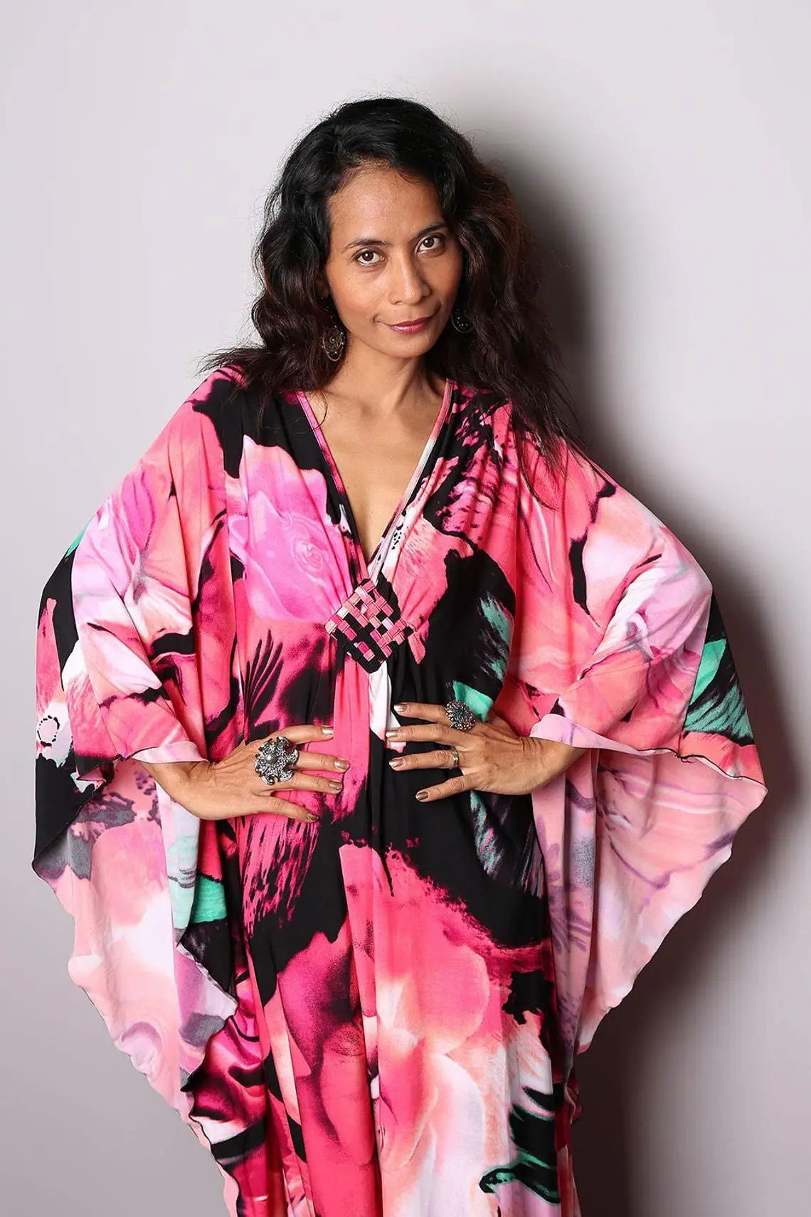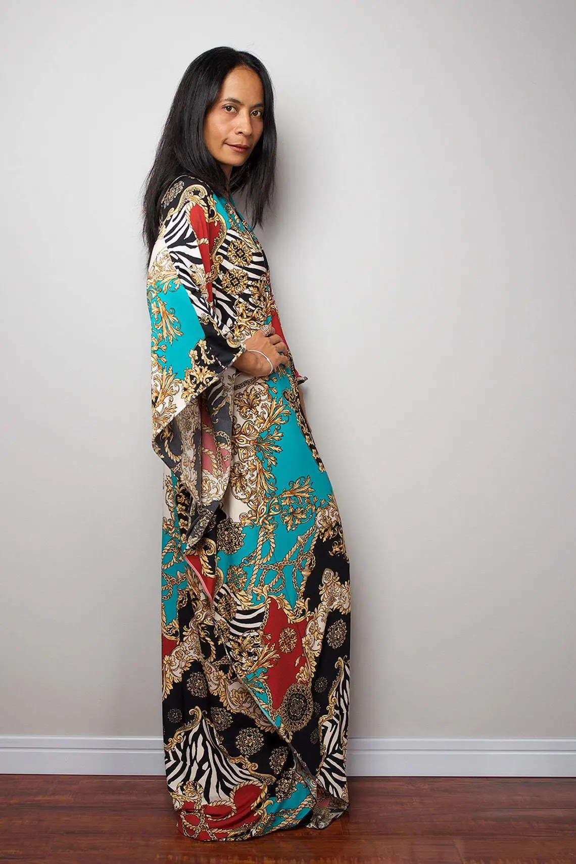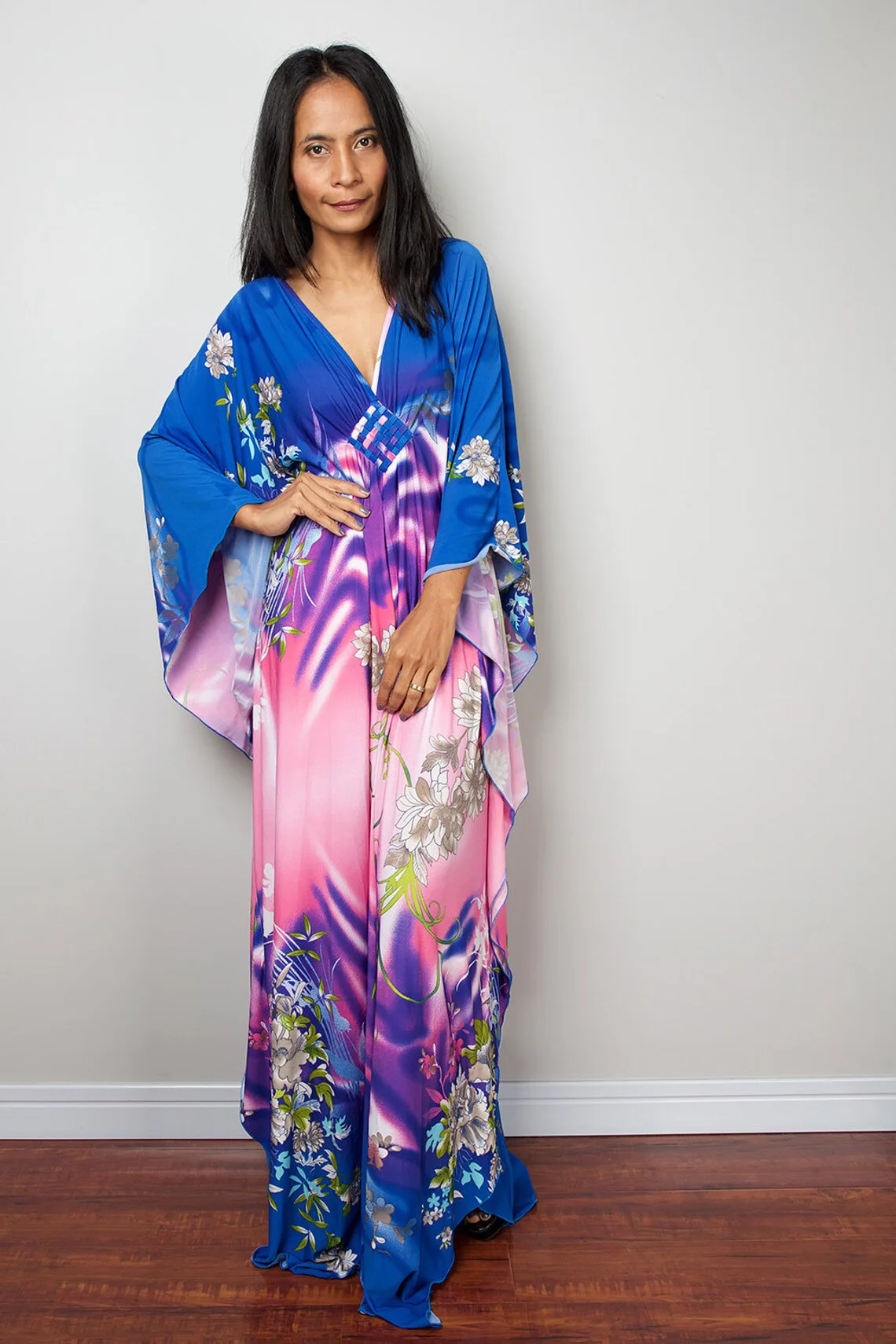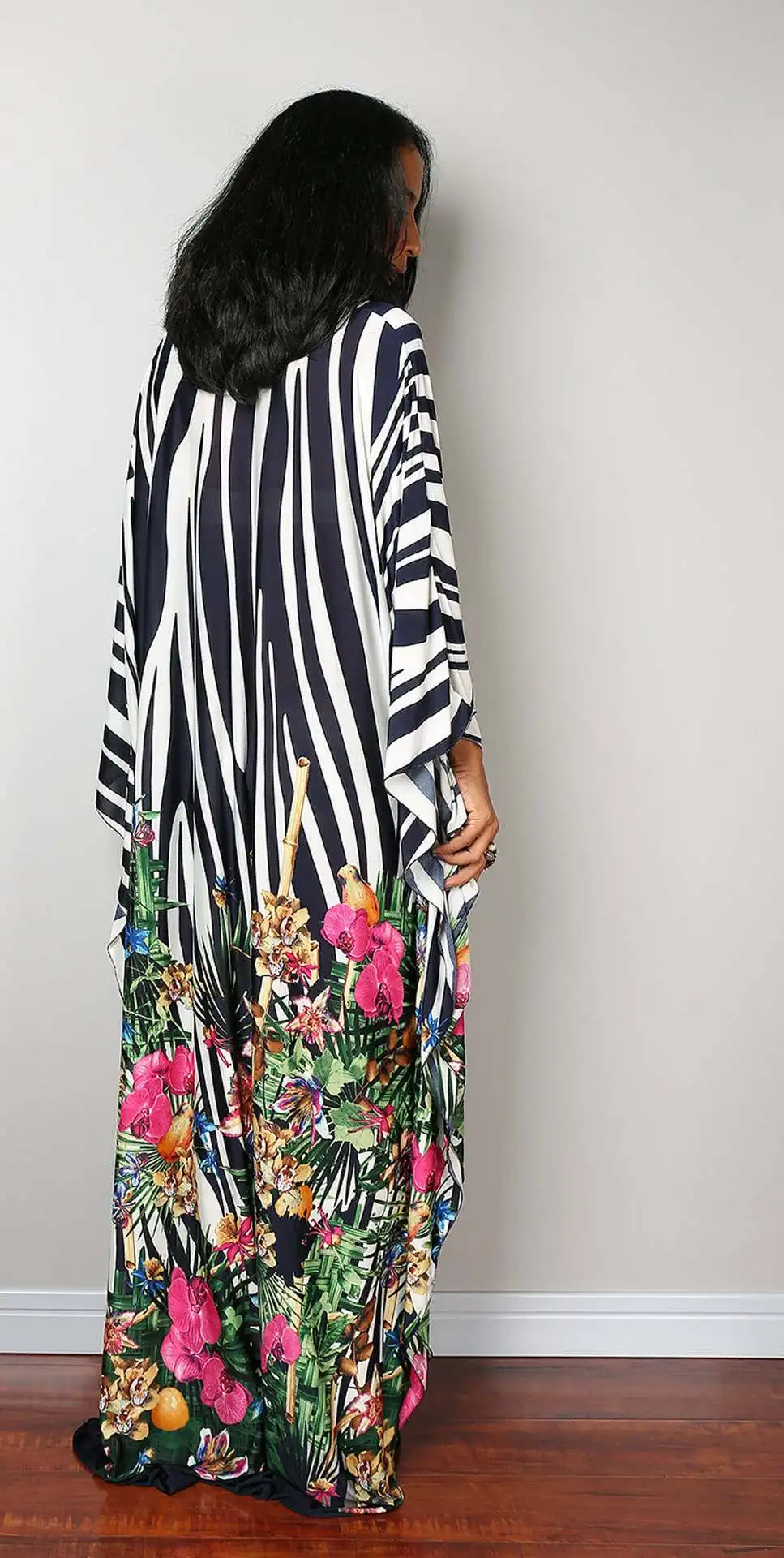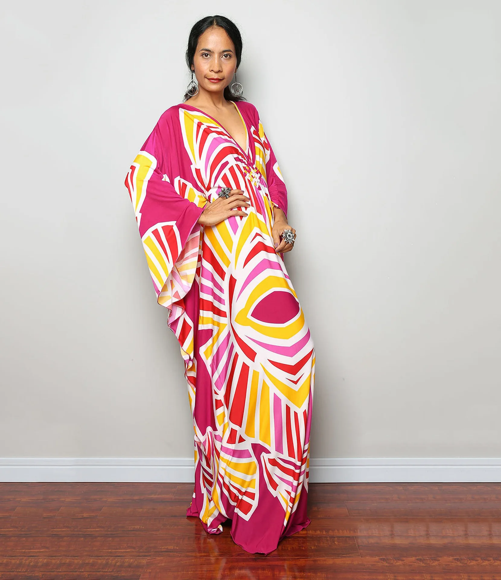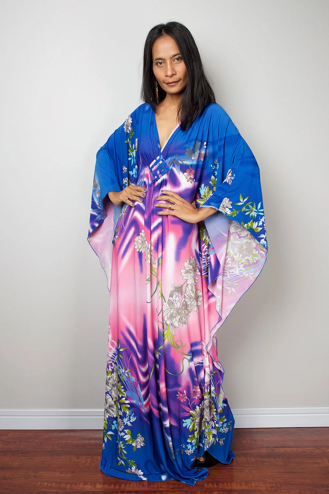 2023 Print Maxi Dress Batwing Sleeve Tunic Spring/Autumn Beach Dress Tunic Casual plus Size Women Beachwear Kaftan Sarongs