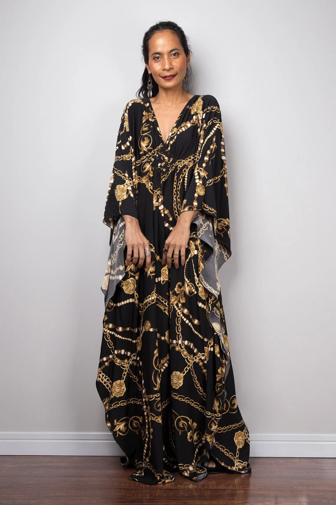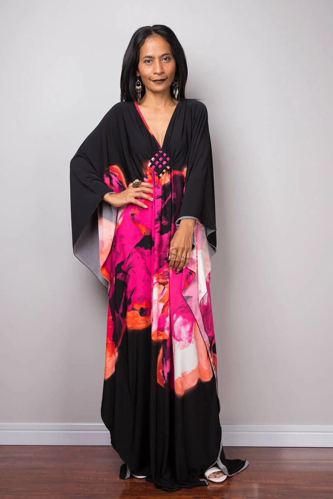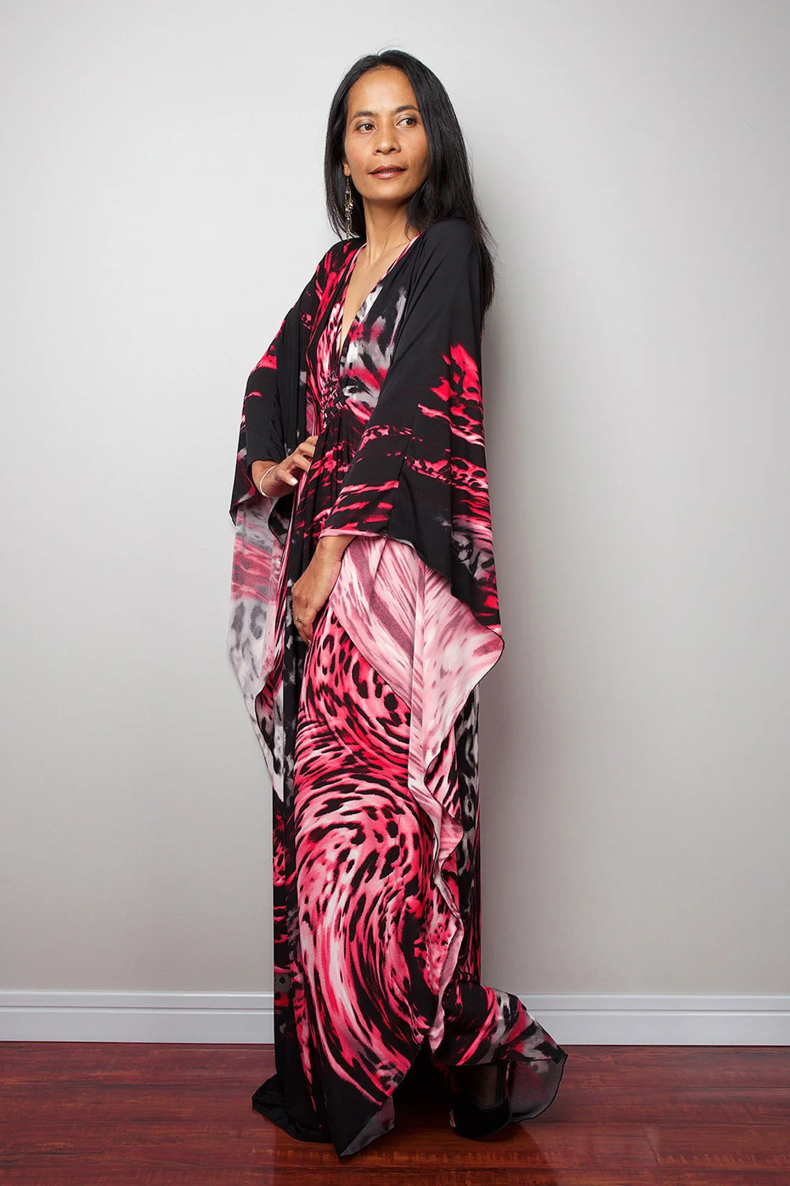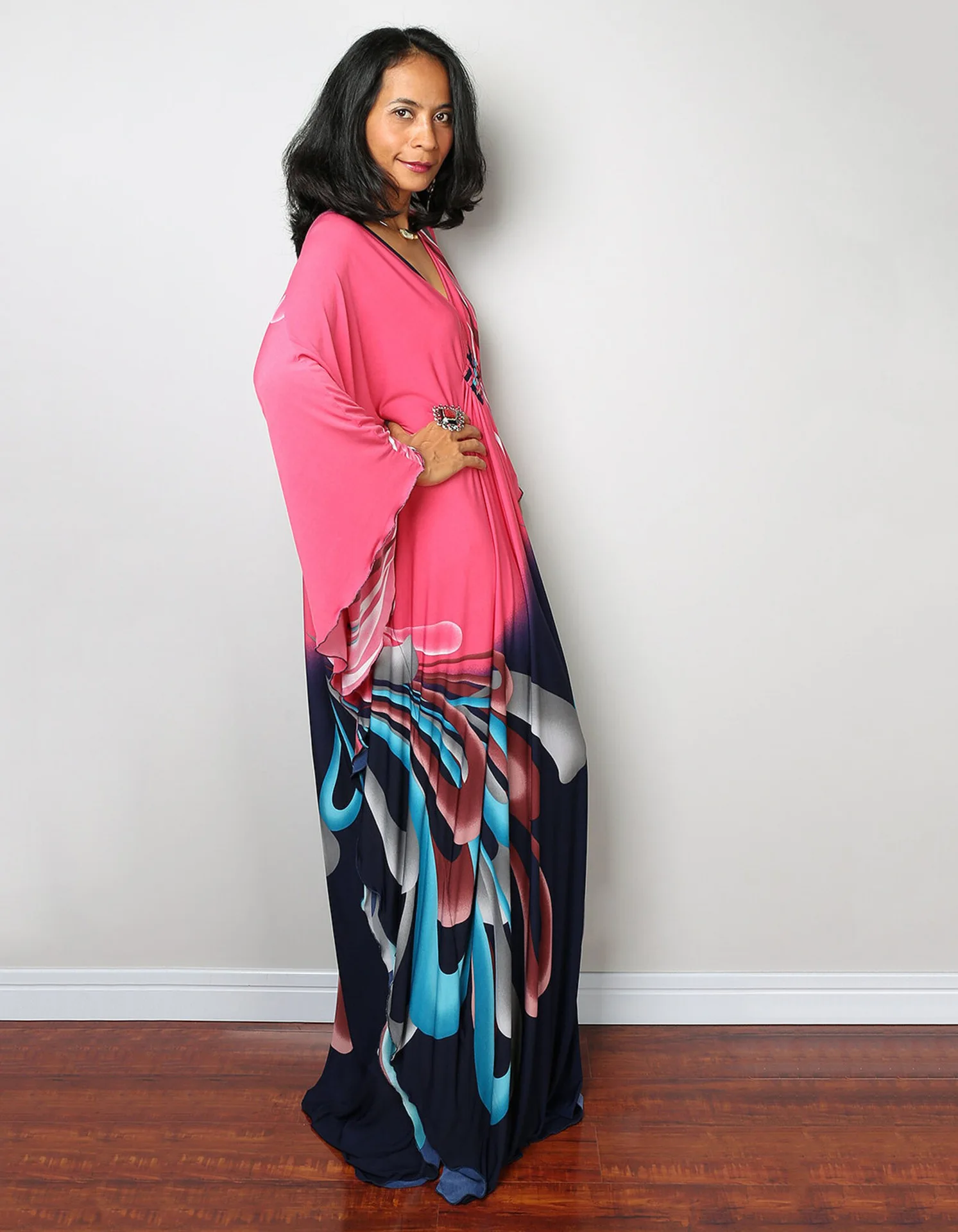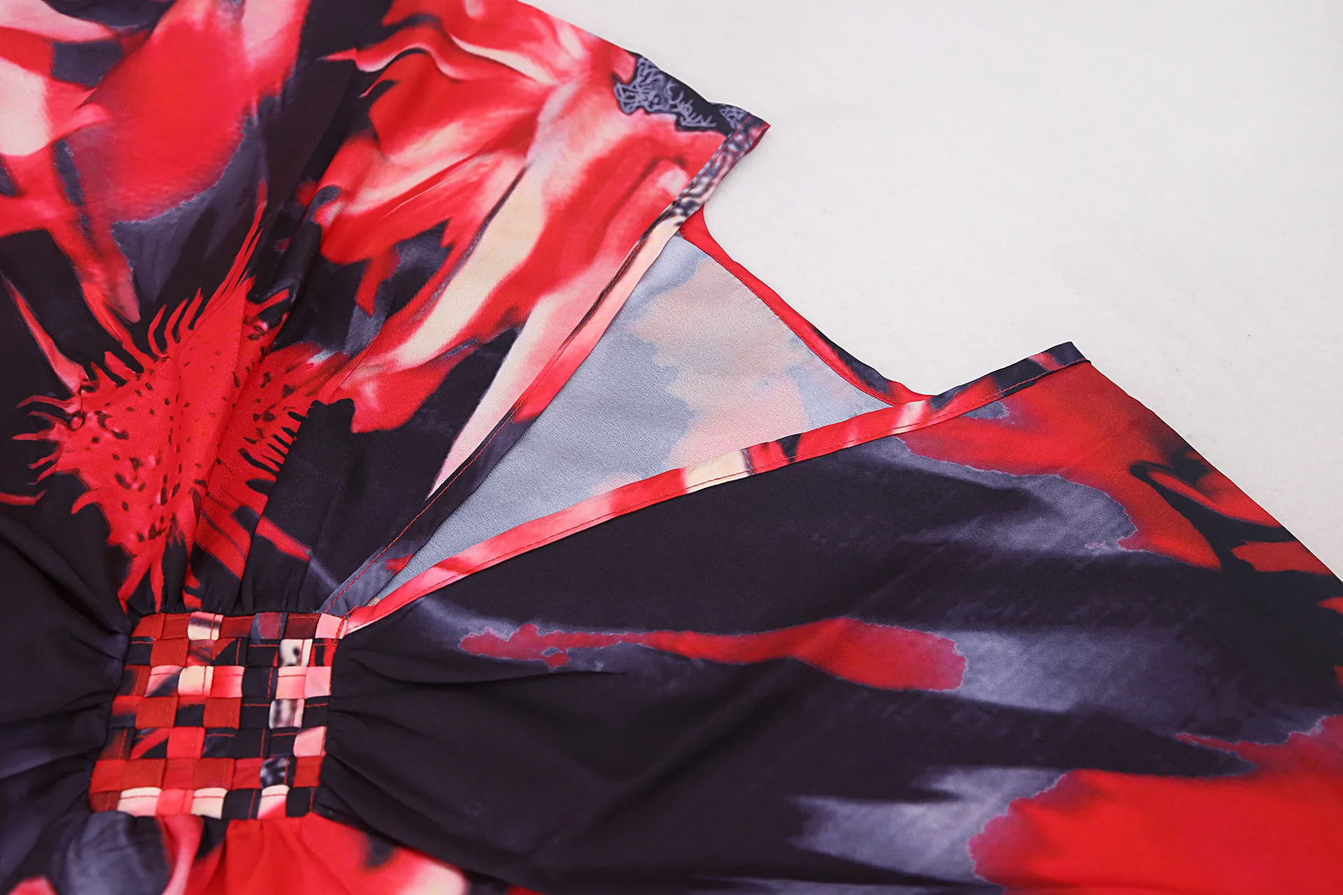 2023 Print Maxi Dress Batwing Sleeve Tunic Spring/Autumn Beach Dress Tunic Casual plus Size Women Beachwear Kaftan Sarongs
