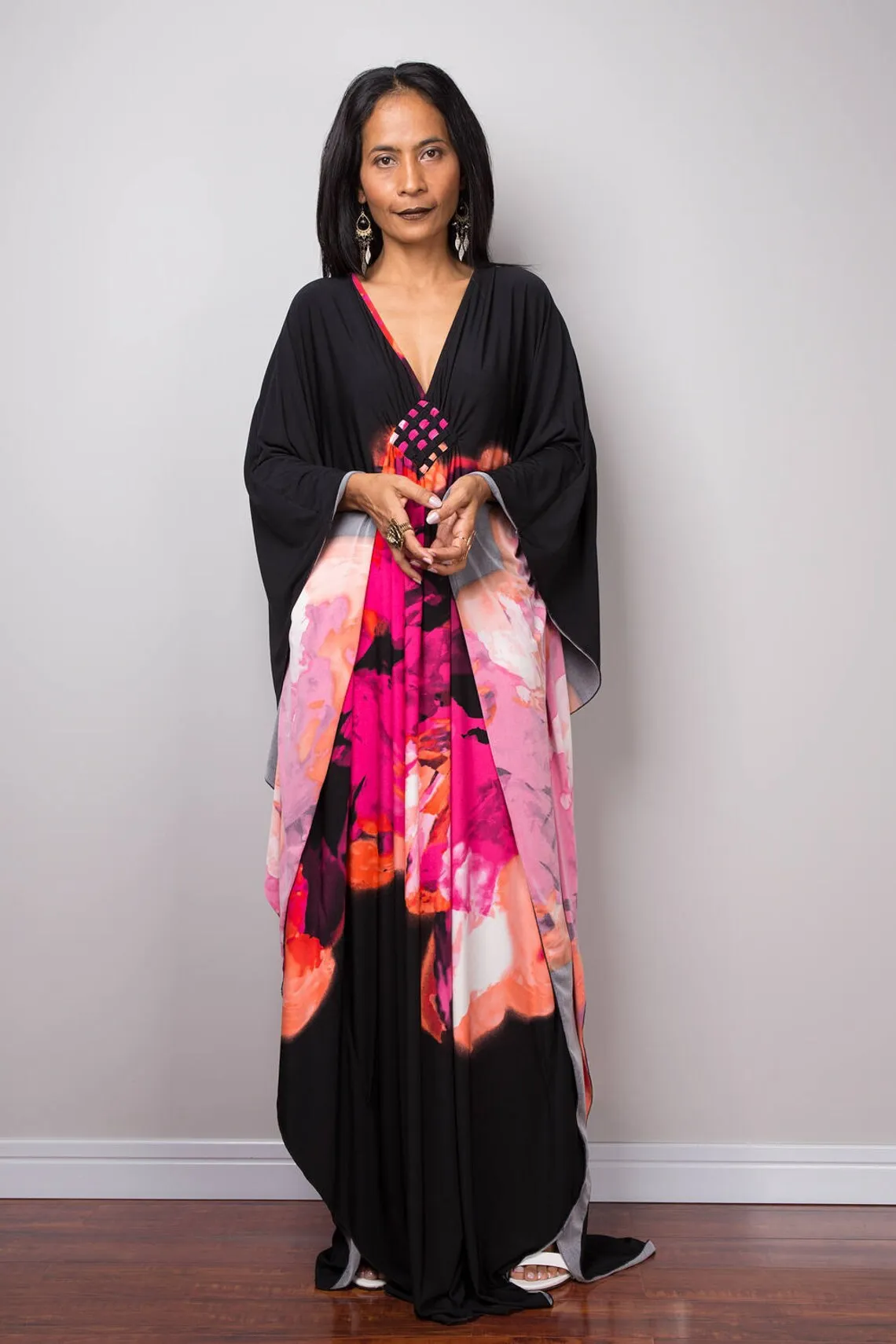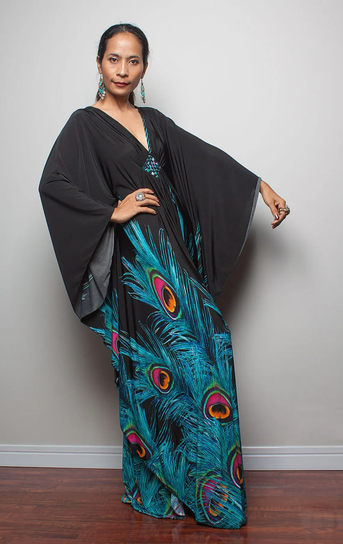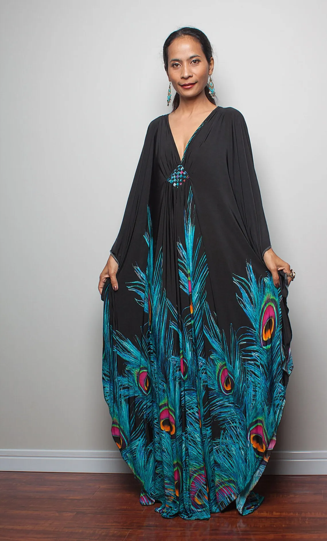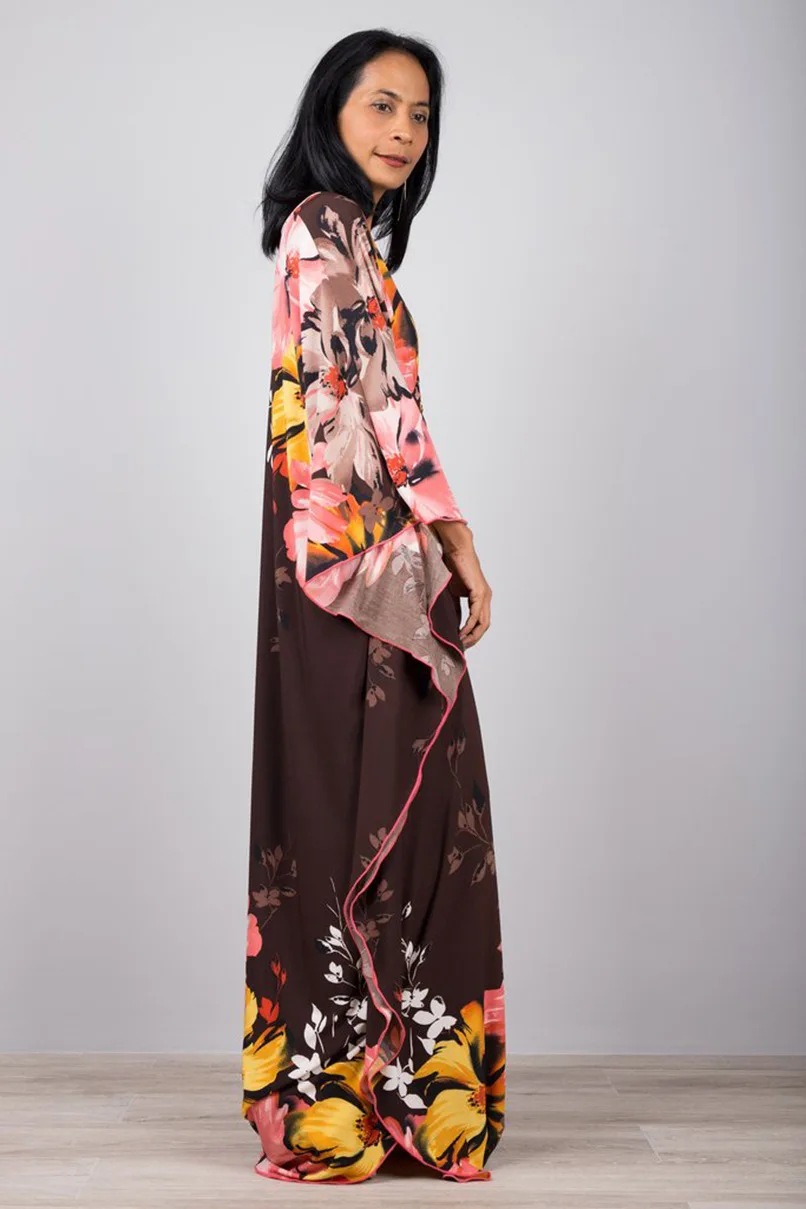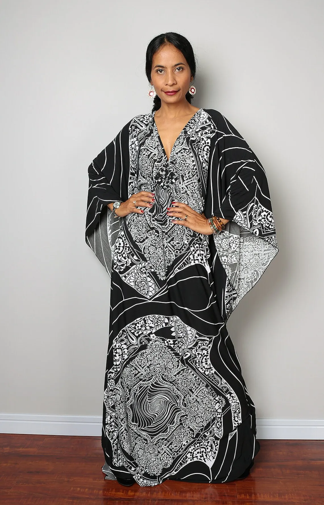 2023 Print Maxi Dress Batwing Sleeve Tunic Spring/Autumn Beach Dress Tunic Casual plus Size Women Beachwear Kaftan Sarongs