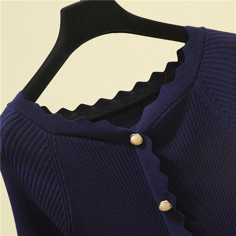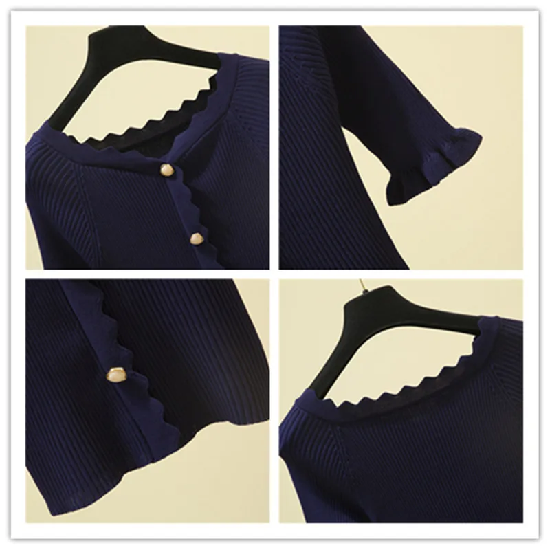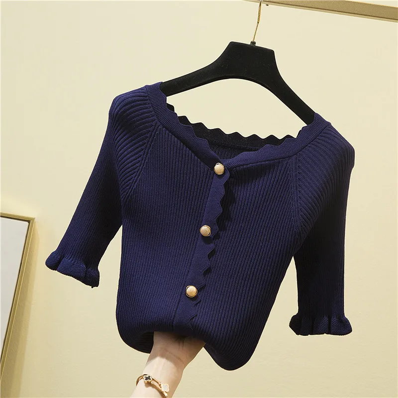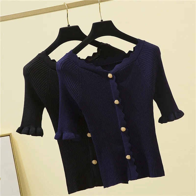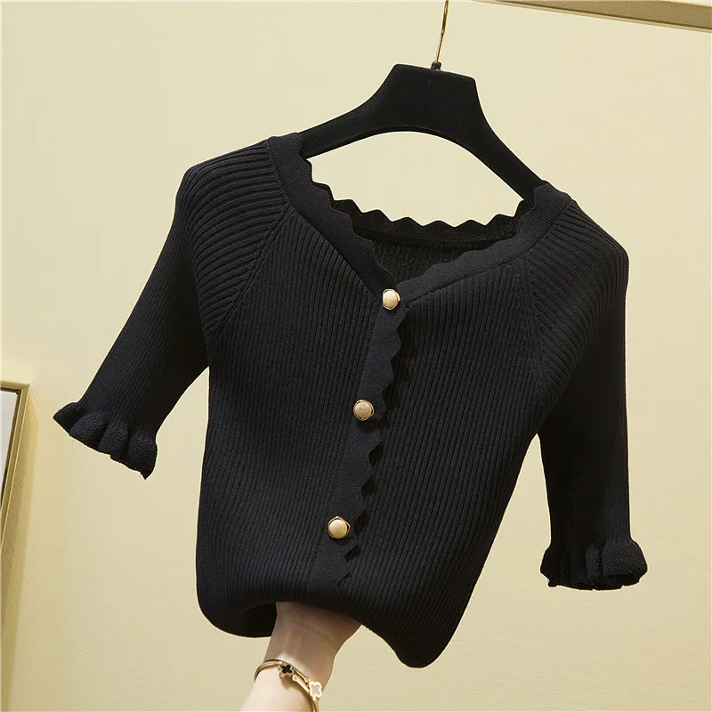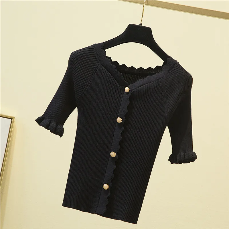 Knitted Sweaters for Women Slash Neck Short Sleeve Women Sweater Black Slim Top Button Sweater Mujer 2022 Summer Thin Pull Femme