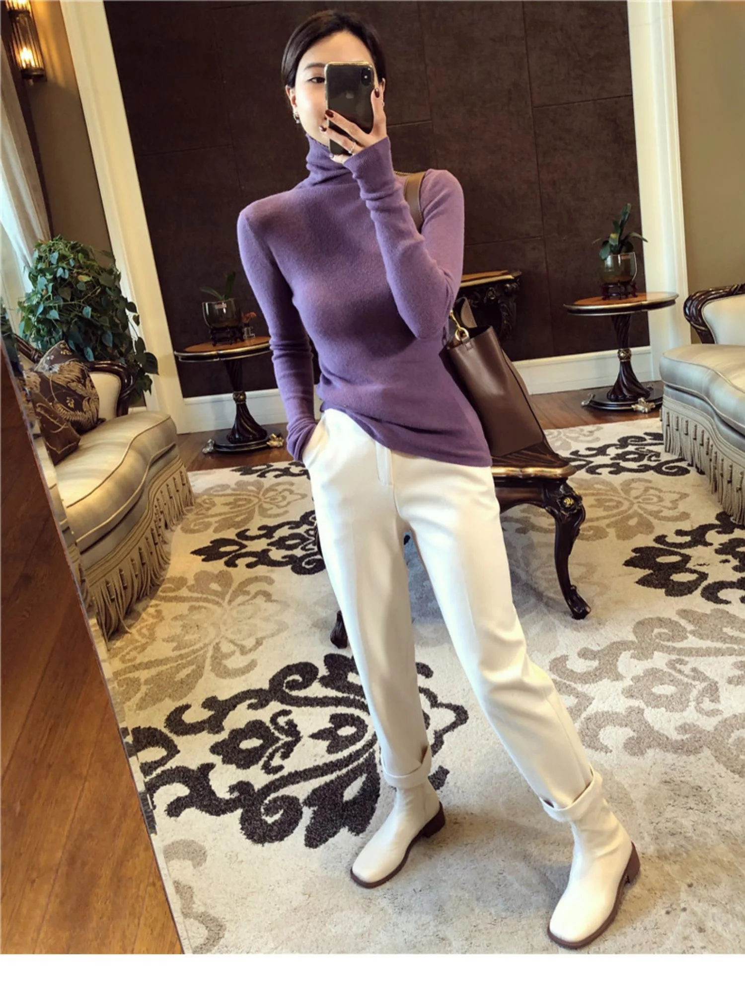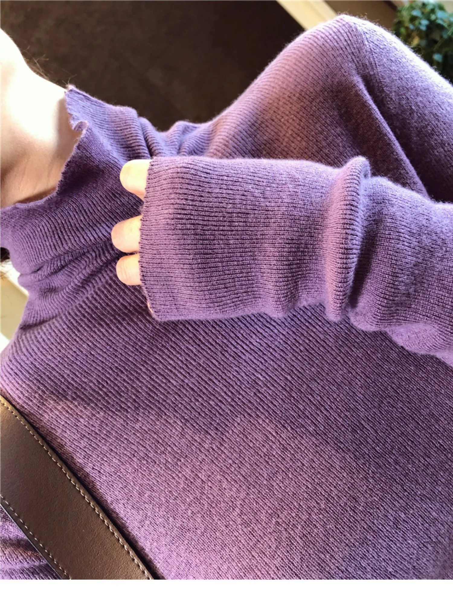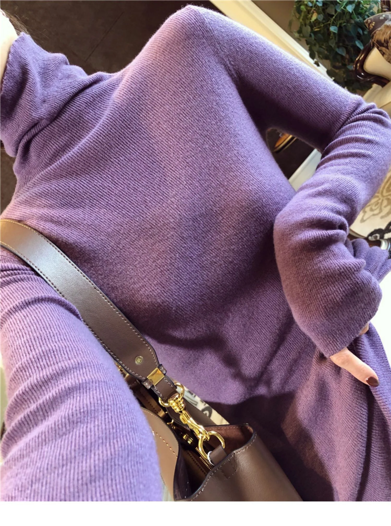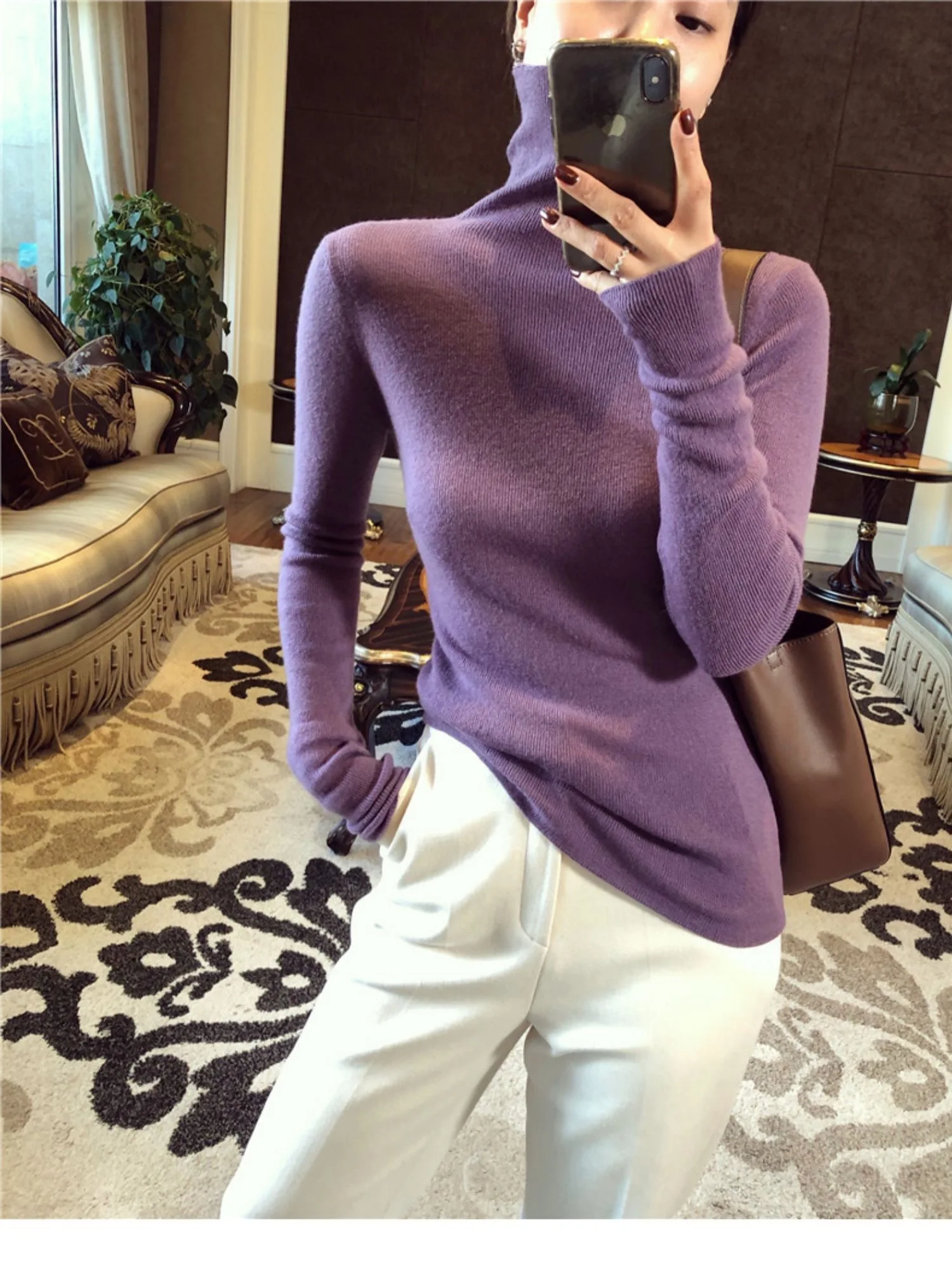 Turtleneck Cashmere Thick Sweater Women Wnter Jumpers Knit Female Long Sleeve Slim Pullover Soft Warm Pull Femme Tops Purple