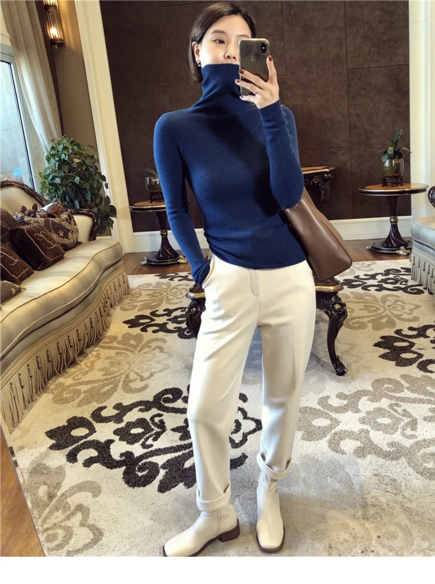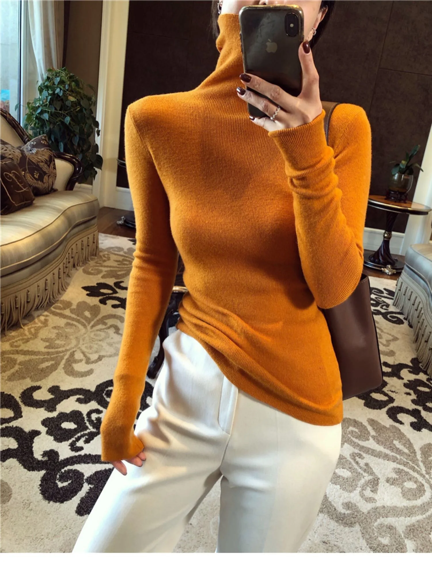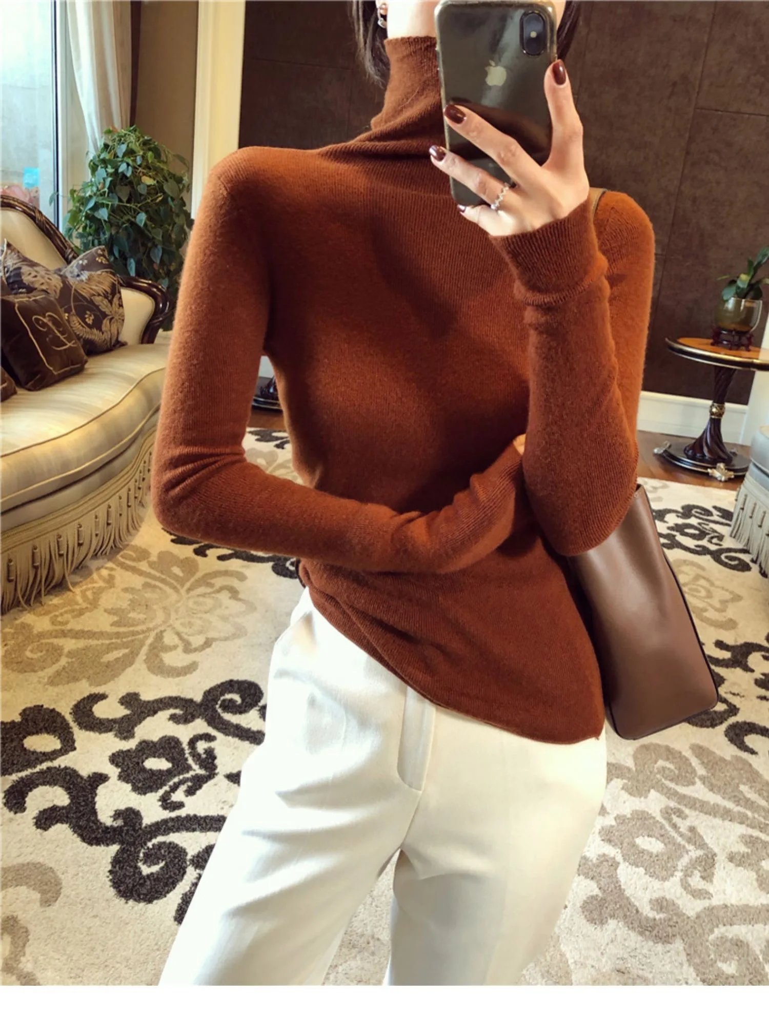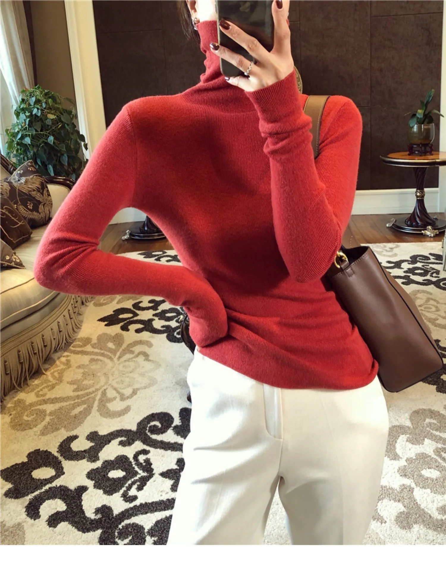 Turtleneck Cashmere Thick Sweater Women Wnter Jumpers Knit Female Long Sleeve Slim Pullover Soft Warm Pull Femme Tops Purple