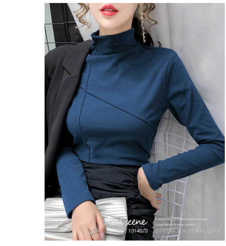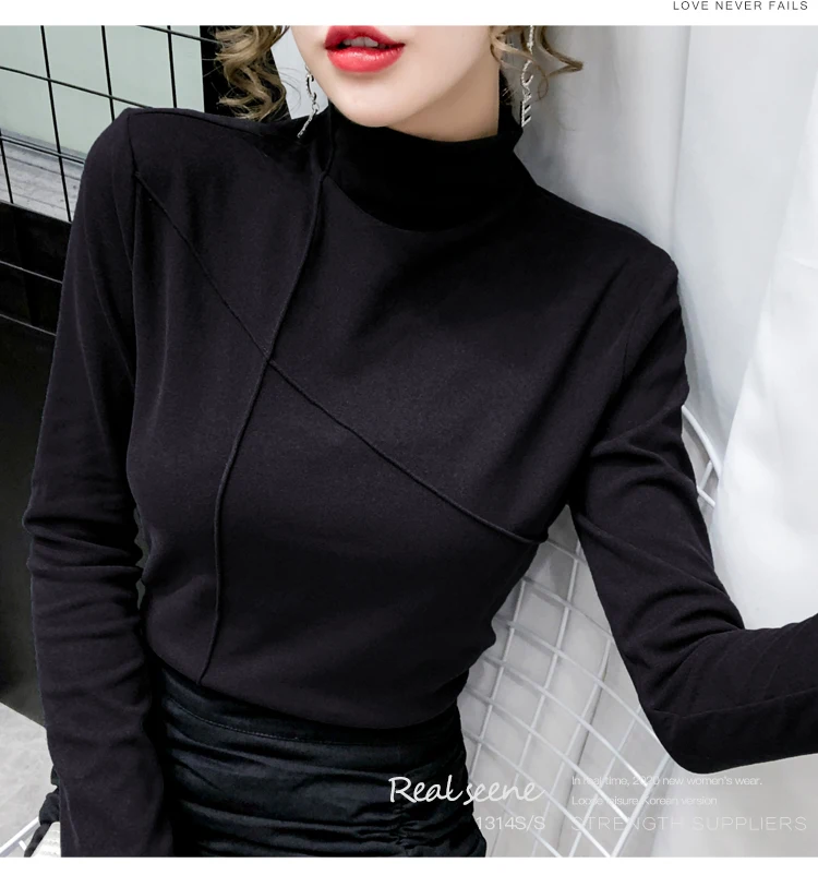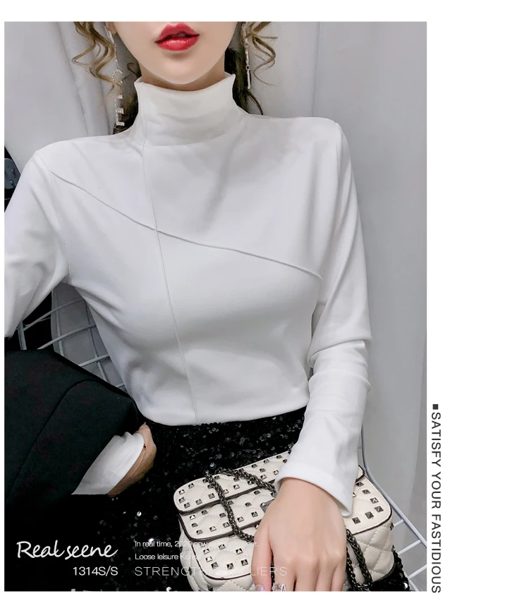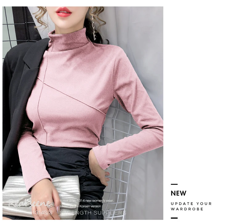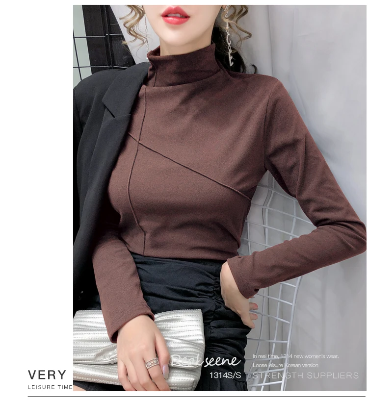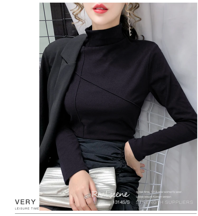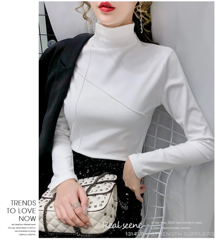 Turtleneck T Shirt Women Cotton Long Sleeve Top Tshirt Autumn Korean Stylee Womens Clothing Tee Shirt Femme Camisetas De Mujer