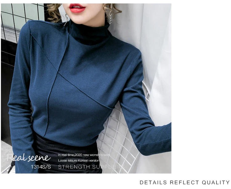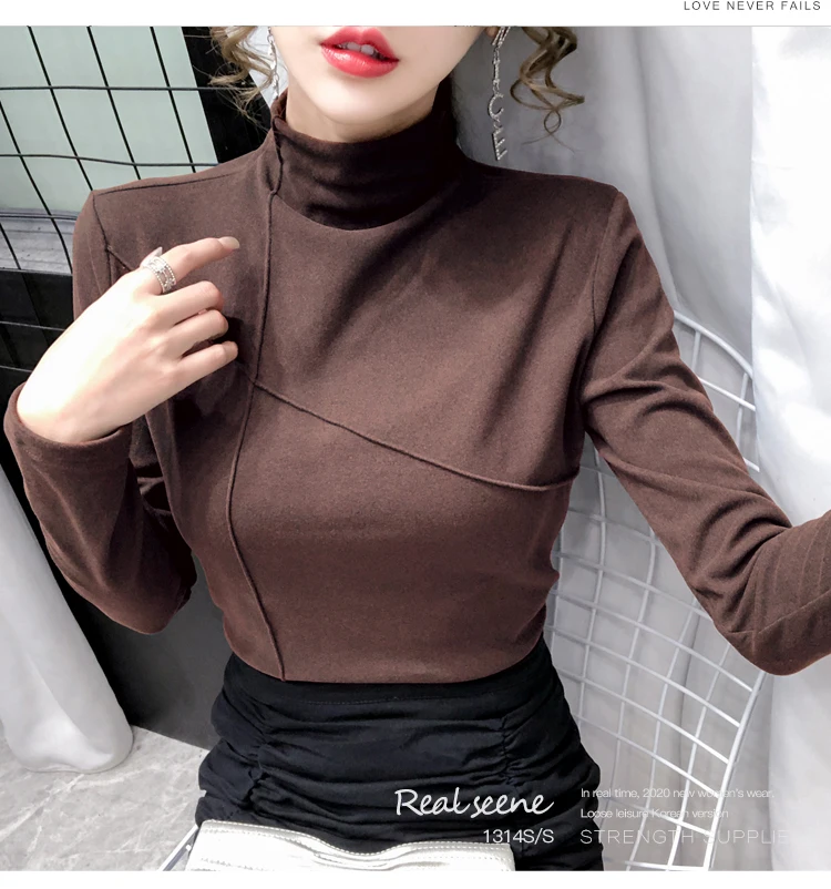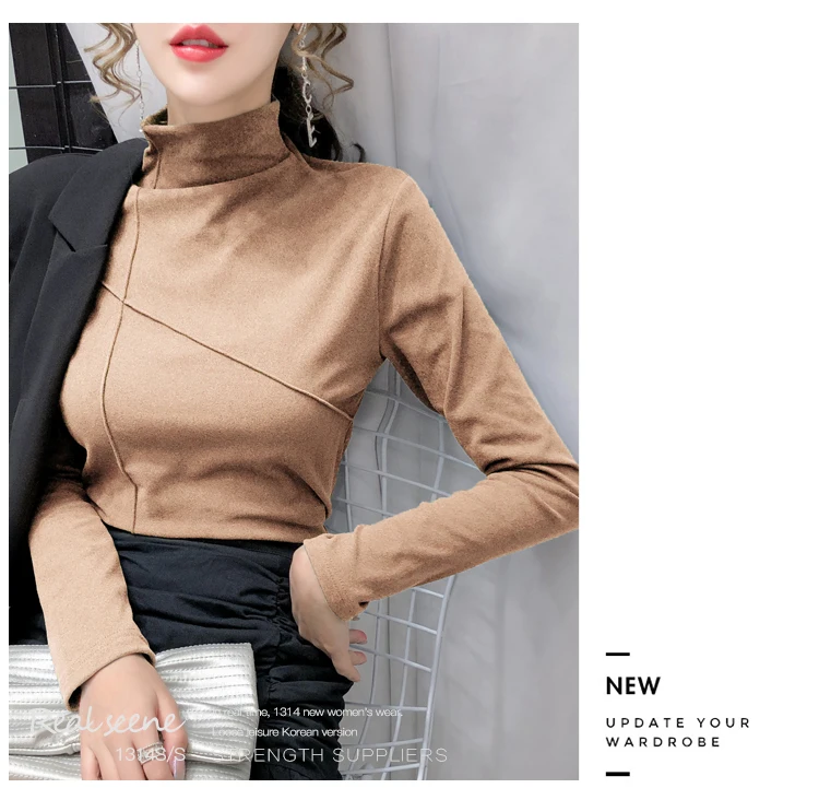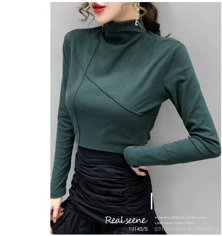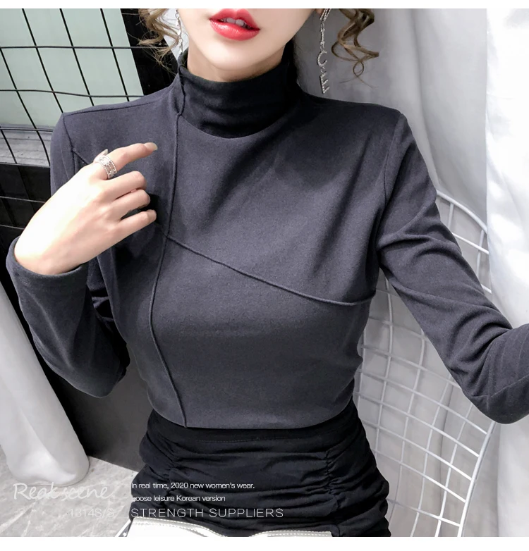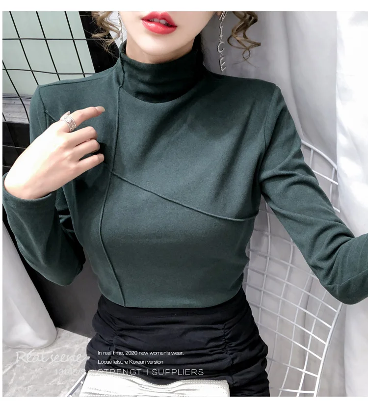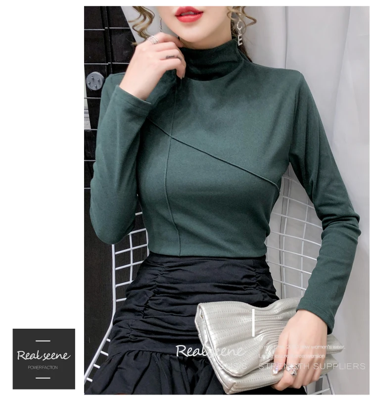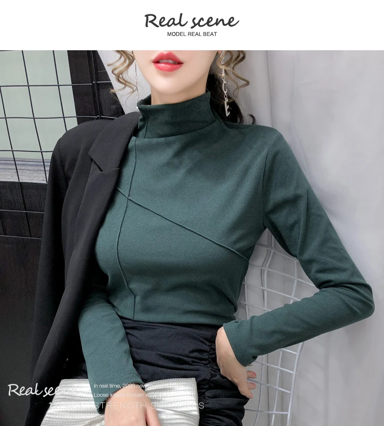 Turtleneck T Shirt Women Cotton Long Sleeve Top Tshirt Autumn Korean Stylee Womens Clothing Tee Shirt Femme Camisetas De Mujer